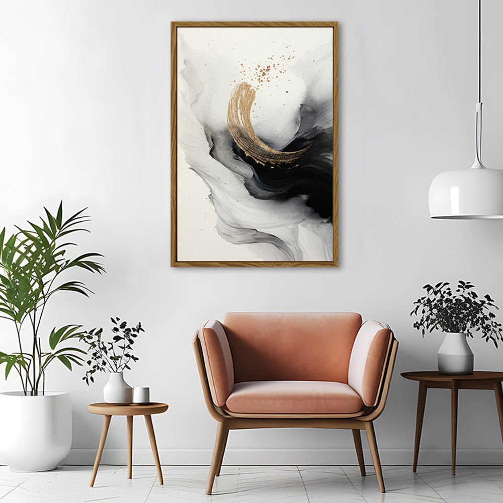 Canvas Wall Art Stretched Over Wooden Frame with Floating Frame and Smoke With Gold Shape Painting CV4242