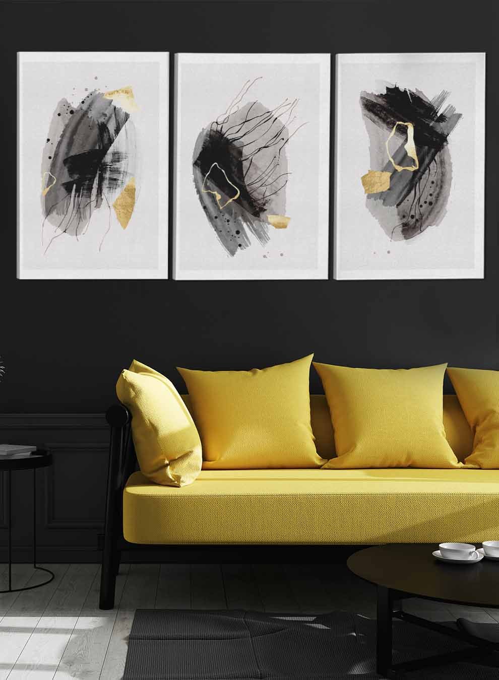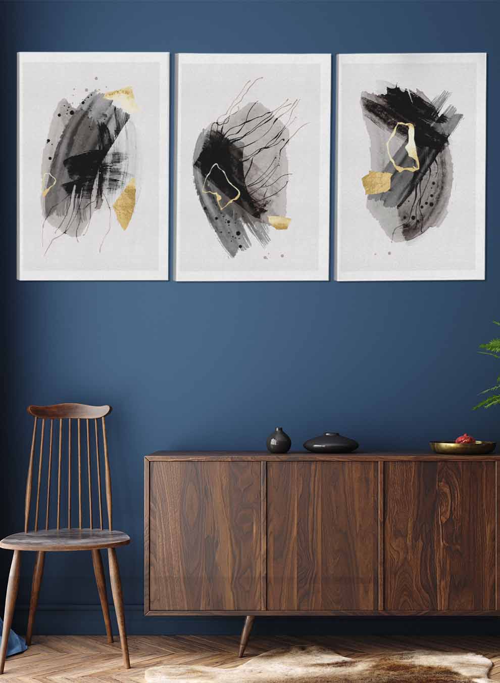 Dark Lines Abstract Paintings(set of 3) - Al Rugaib Furniture