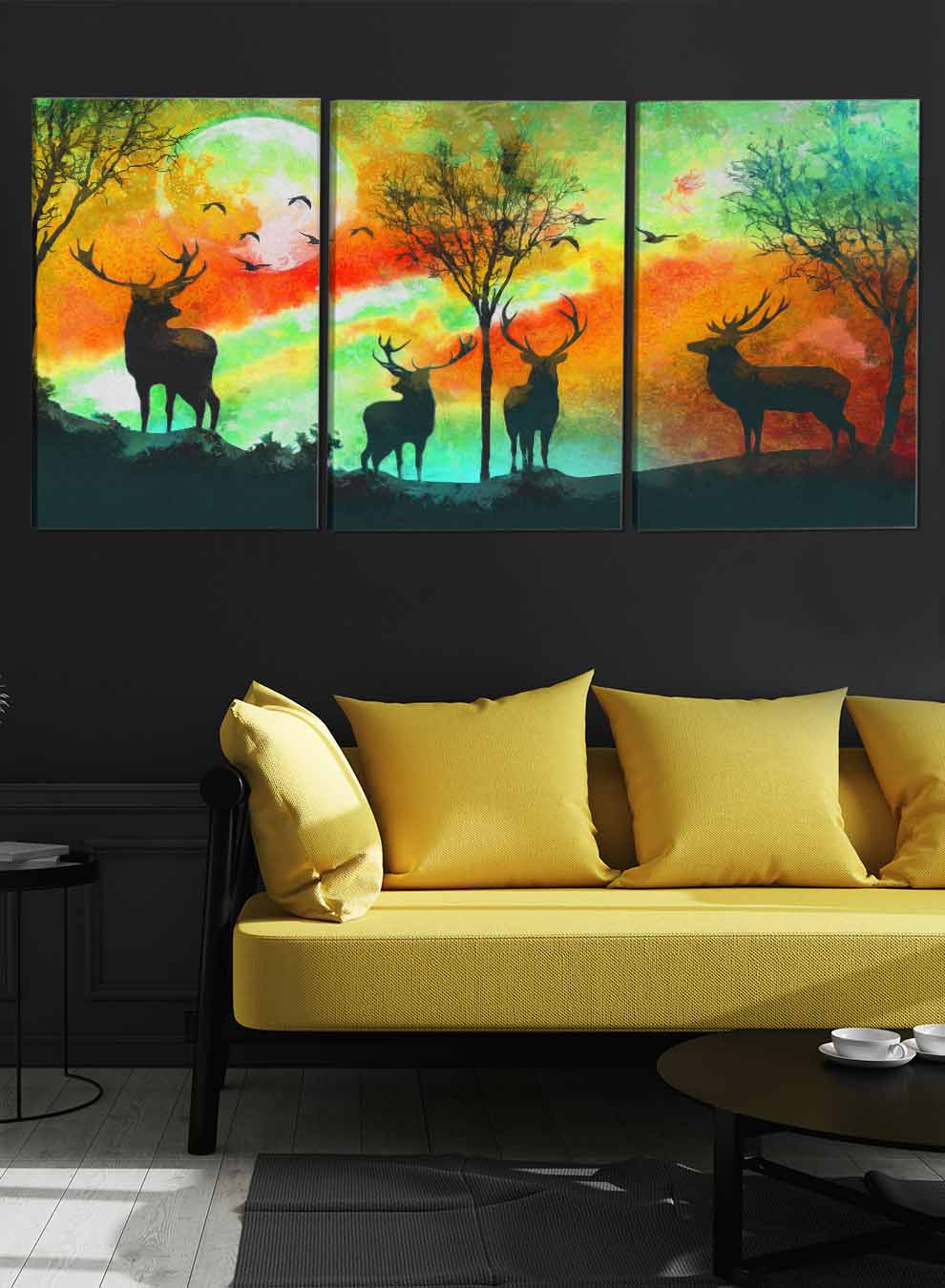 Deer In Jungle Paintings(set of 3) - Al Rugaib Furniture