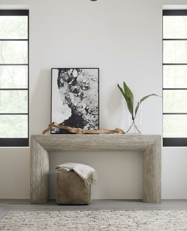 Infuse your space with tranquility with the organic and chic Armani Sofa Table crafted of Pecan wood with a Crema marble top featuring a soft veneer pattern. The neutral Brie finish is a grey tone with reeded details to complement a wide range of interiors.