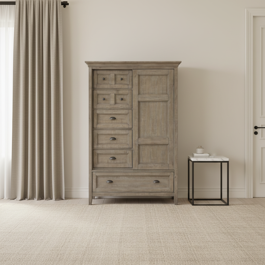 Paxton Place creates the perfect retreat. The Dovetail Gray finish accent by Weathered Bronze hardware displays the beaded, framed panel drawers over straight inspired legs handsomely. Whether in a second home, a casual city abode or in the suburbs, this collection offers plenty of drawers to stow your togs.
