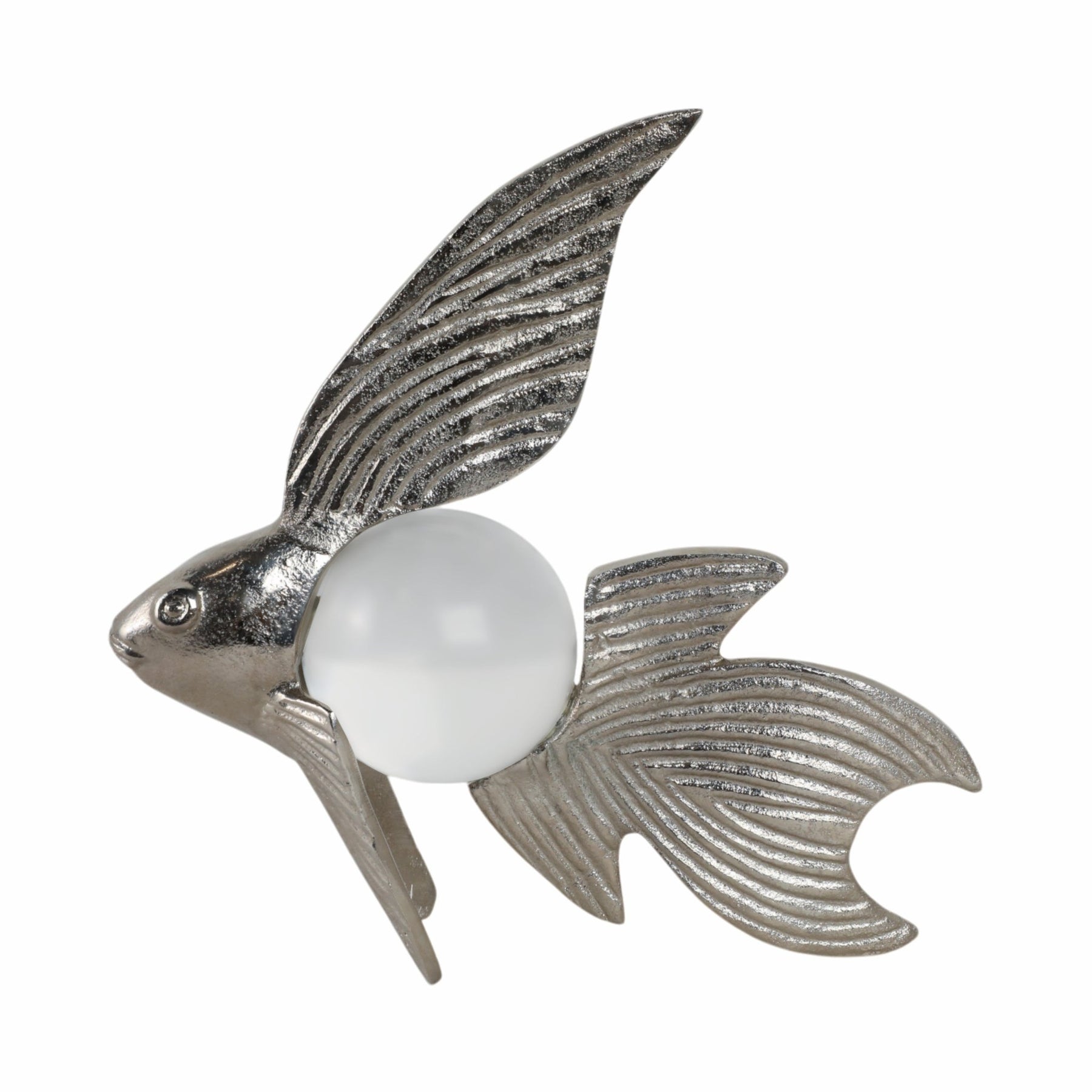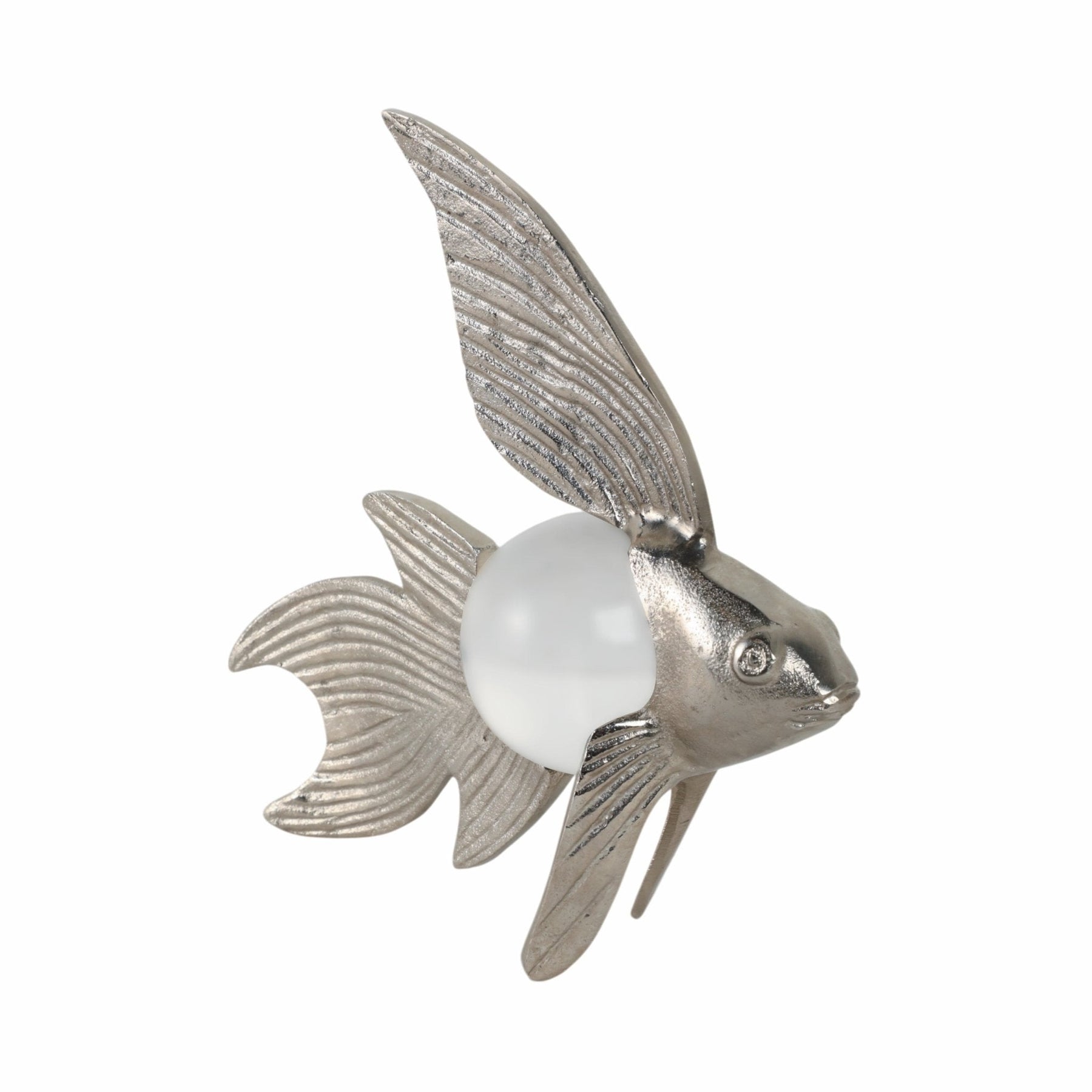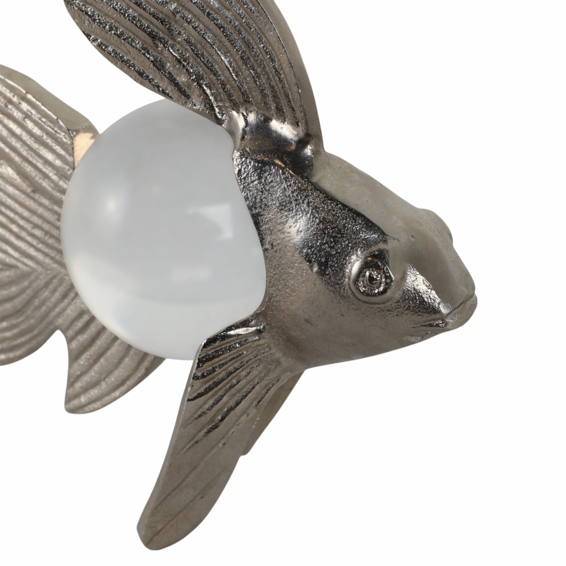 10x6" Metal Fish With Acrylic Ball, Silver - Al Rugaib Furniture