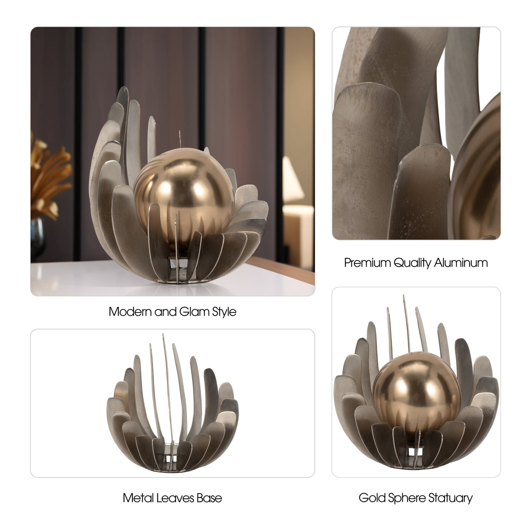 12" Ares Metal Sphere Large Statuary, Gold - Al Rugaib Furniture