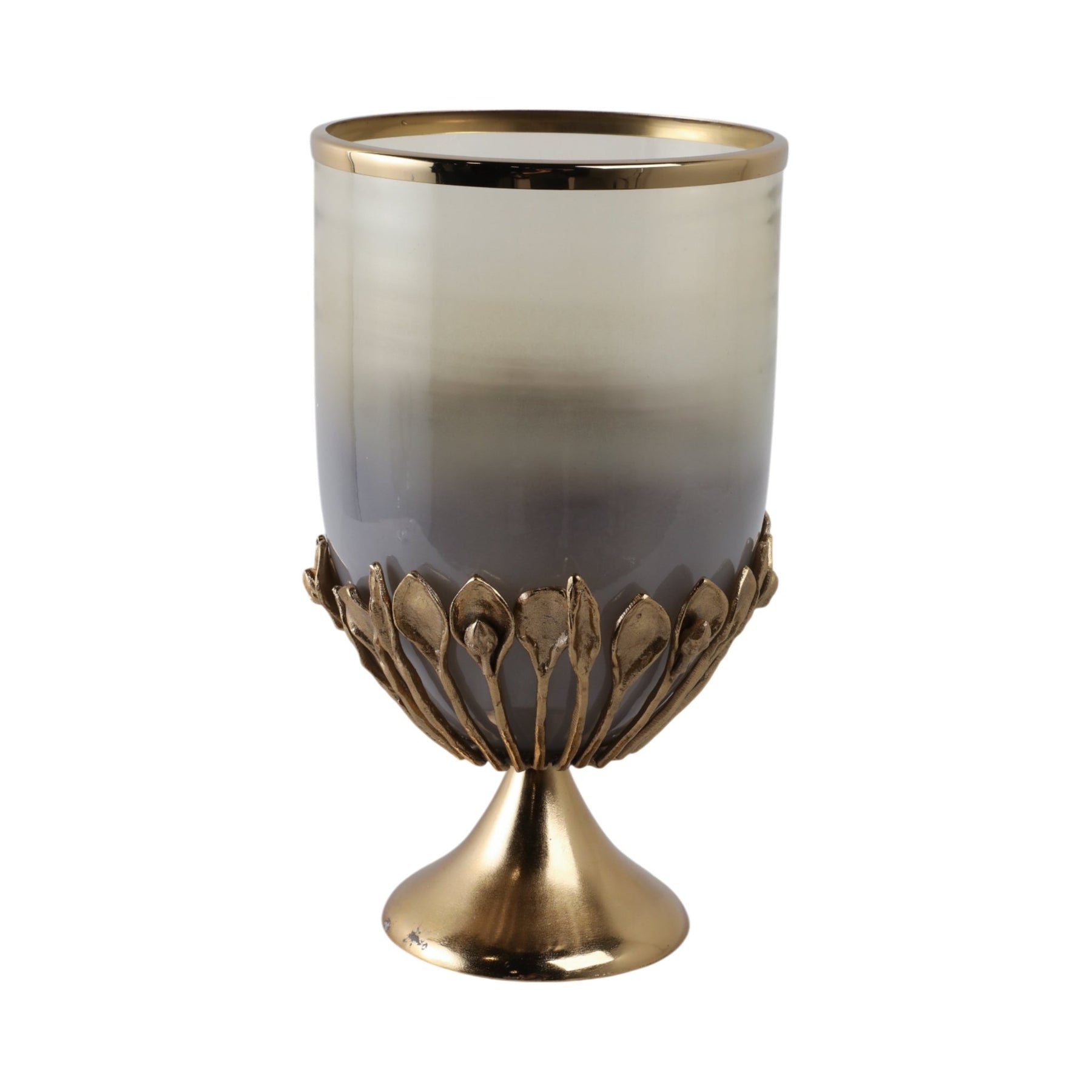 19" Eaves Large Glass And Metal Hurricane - Al Rugaib Furniture