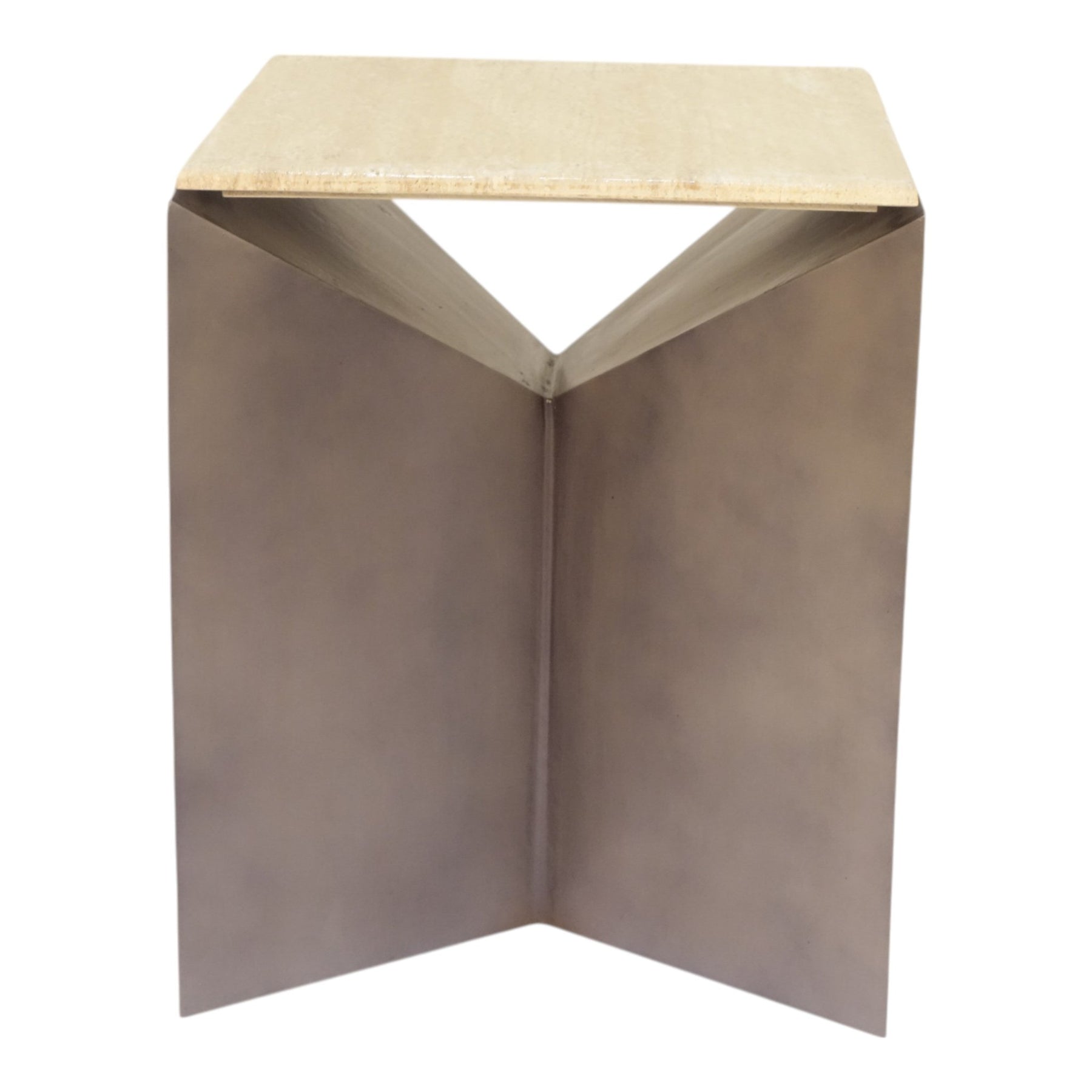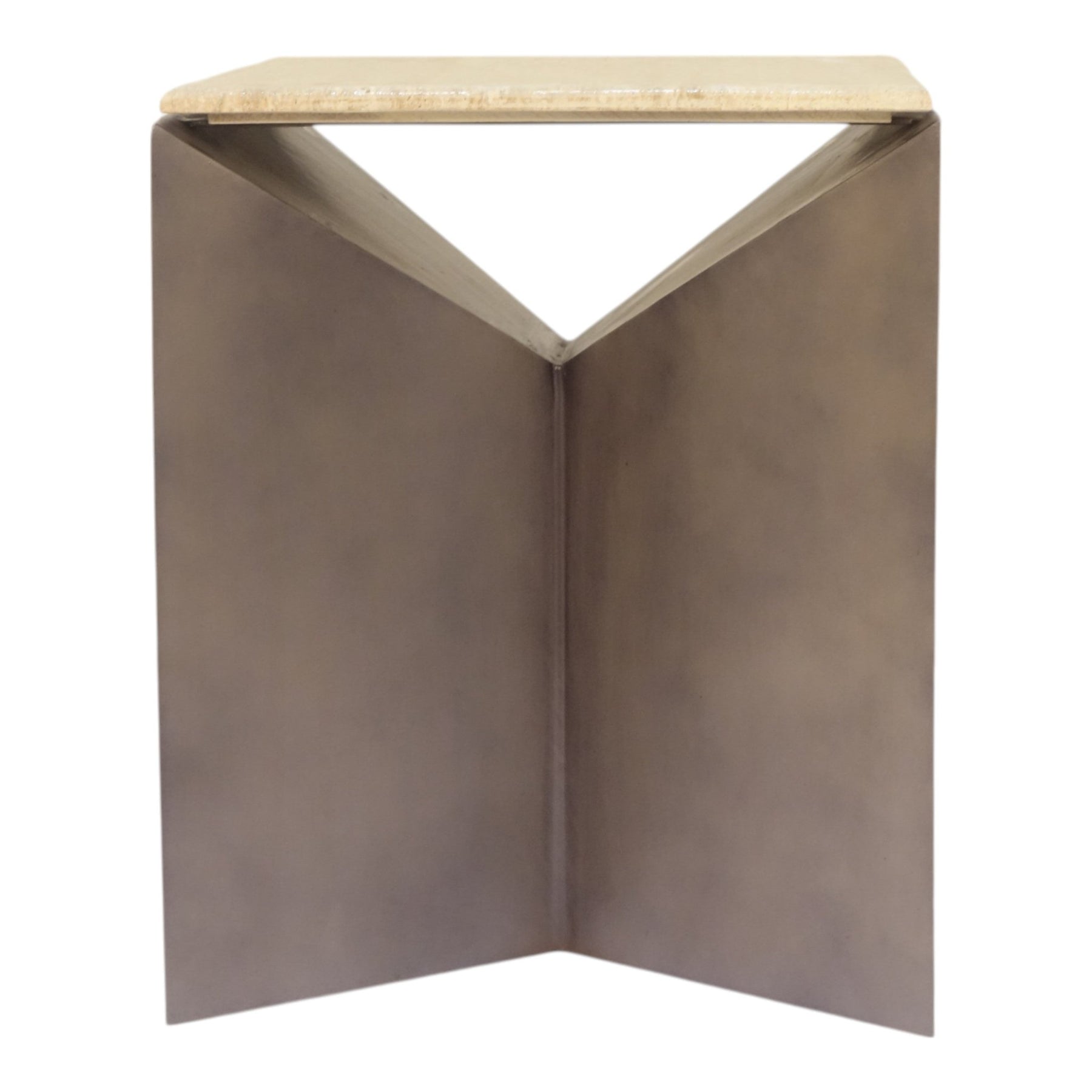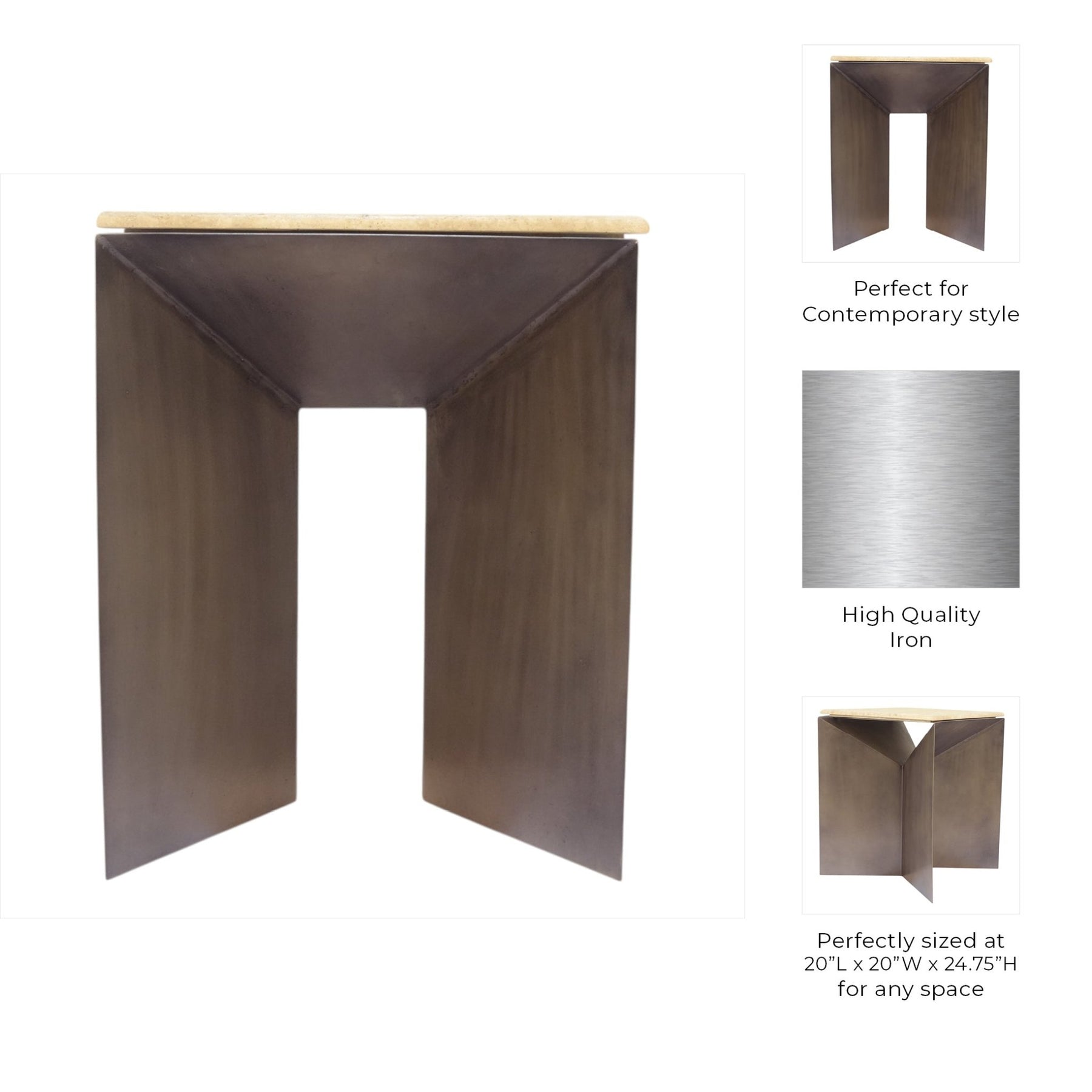 25" Besancon Metal And Travertine Accent Table