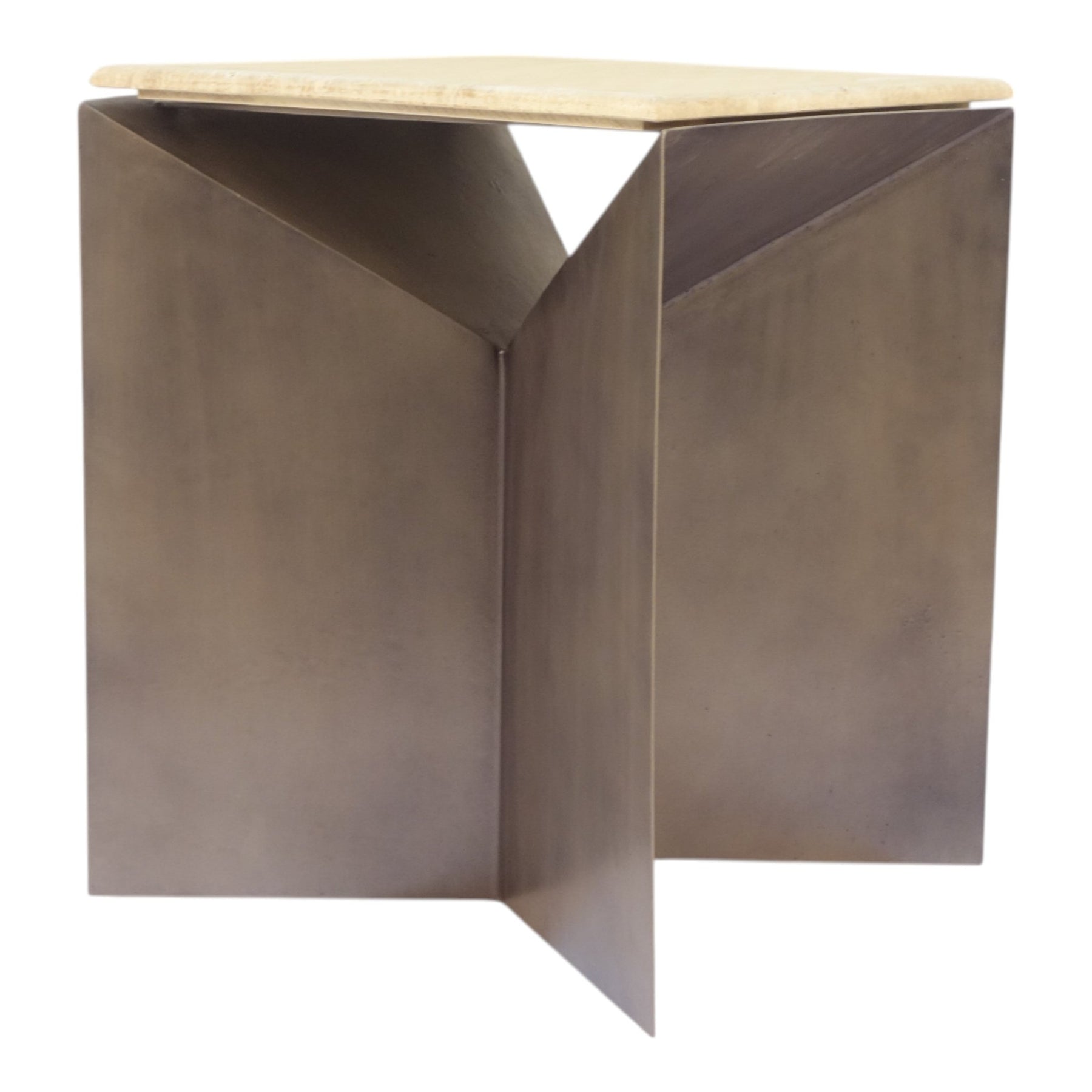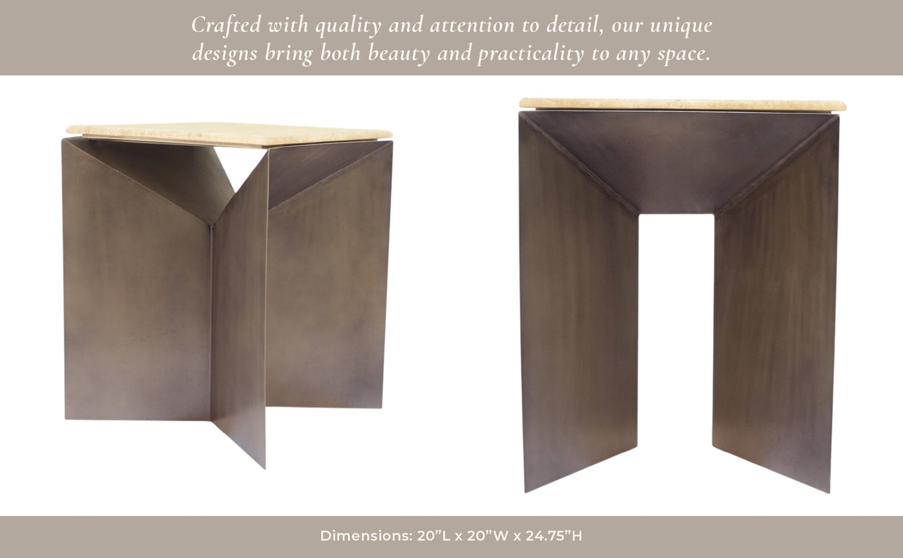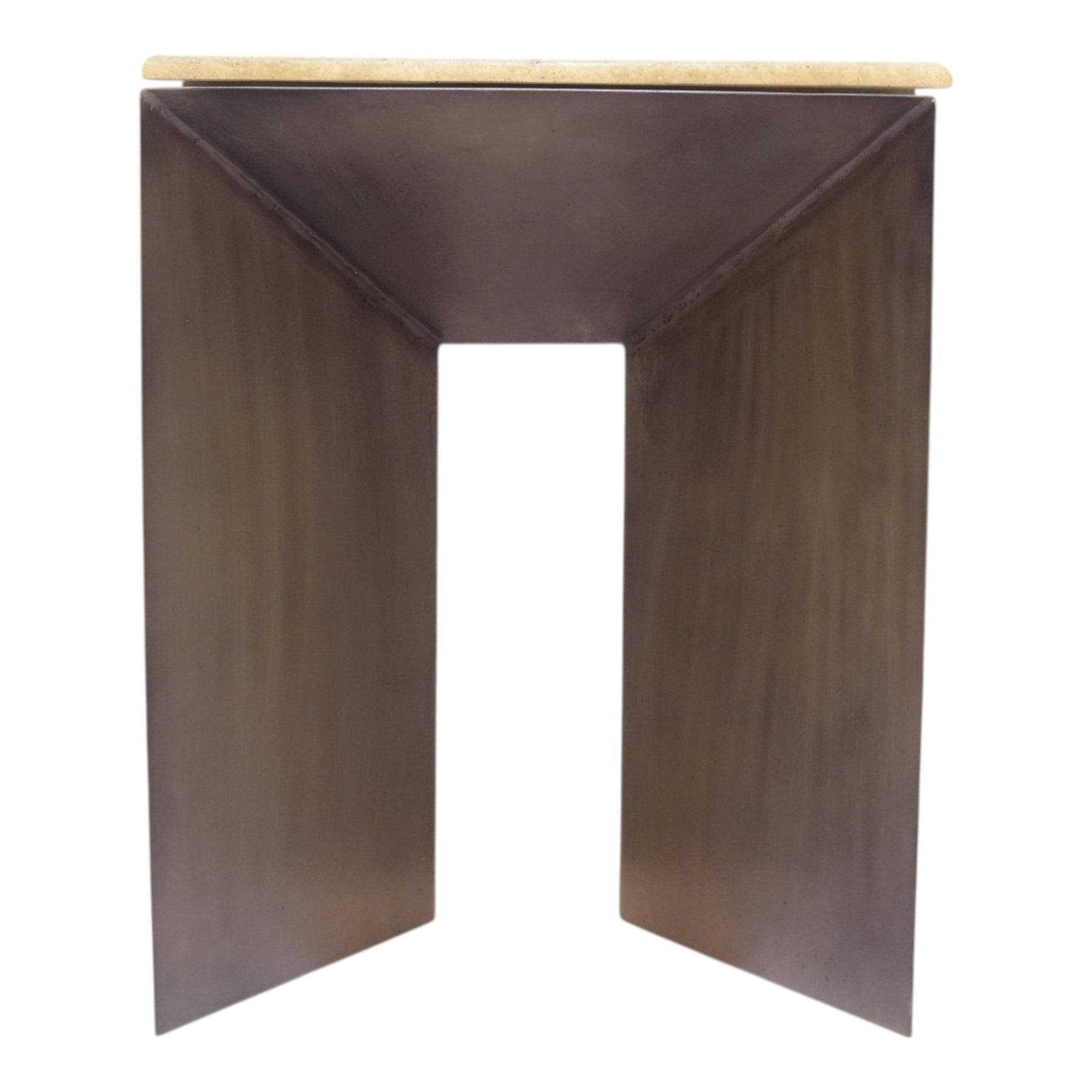 25" Besancon Metal And Travertine Accent Table