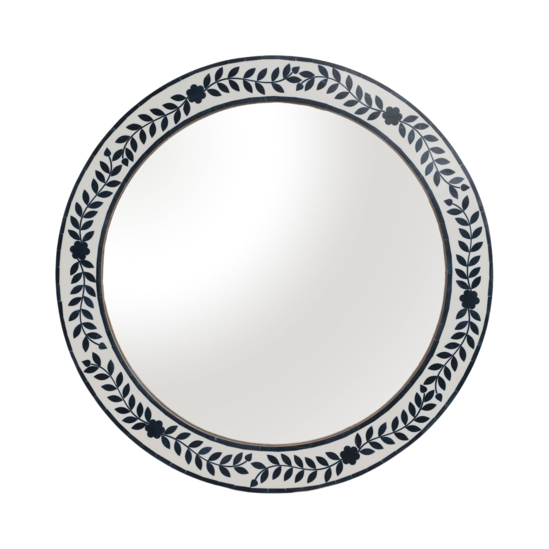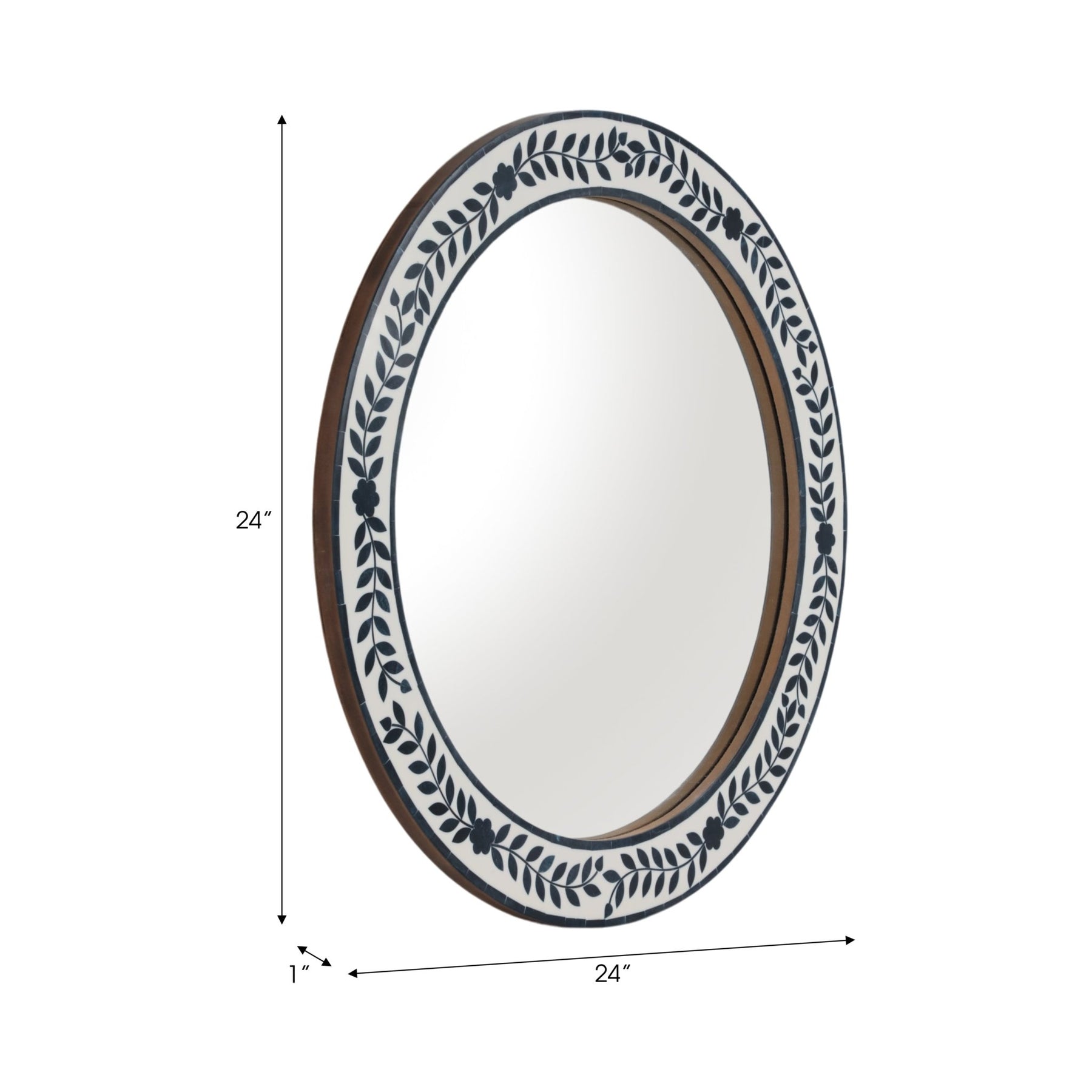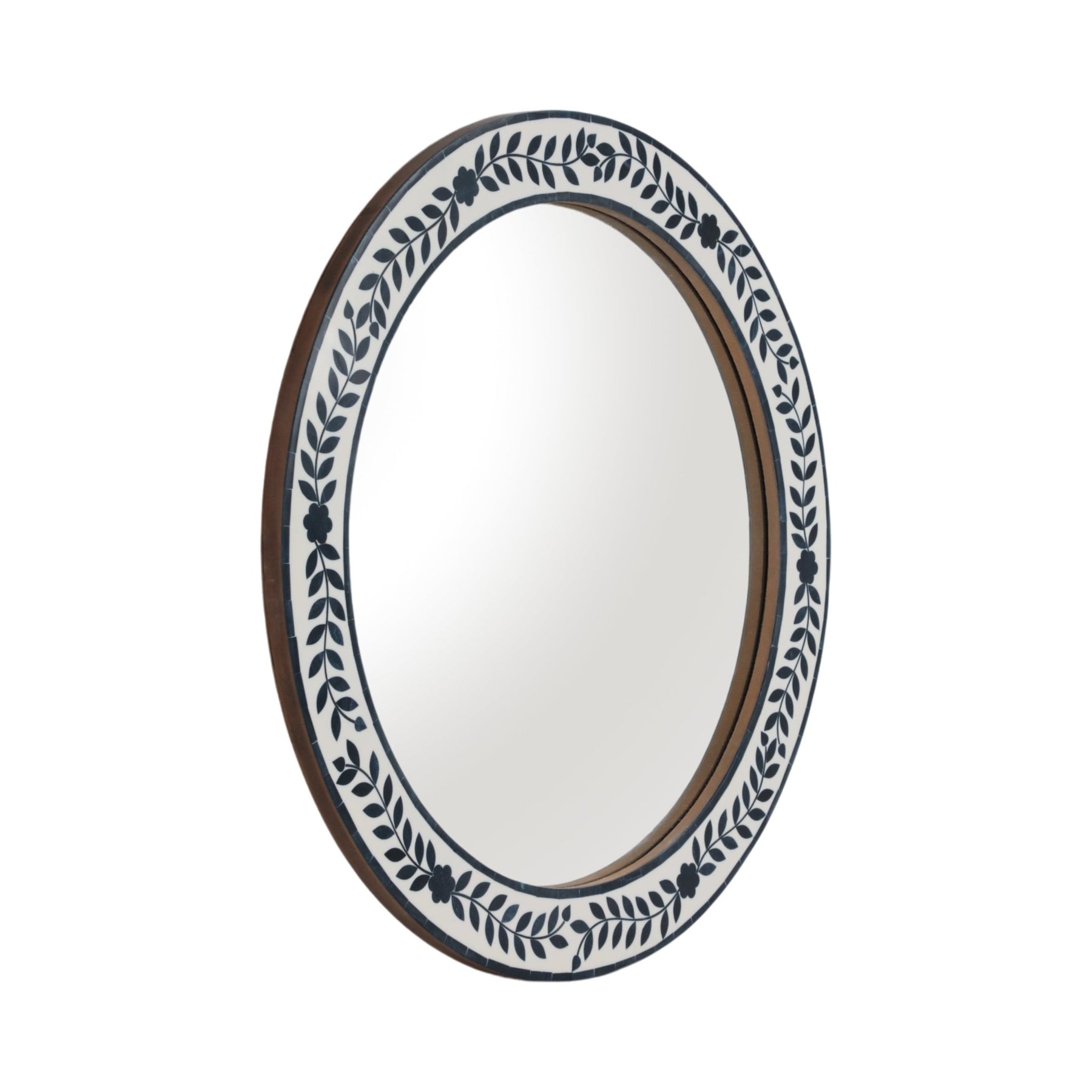 24" Blue Petals Resin Frame Mirror, White/blue - Al Rugaib Furniture