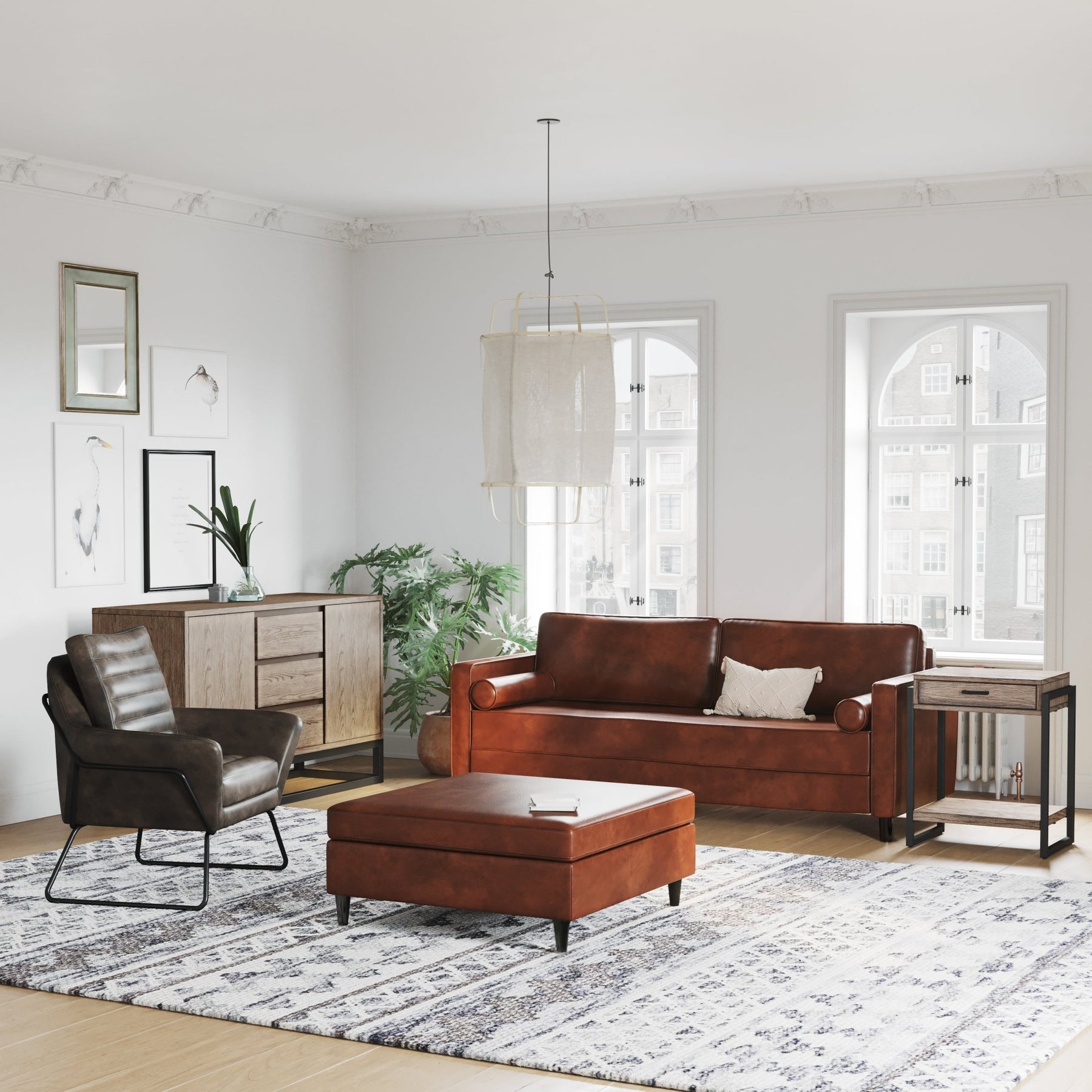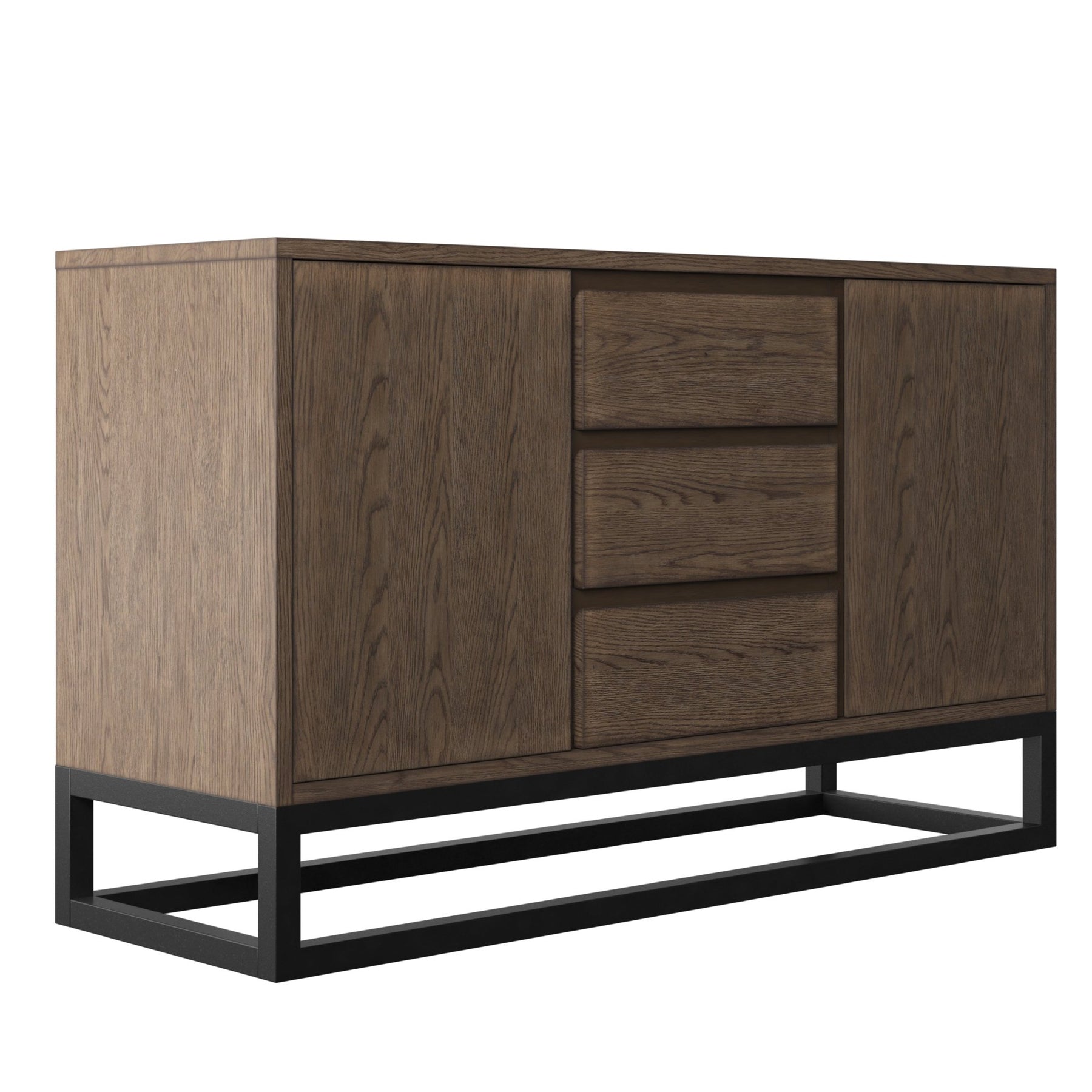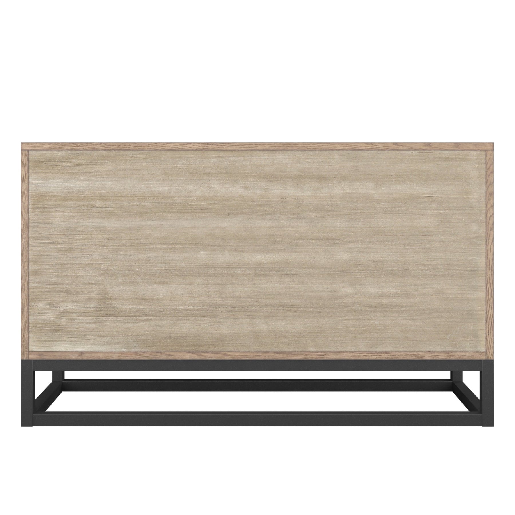 A host of industrial elements that exude warmth and timelessness,Two easy-open handle-free doors which open to reveal two compartments with an adjustable shelf in each,Rustic Acacia with Matte Black Accents,Matte black metal base,Constructed of acacia wood and a metal base for an industrial element,Assembly required; hardware kit and instructions included