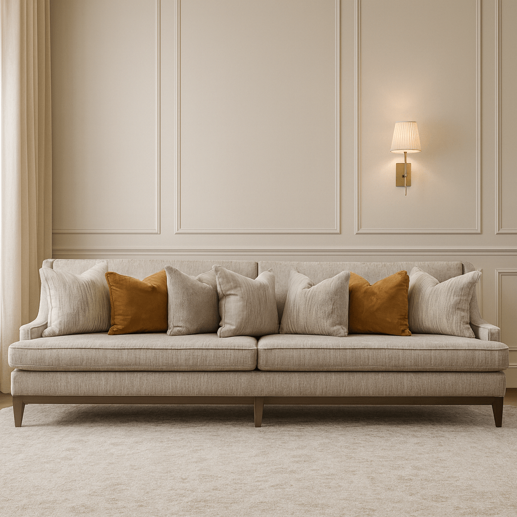 Experience sophisticated comfort with the Classy By Noha Albabtain 4 Seater Sofa, a statement piece designed for modern living spaces. This expertly crafted sofa combines elegant styling with generous seating capacity, perfect for families and entertaining guests. The thoughtful design ensures both aesthetic appeal and functional comfort, making it an ideal centerpiece for your living room. Upholstered with premium materials and supported by a sturdy frame, this four-seater delivers lasting quality and timeless style that complements contemporary and classic interiors alike.