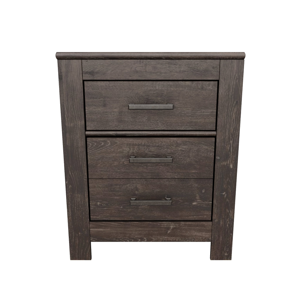 Made with engineered wood (MDF/particleboard/plywood) and decorative laminate for the right balance of affordability and durability;Dark charcoal finish over replicated oak grain;Linear pulls with dark pewter-tone finish;2 smooth-gliding drawers;Assembly required,Nightstand