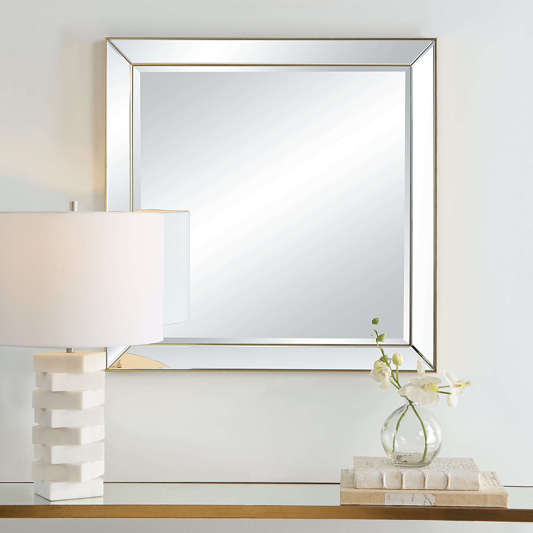 The Perfect Accent To Any Style, This Square Mirror Has A Slim Gold Outer And Inner Edge, Encasing A Raised Beveled Mirror Frame. Mirror Has A 1/2" Bevel.