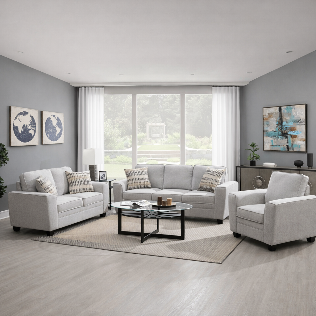 Confa Grey Living Room Set (Sofa + Loveseat + Chair)