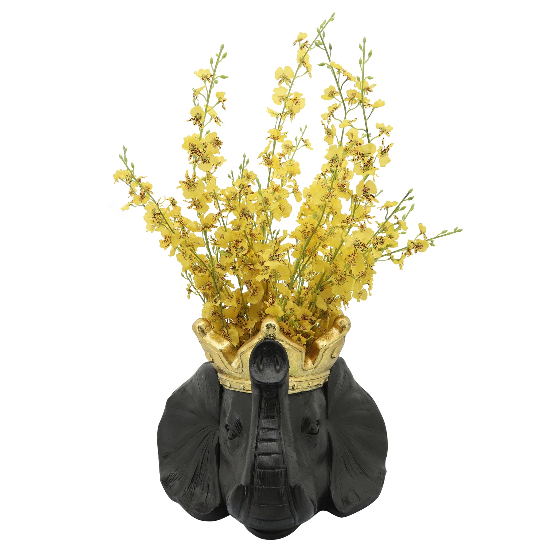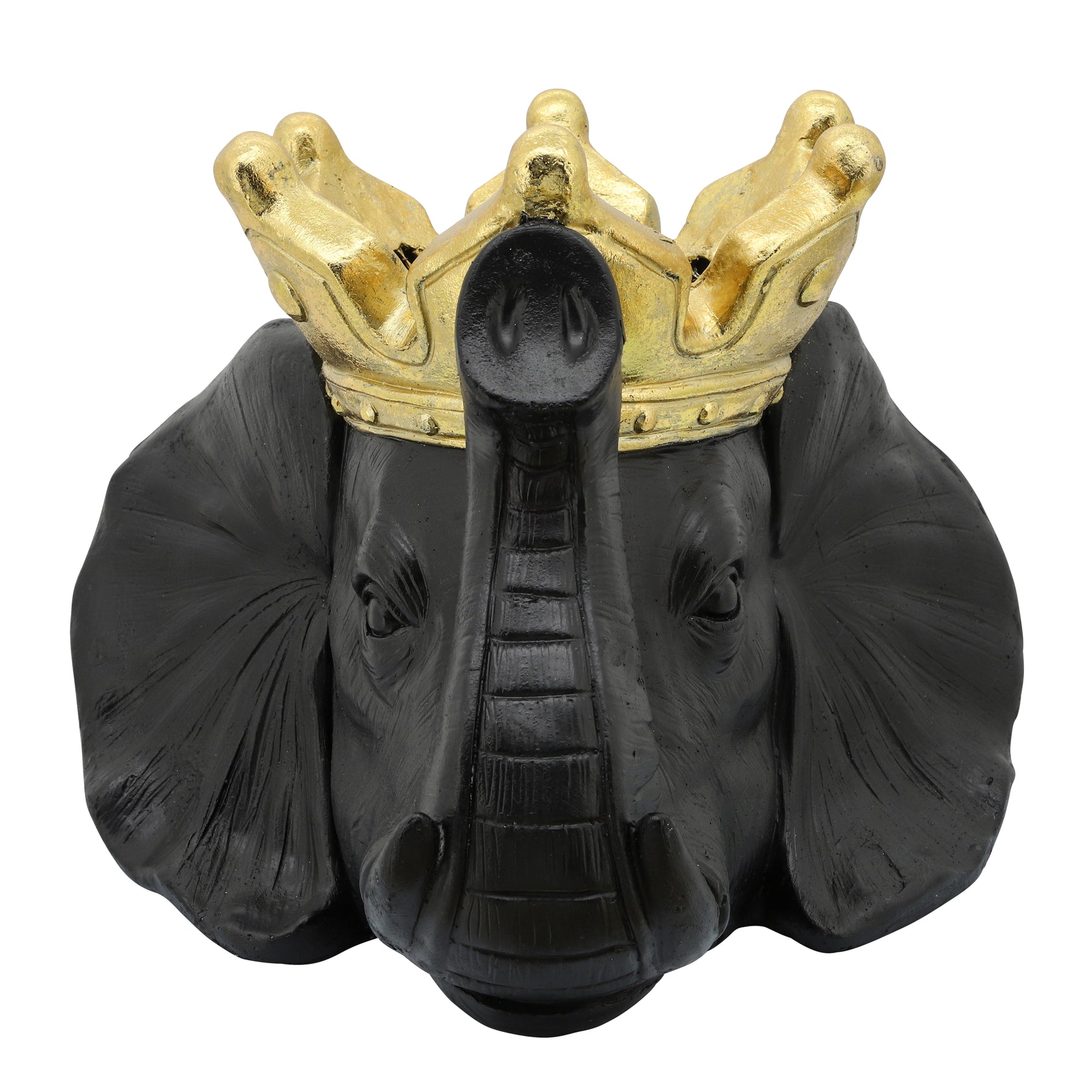 RESIN 16" ELEPHANT W/ CROWN, BLACK