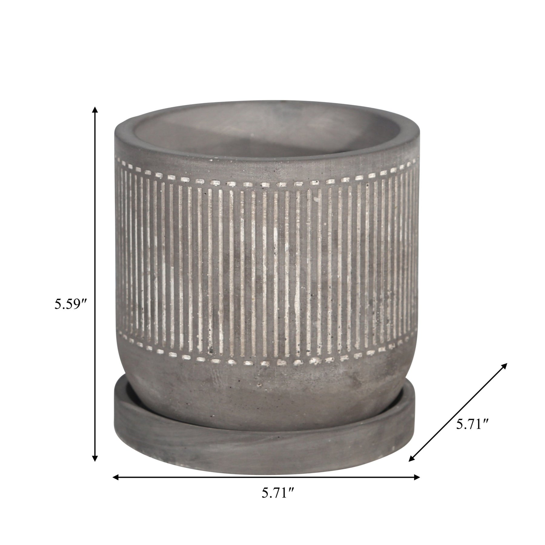 6" LINE PATTERN PLANTER W/ SAUCER, GRAY - Al Rugaib Furniture
