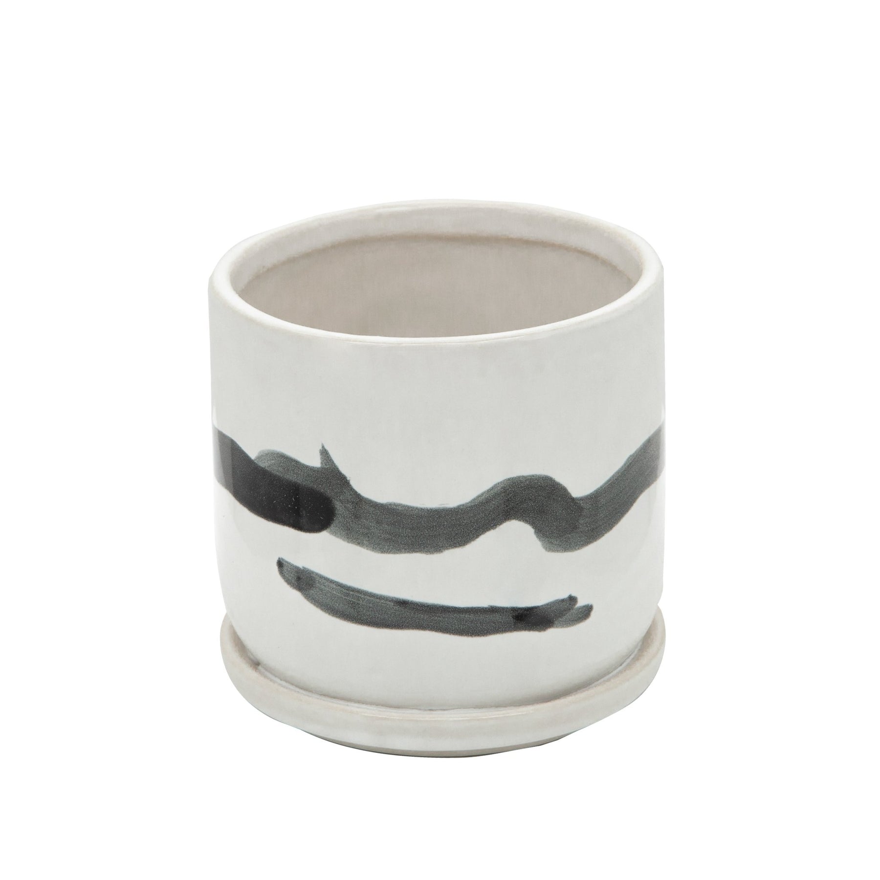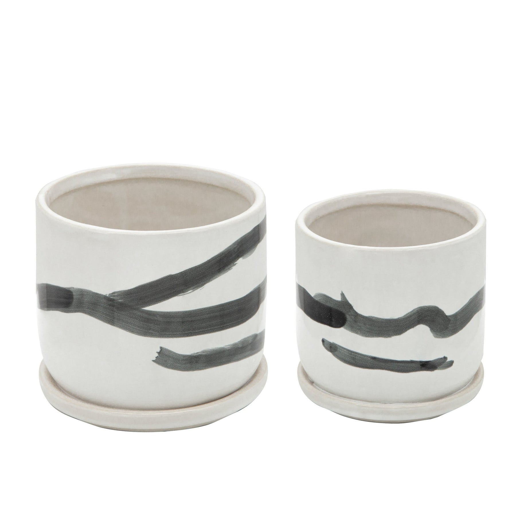 S/2 5/6" PAINTED PLANTERS W/ SAUCER, WHITE