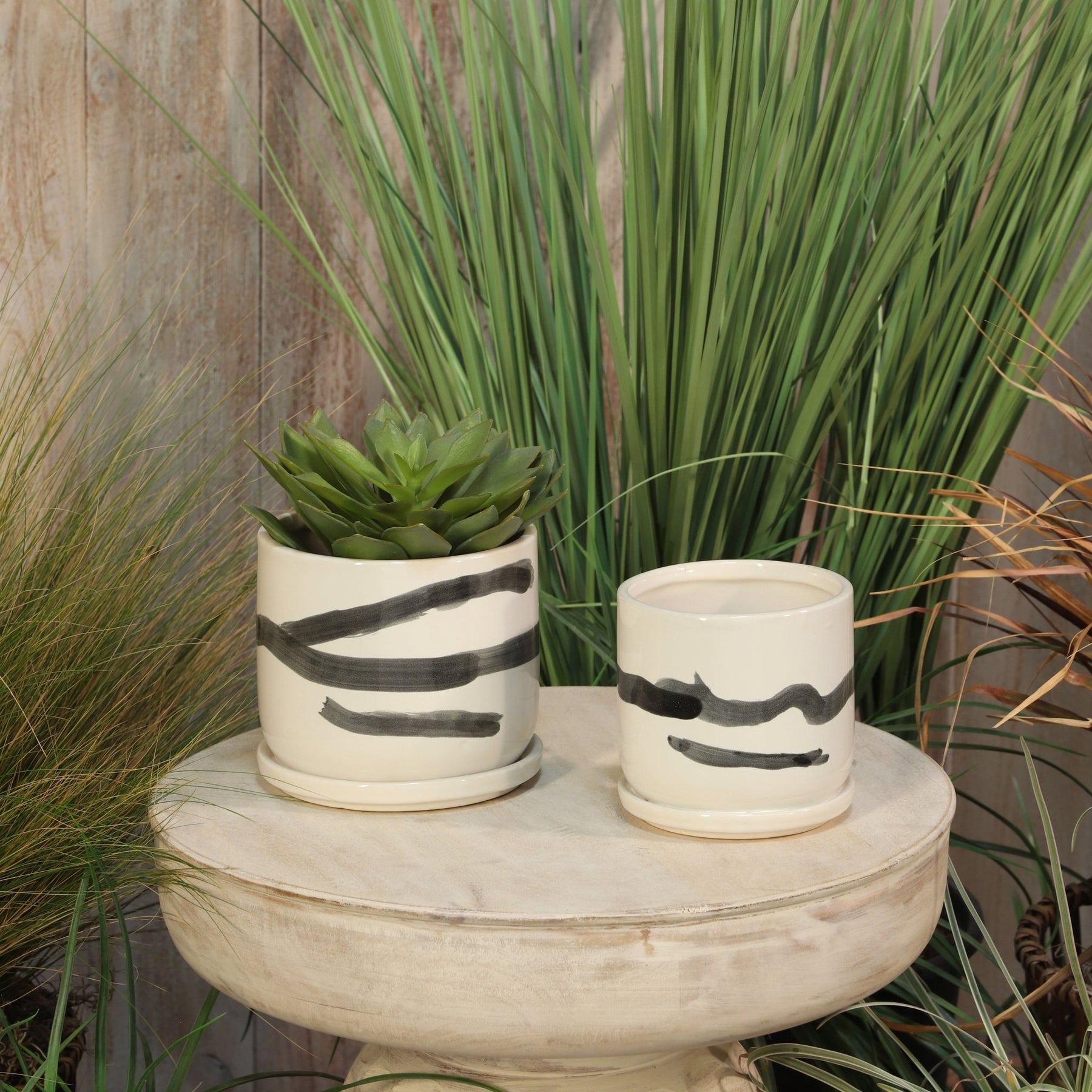 S/2 5/6" PAINTED PLANTERS W/ SAUCER, WHITE - Al Rugaib Furniture