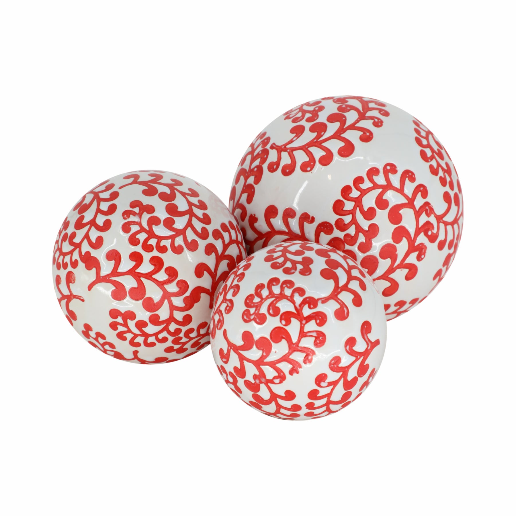 CER, S/3 FERN ORBS, 4/5/6" WHITE/RED