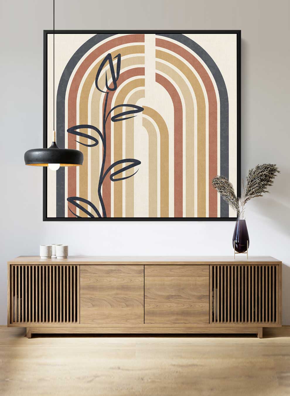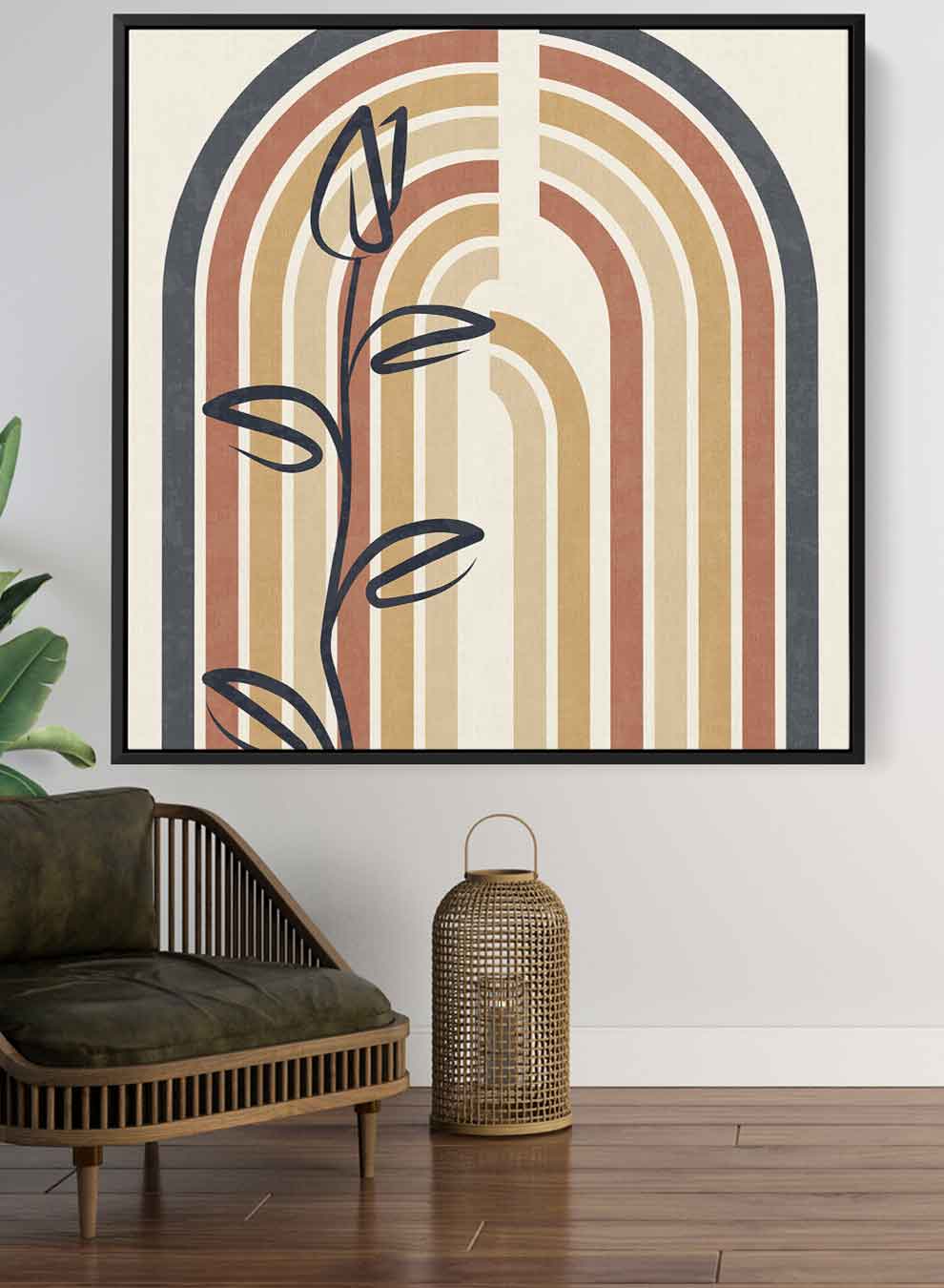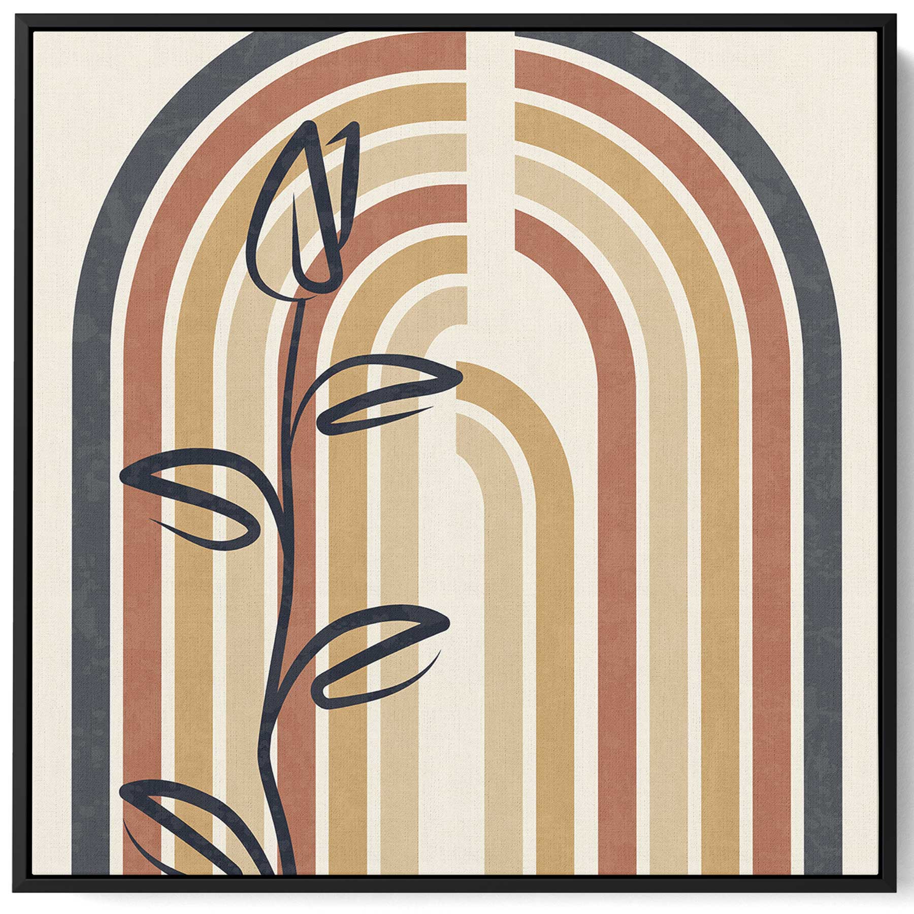 Square Canvas Wall Art Stretched Over Wooden Frame with Black Floating Frame and Colorful Arch Abstract Painting