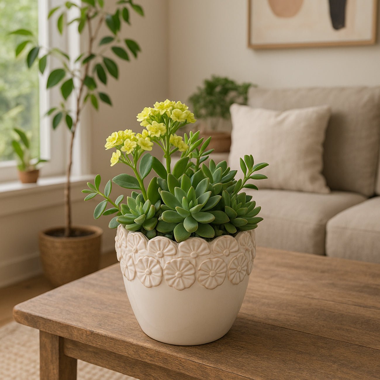 6" Floral Crown Planter, Ivory - Al Rugaib Furniture