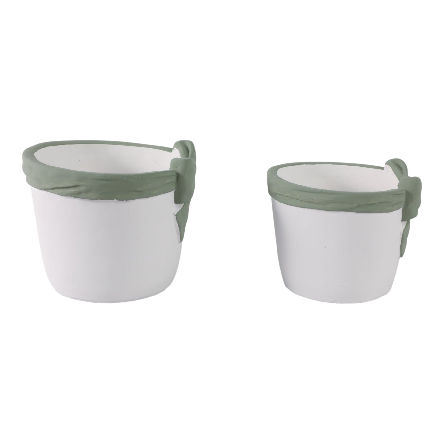 S/2 6/7" Big Bow Planters, White/green - Al Rugaib Furniture