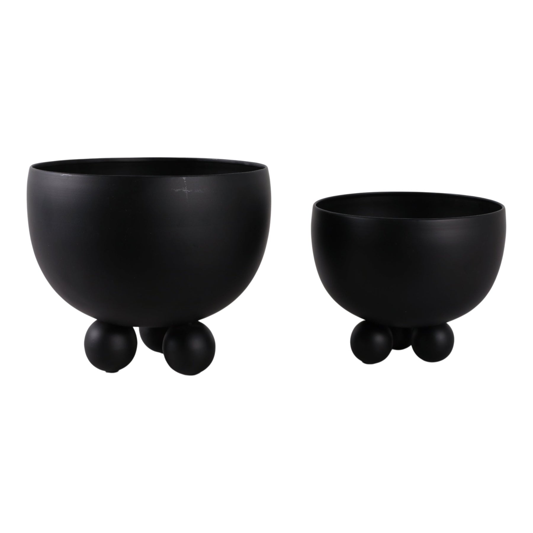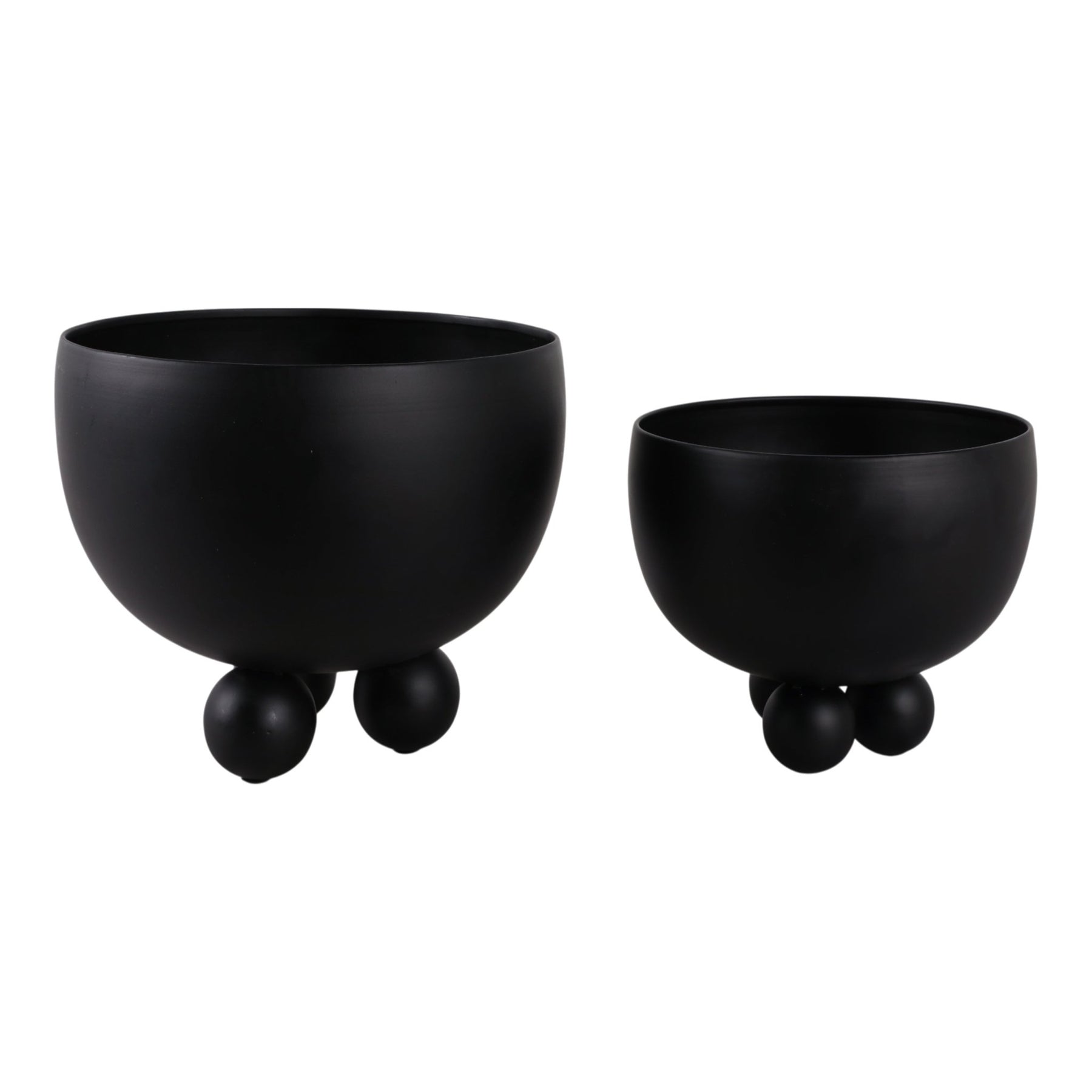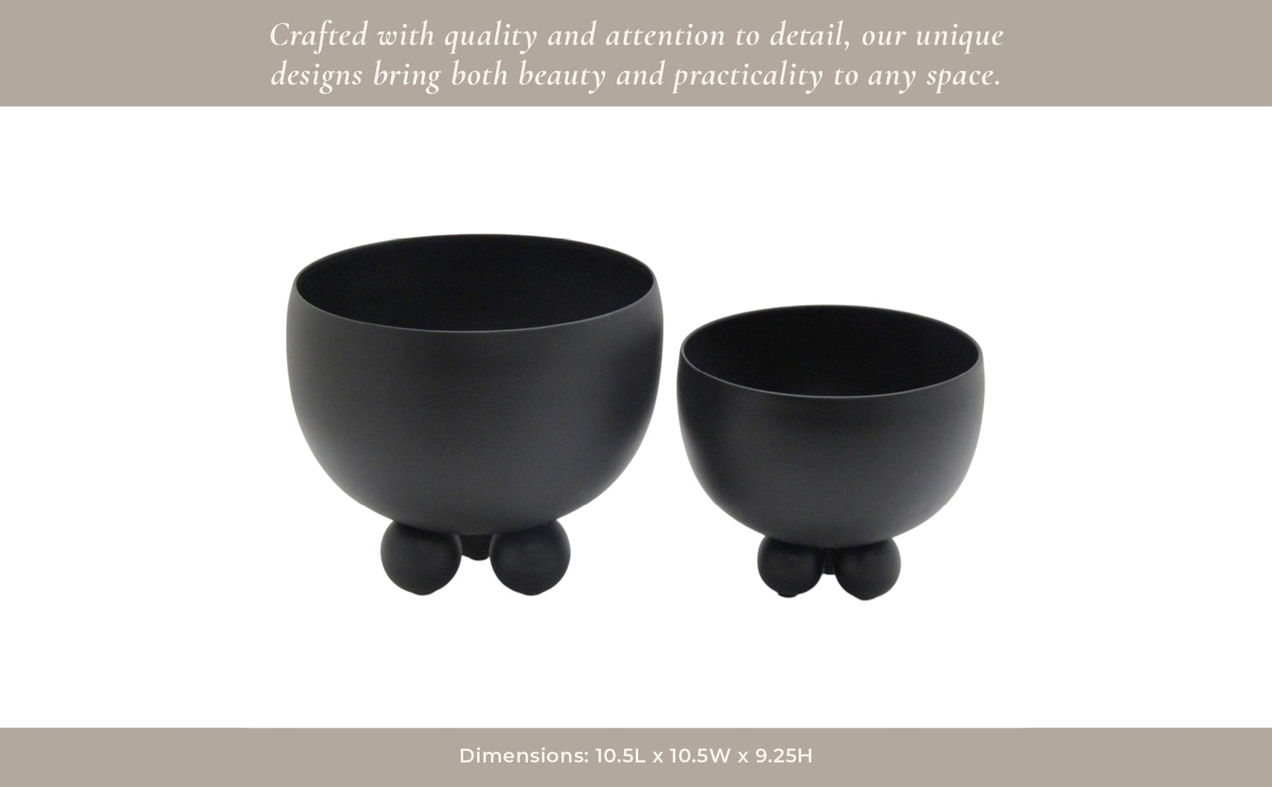 S/2 9/11" Metal Bowl Planter With Ball Feet, Black