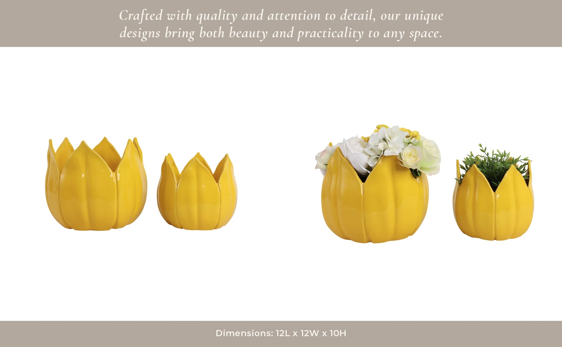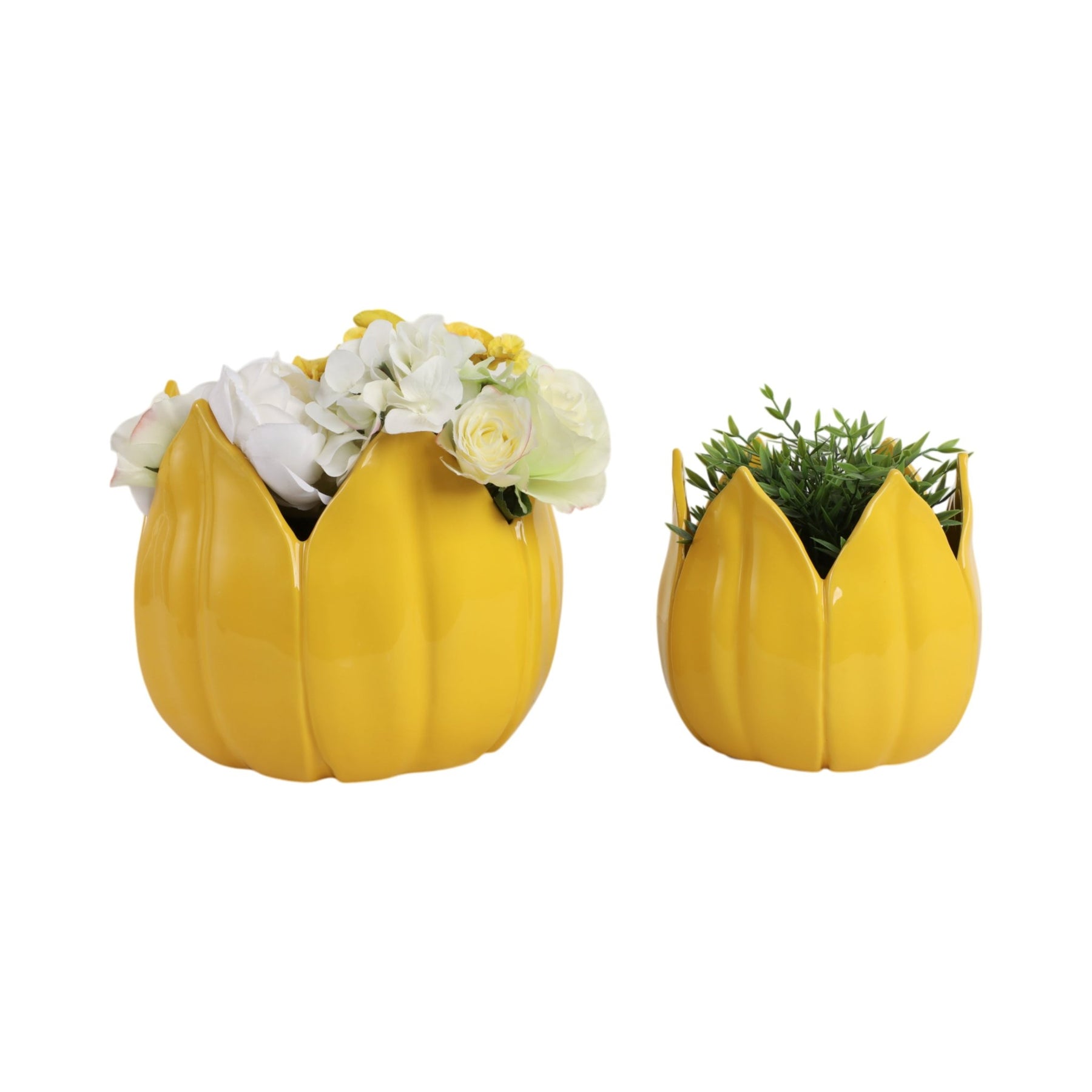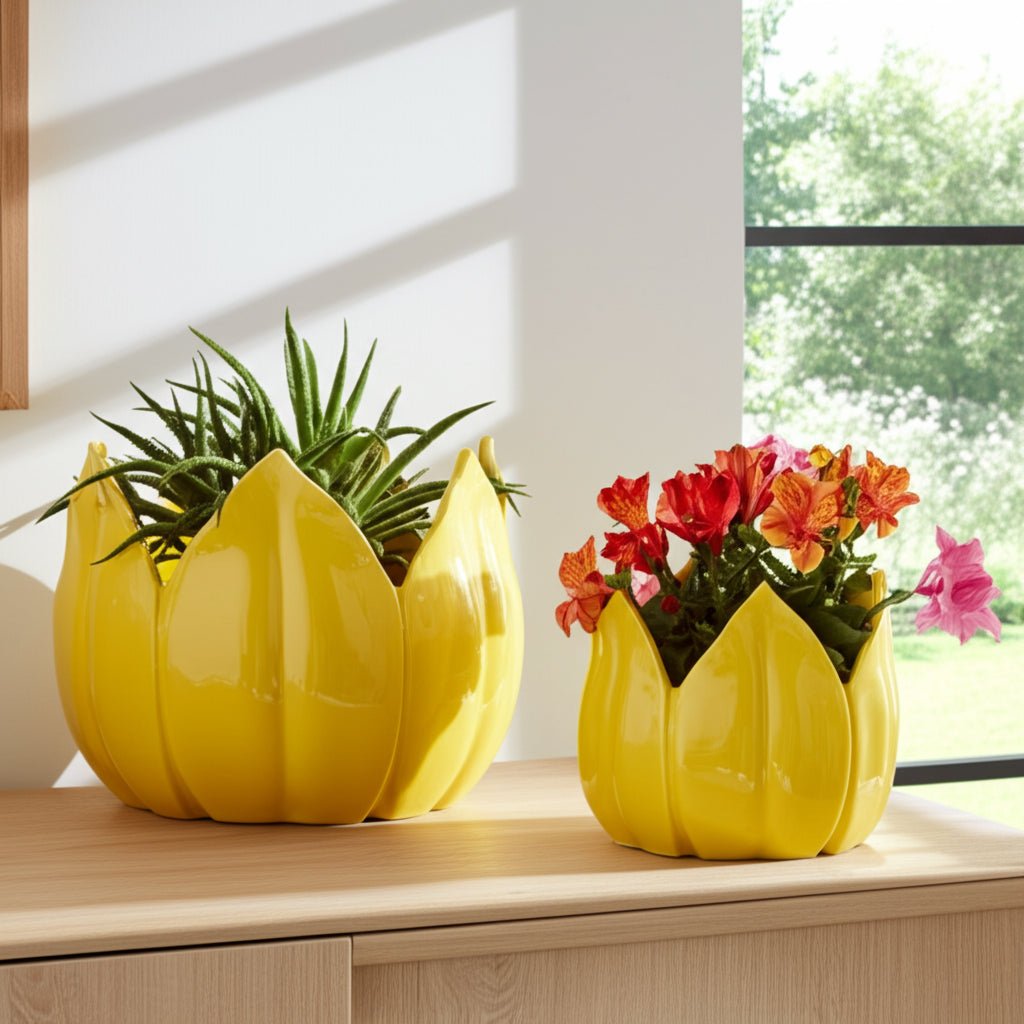 S/2 9/12" Petal Planters, Yellow - Al Rugaib Furniture