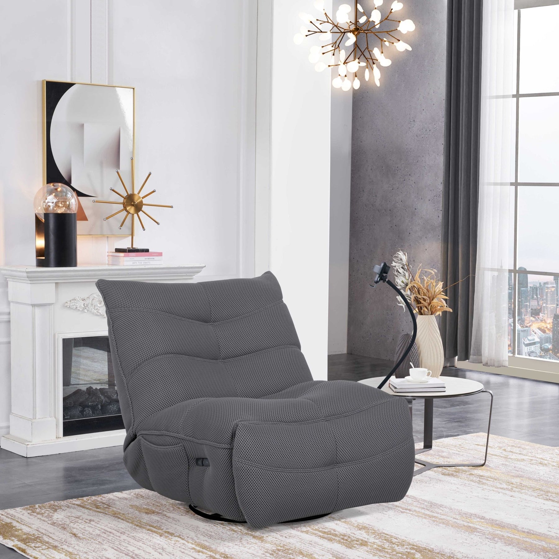 Finn Grey Swivel Power Recliner - Al Rugaib Furniture