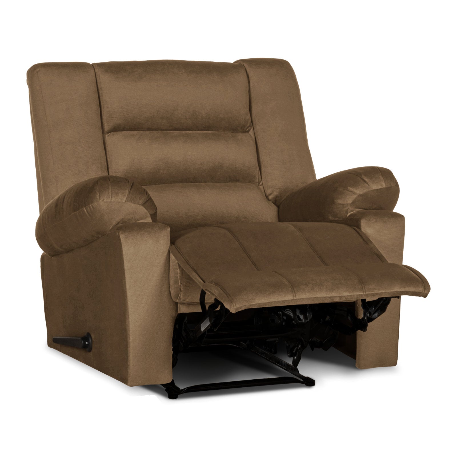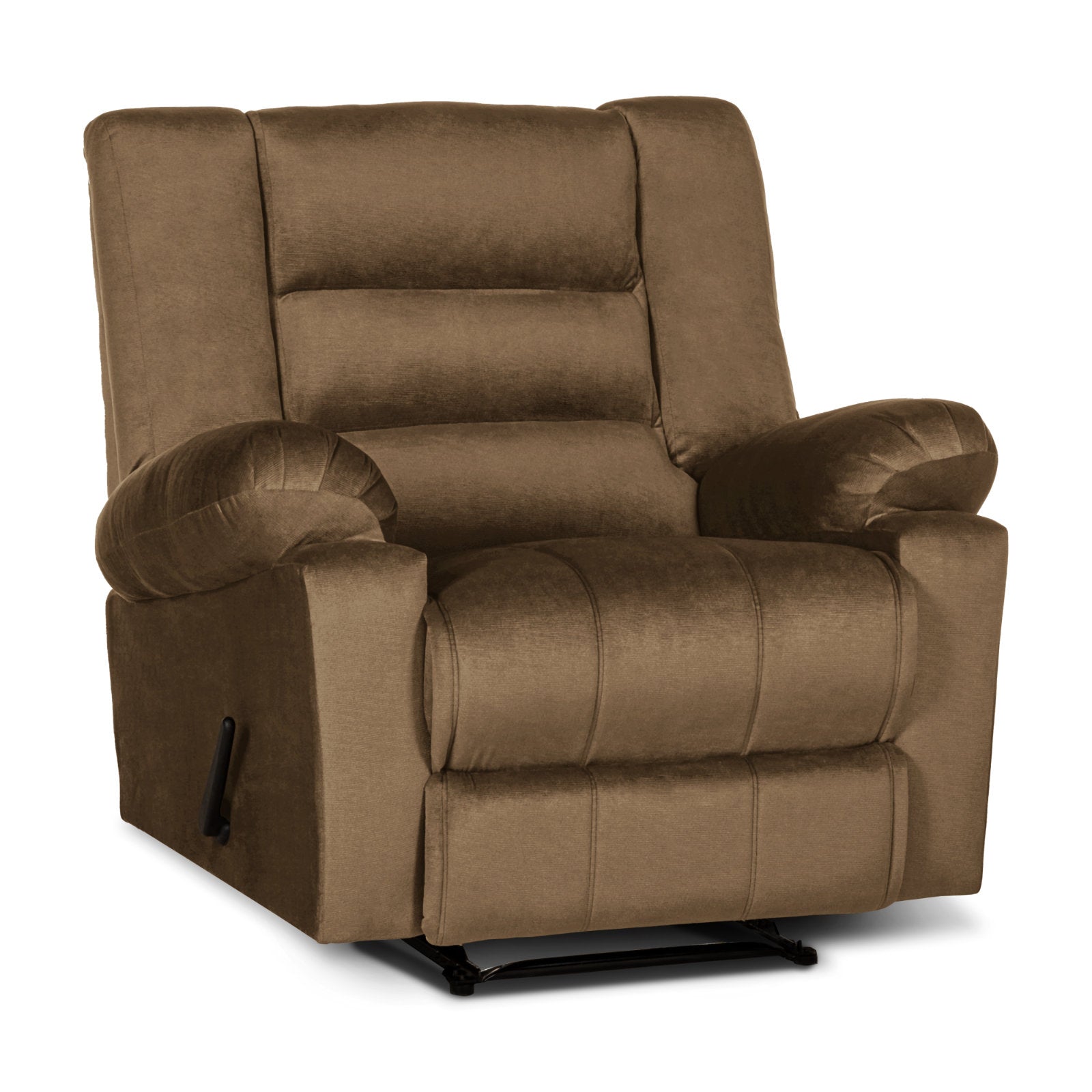 Velvet Upholstered Rocking Recliner Chair With Bed Mode From In House - Light Brown - Nice 02