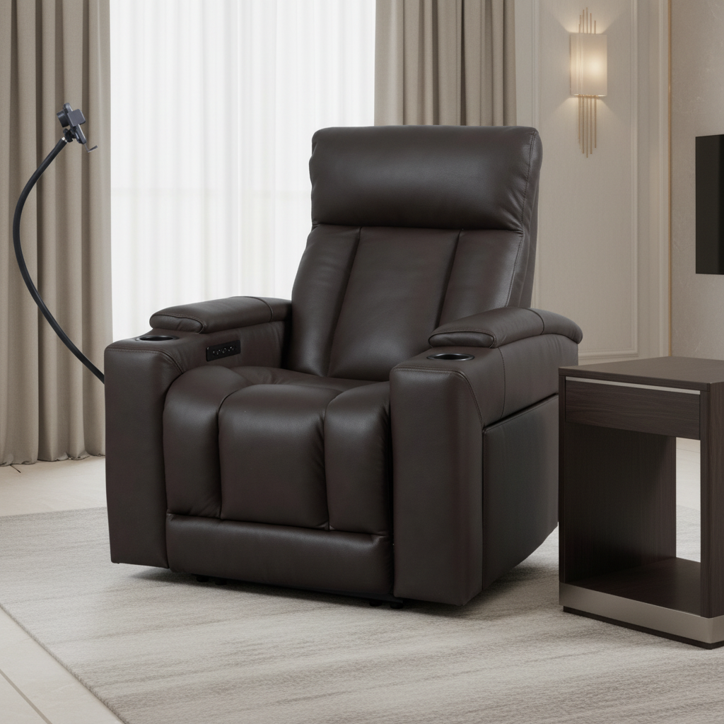 LuxeGlow Dark Brown PWR Recliner