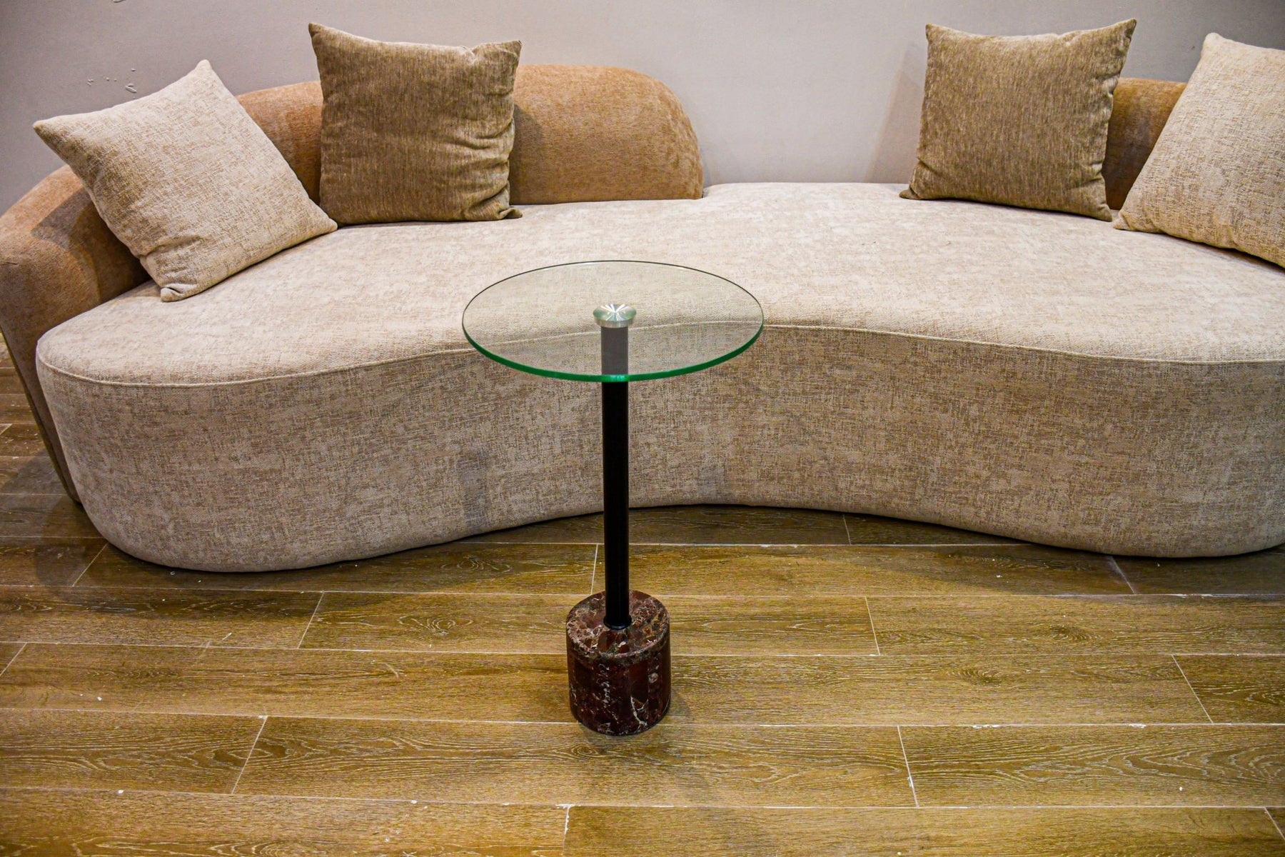 Royal | Glass-Top Accent Side Table with Marble Base – Reddish