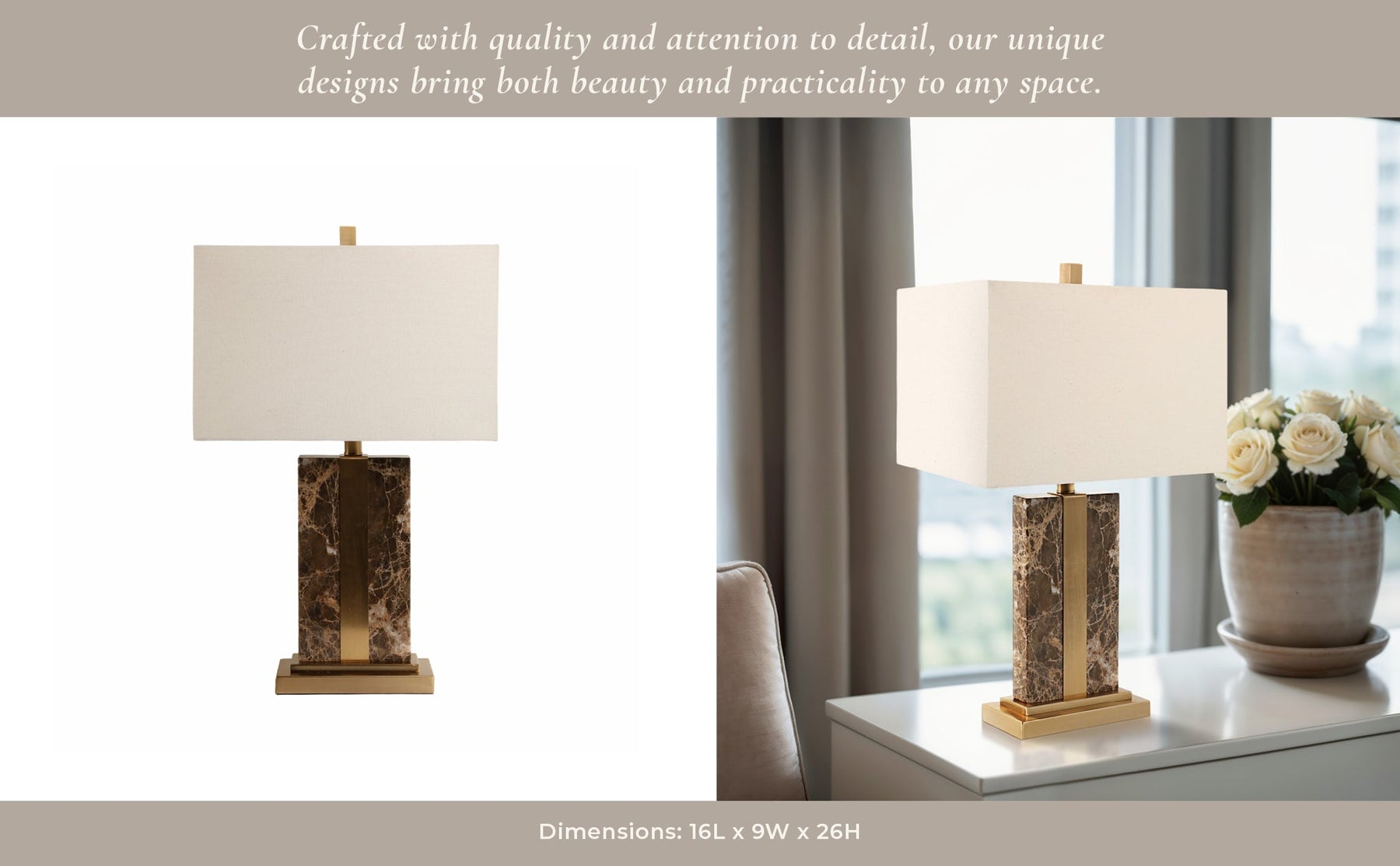26x16" Rectangle Marble Lamp W/ Antique Brass, Bro