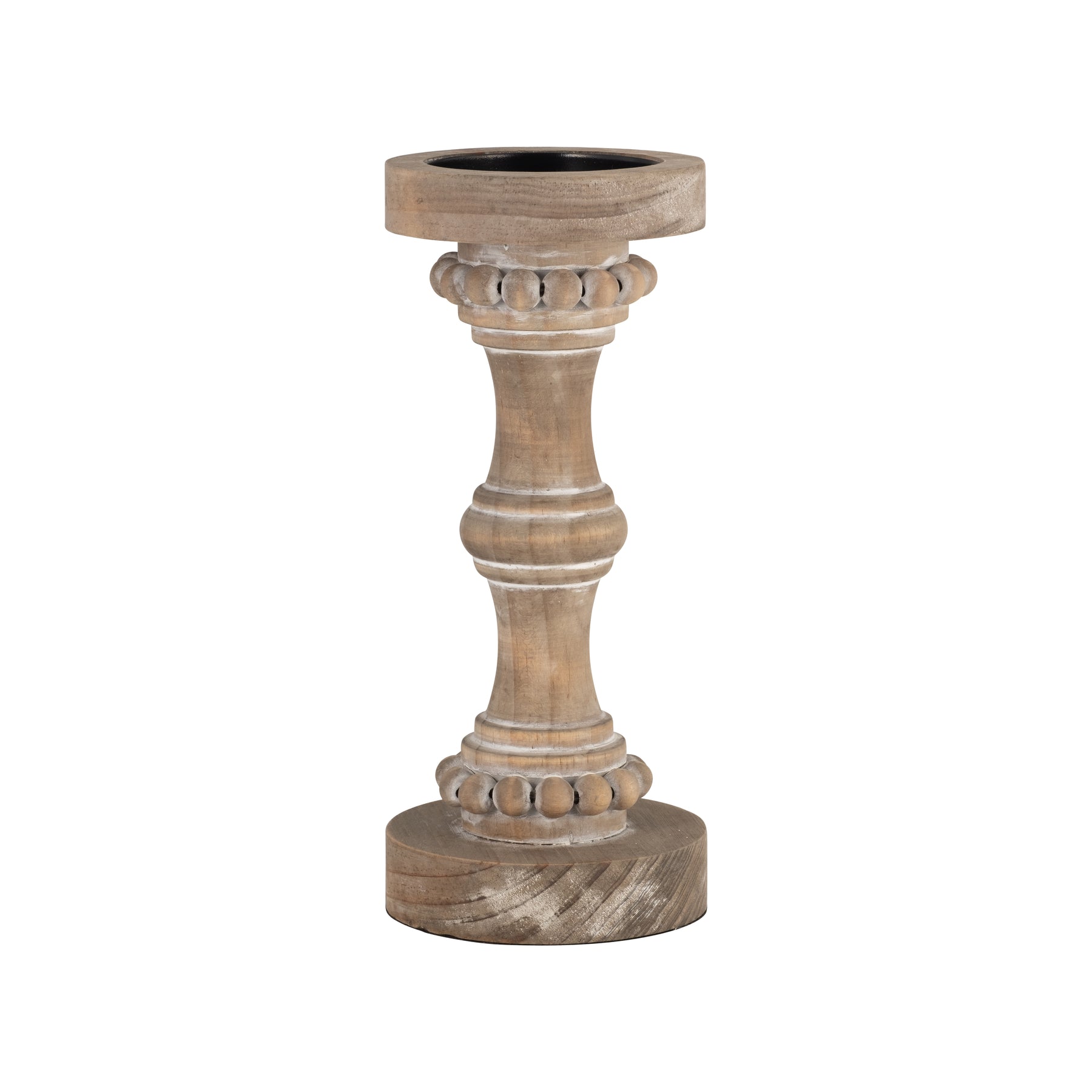 Wood, 11" Banded Bead Candle Holder, Antique White