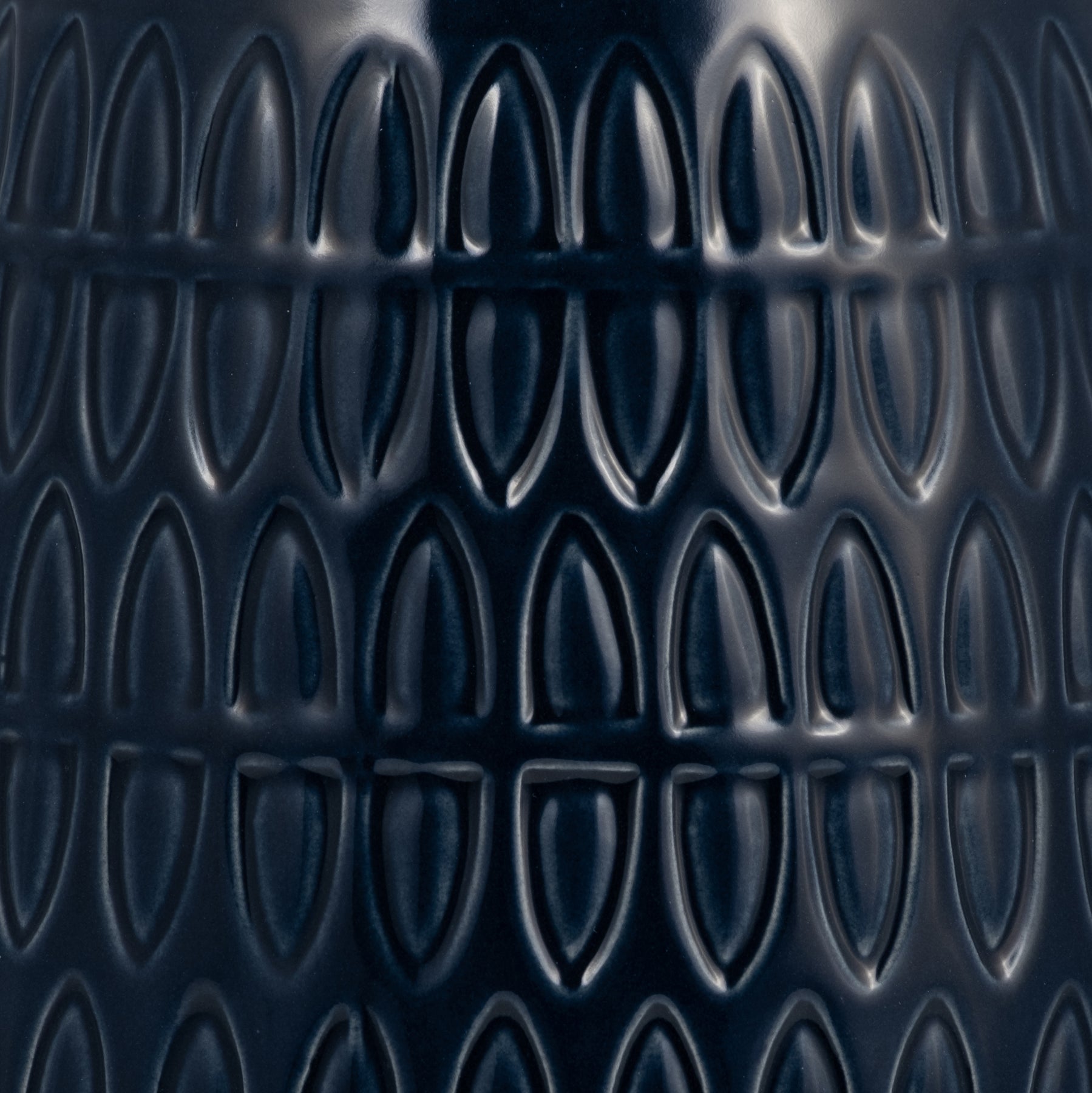 CER, 8"H CARVED VASE, NAVY BLUE