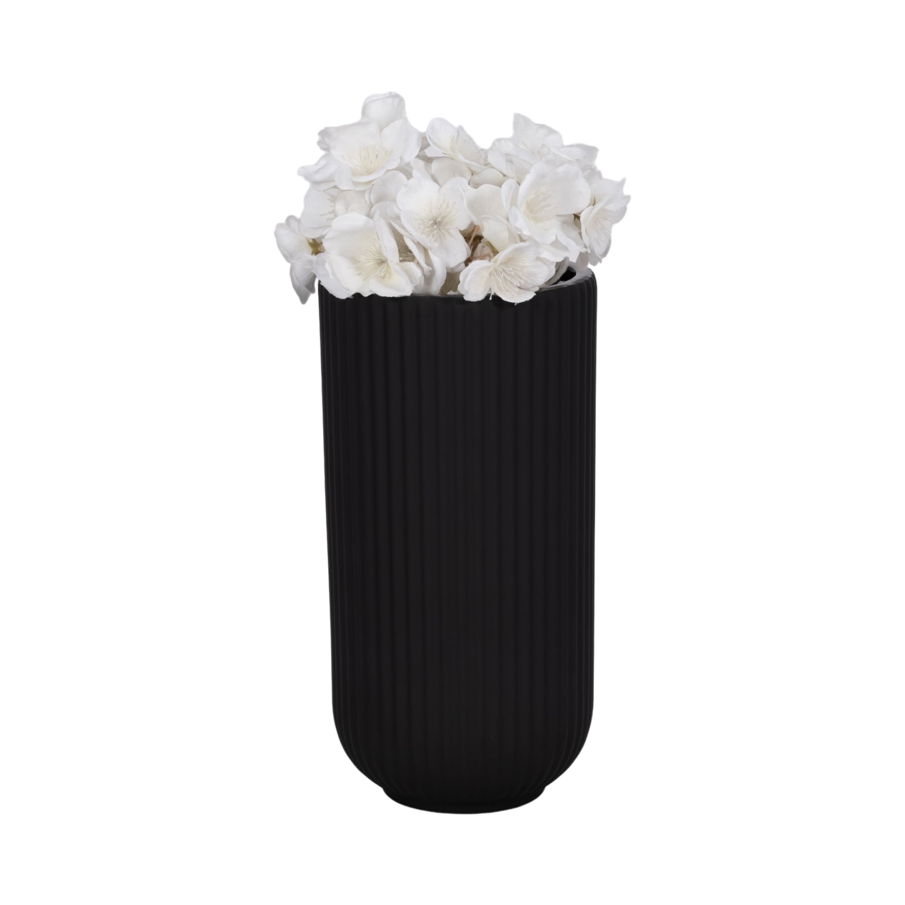 CER, 9"H RIDGED VASE, BLACK