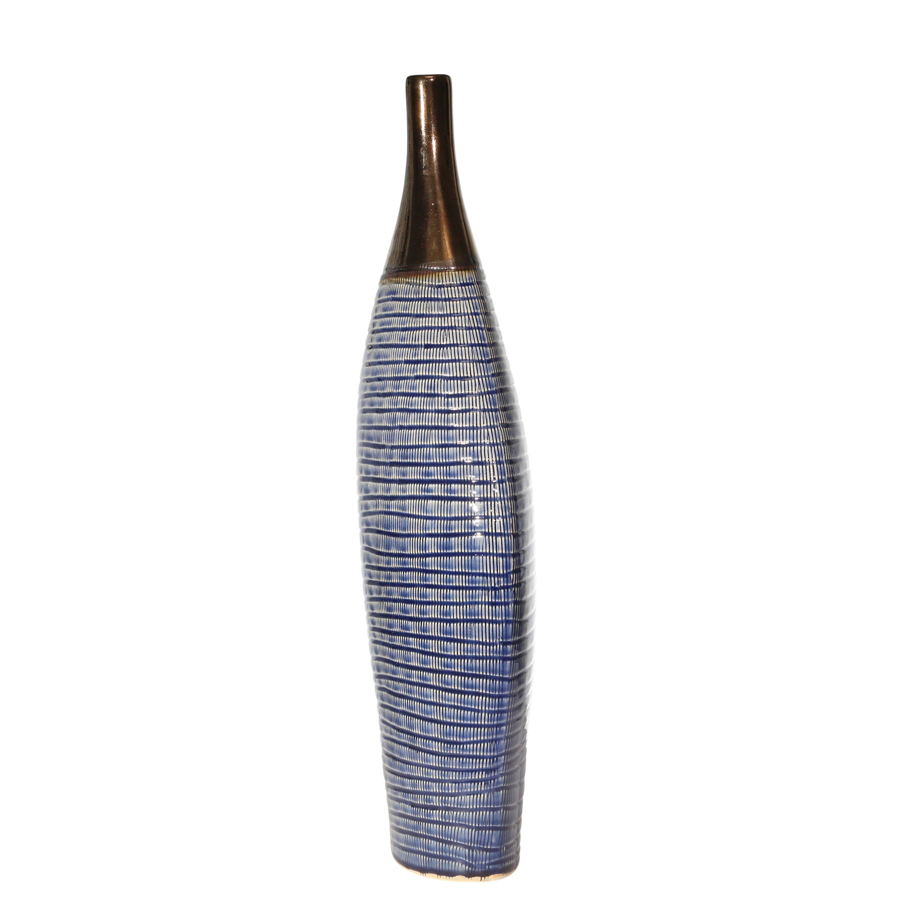 CERAMIC 23.5" NARROW NECK VASE, GOLD/BLUE