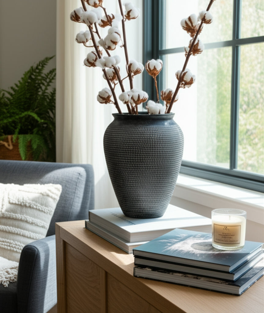 الزهرية الخزفية الملمس، اللون الأسود Textured Stoneware Vase, Black