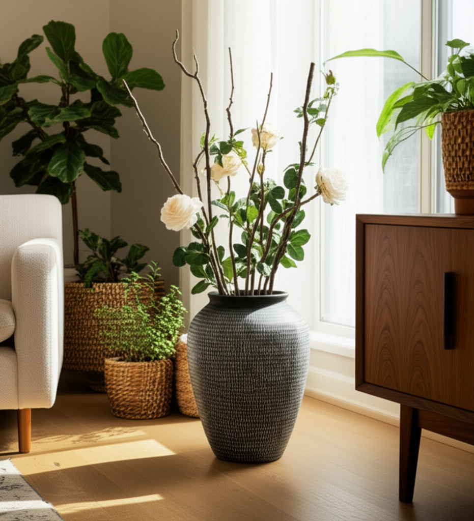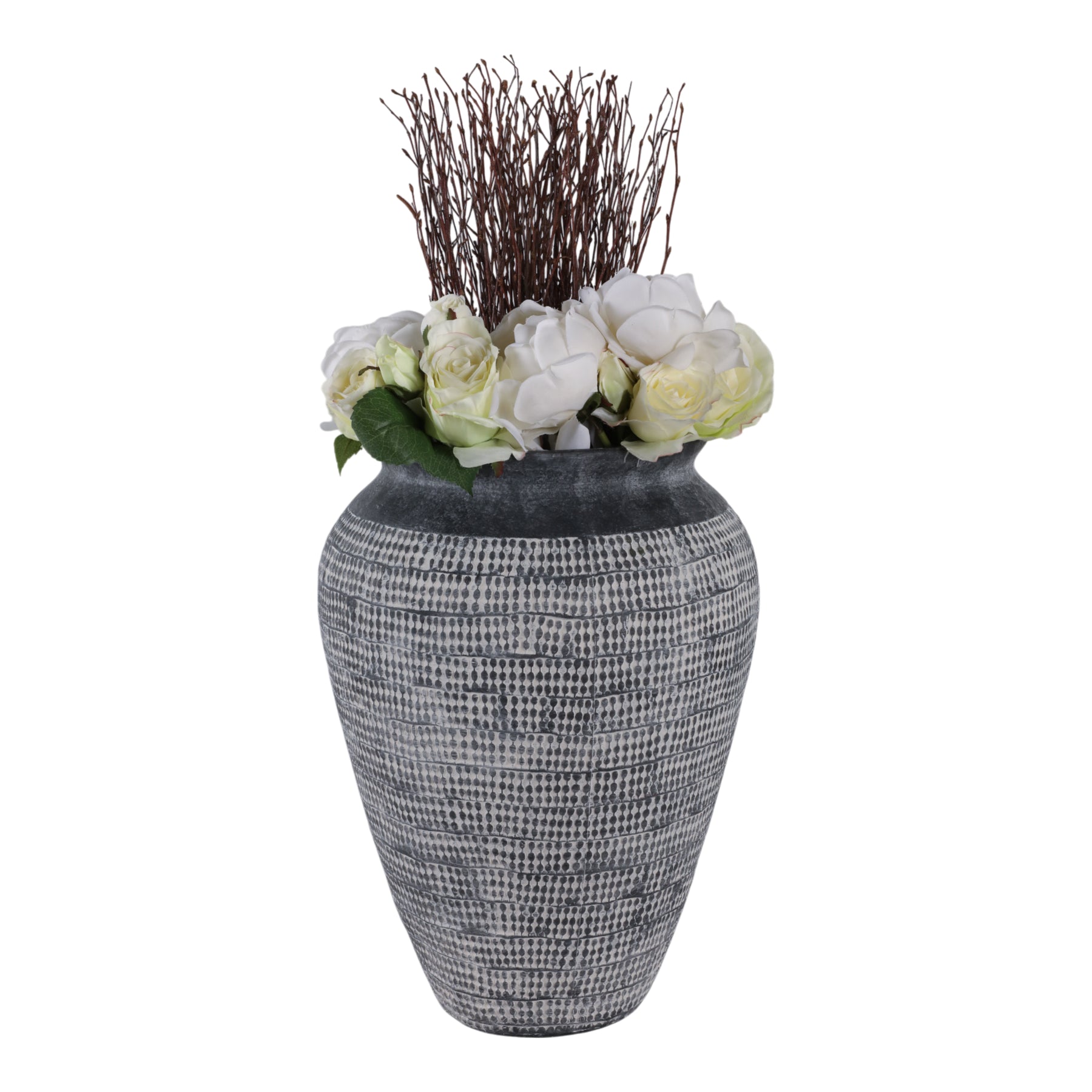 المزهرية الحجرية ذات النسيج، اللون الأسود Textured Stoneware Vase, Black