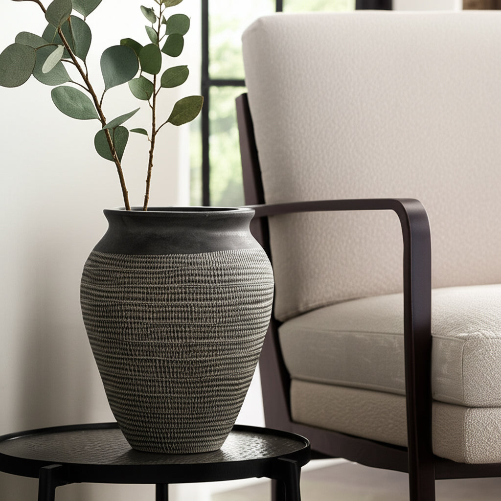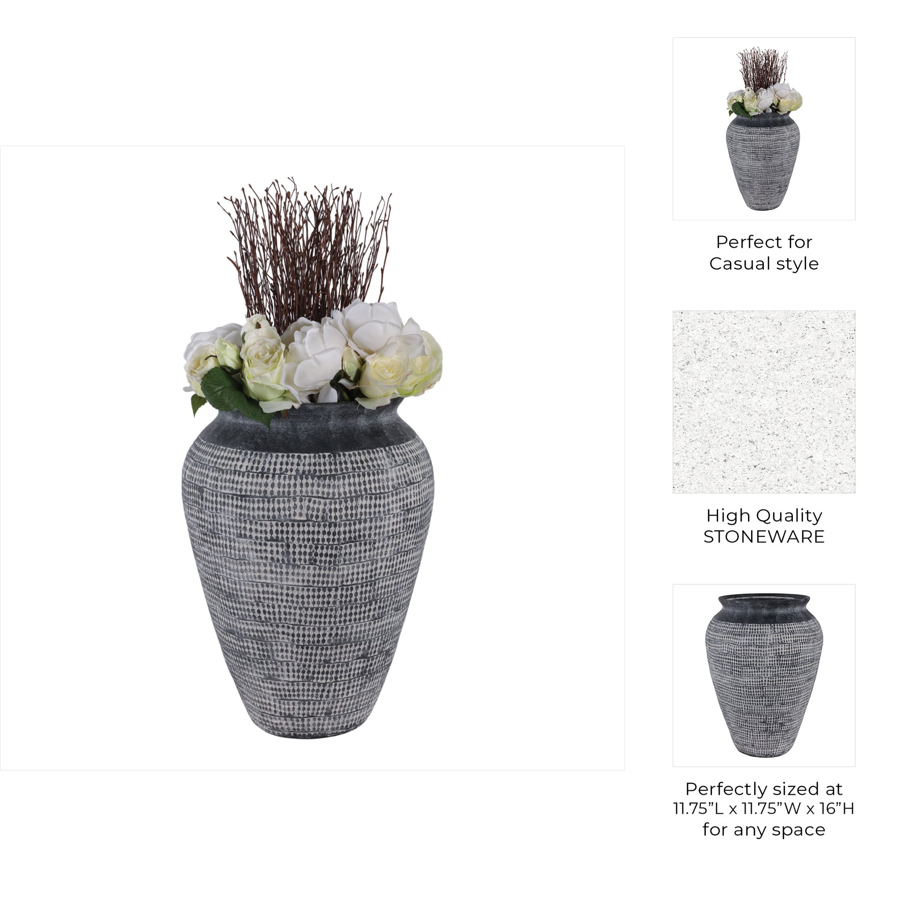 مزهرية من الخزف الملمس، سوداء Textured Stoneware Vase, Black