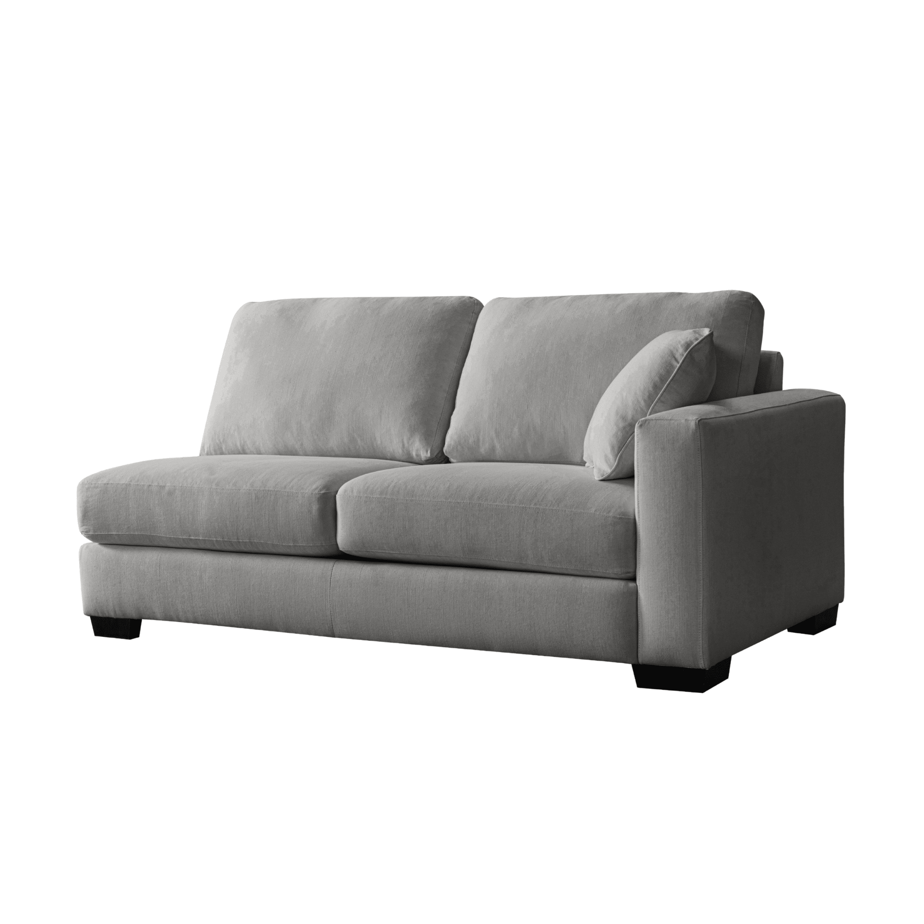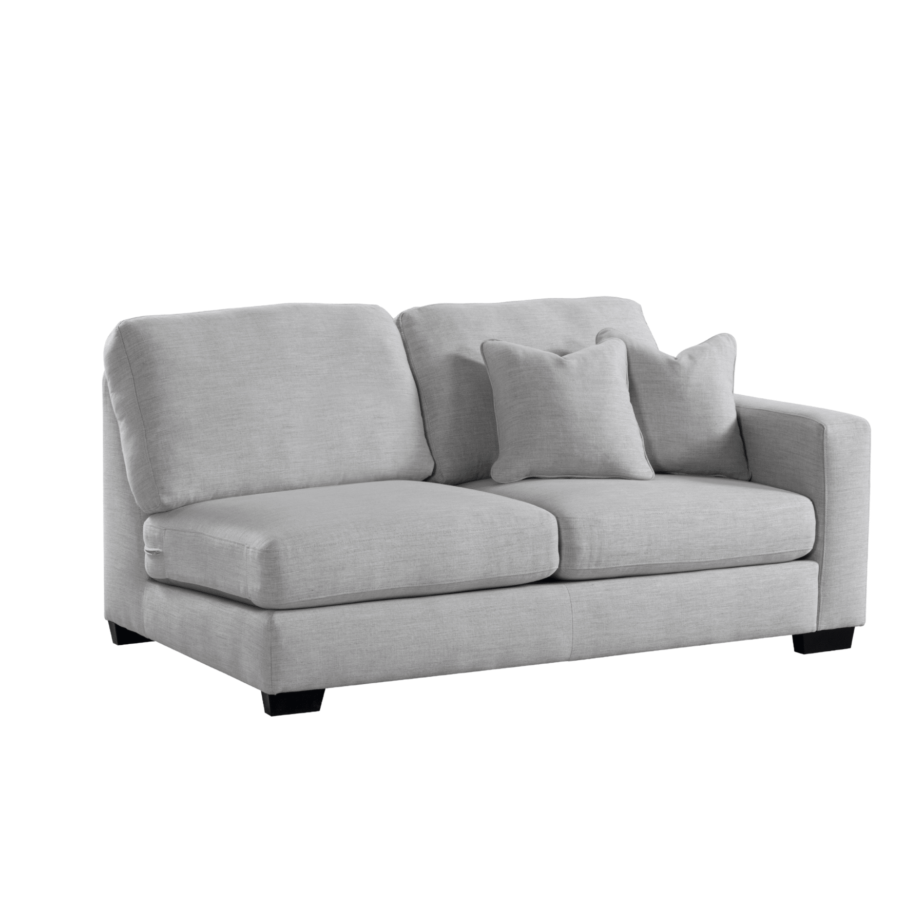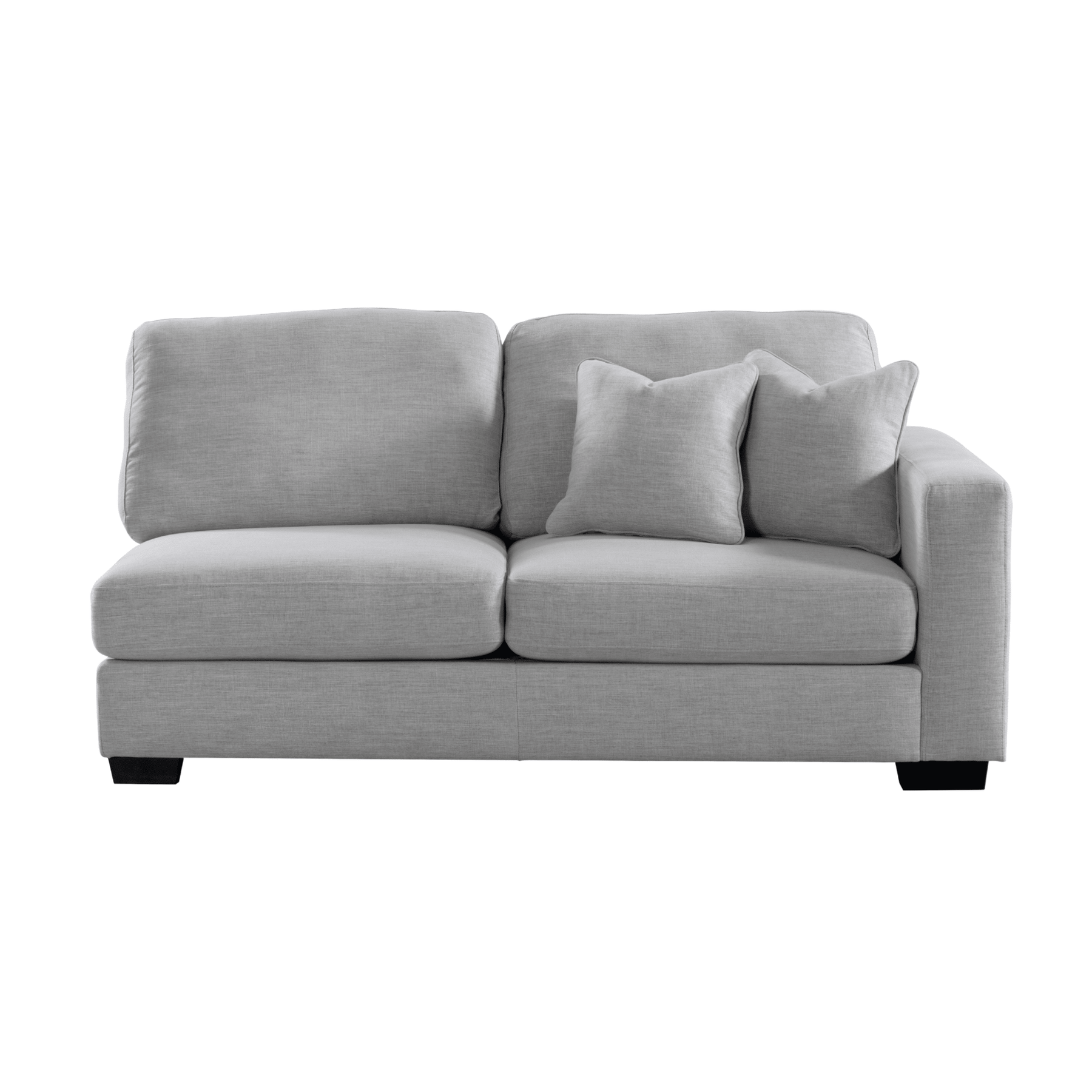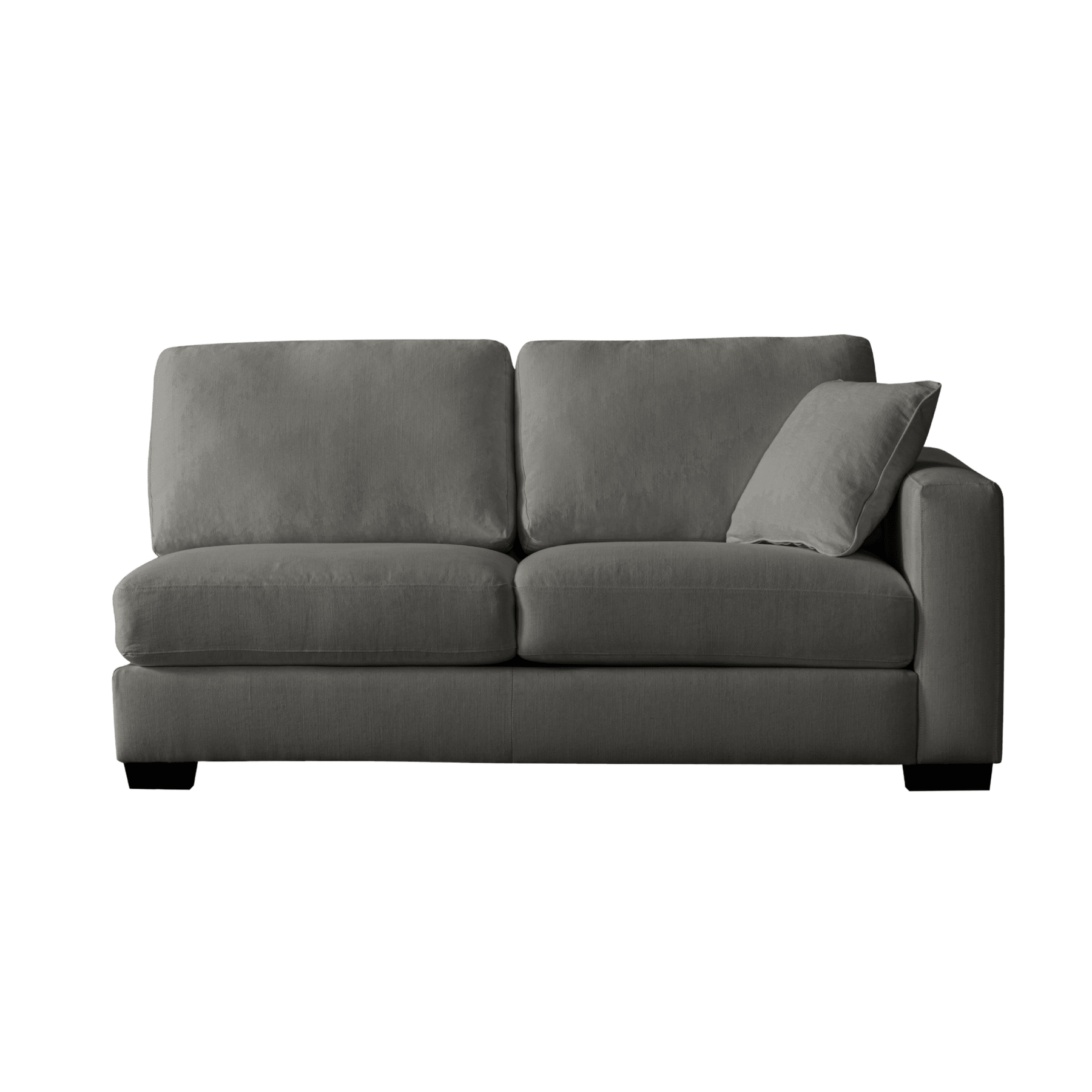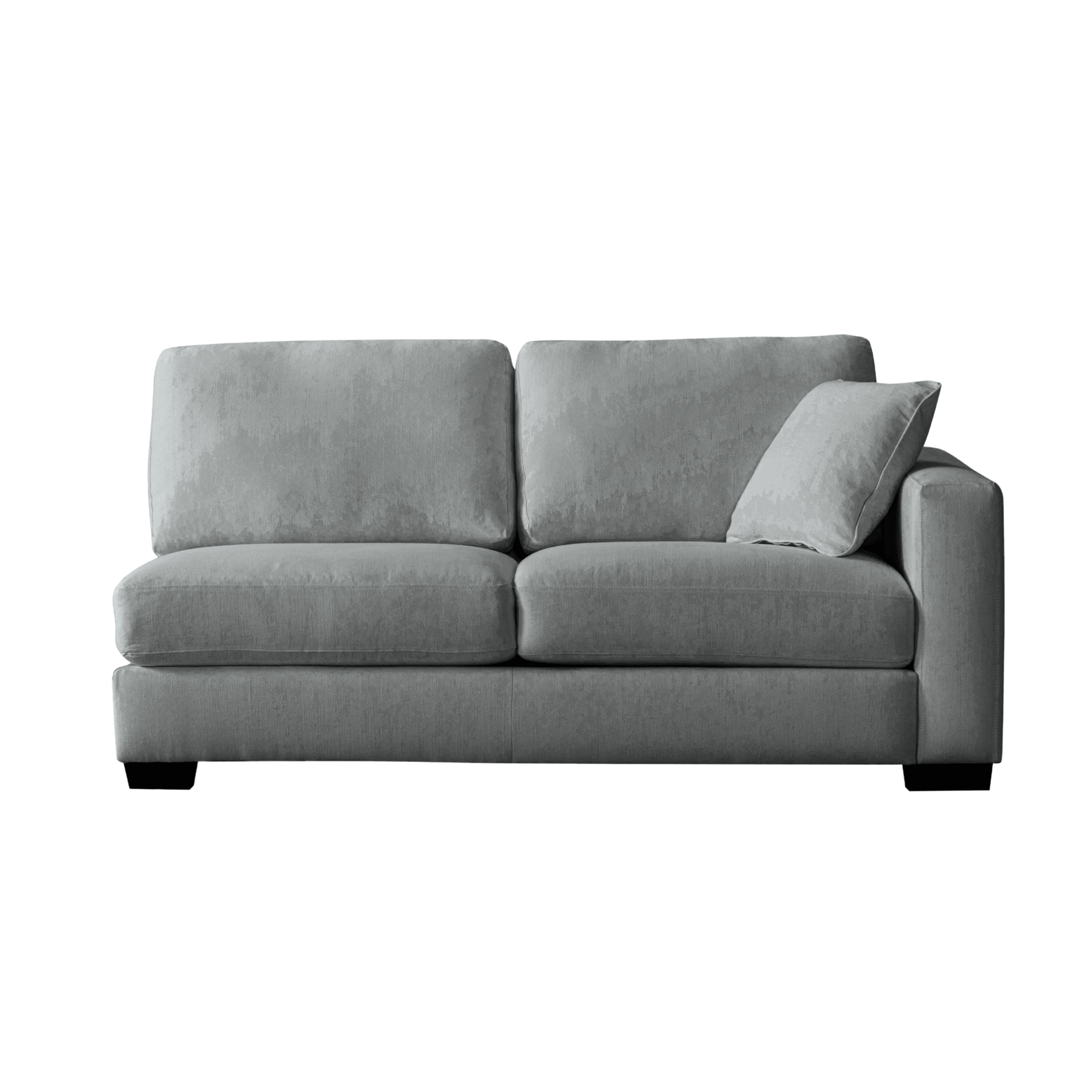 Get comfort in our trendy and spacious sectional, with its clean lines, sleek material and modern style. With plush grey fabric and charming cushions, this cozy and grand Sectional by Roots Furniture is definitely what you need in your home.