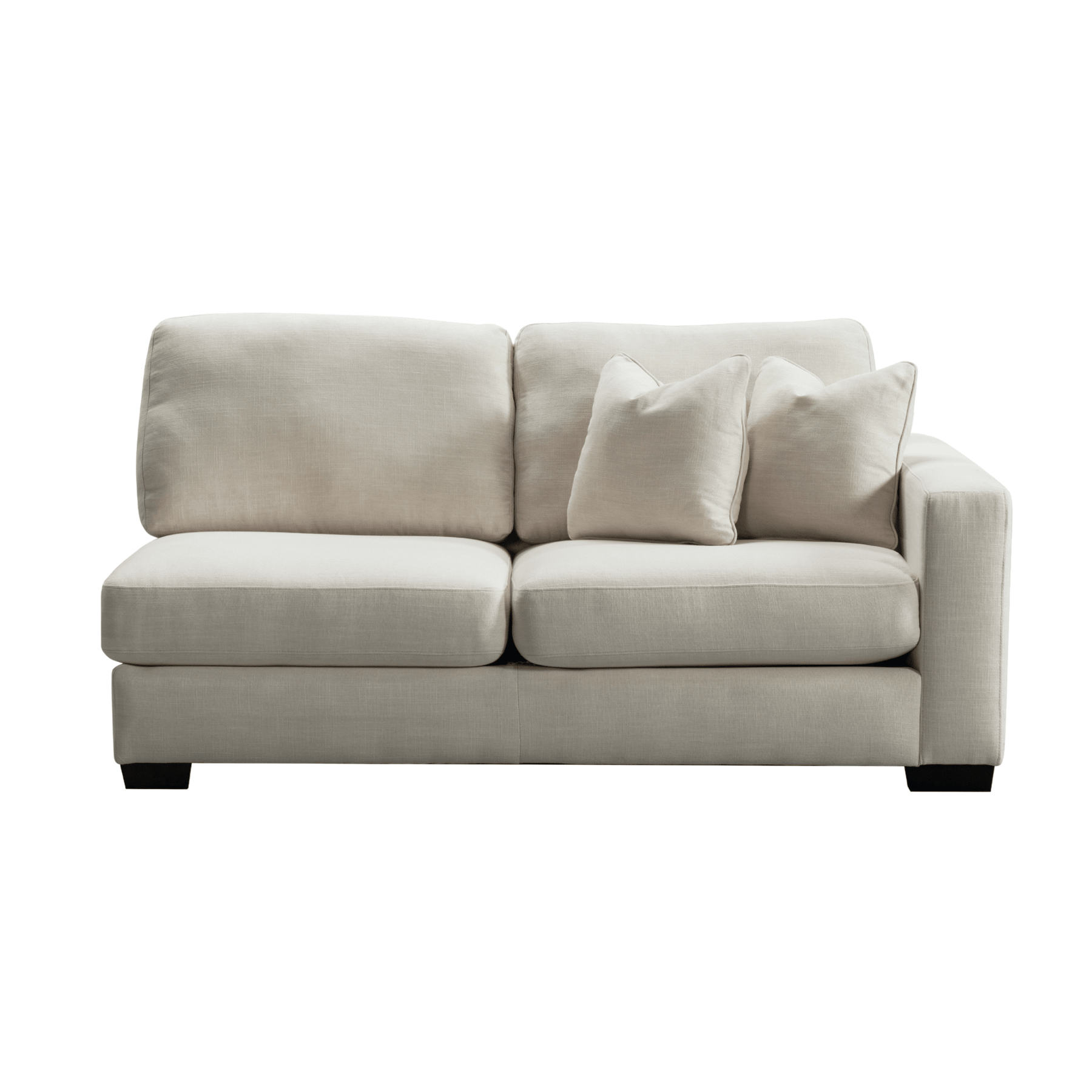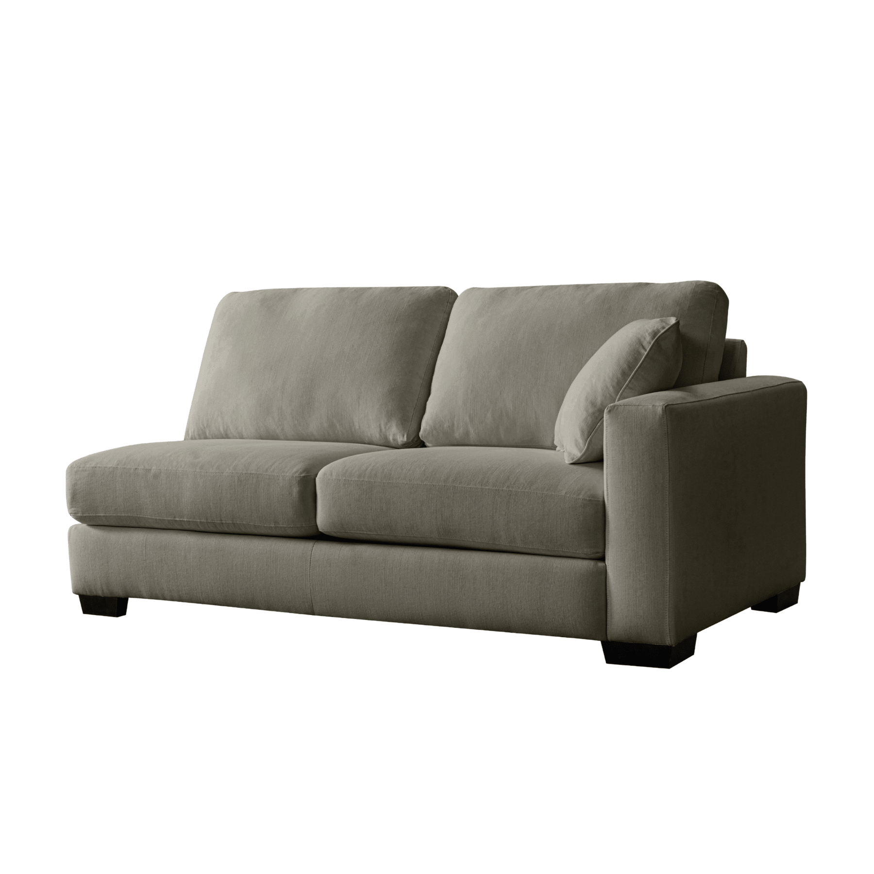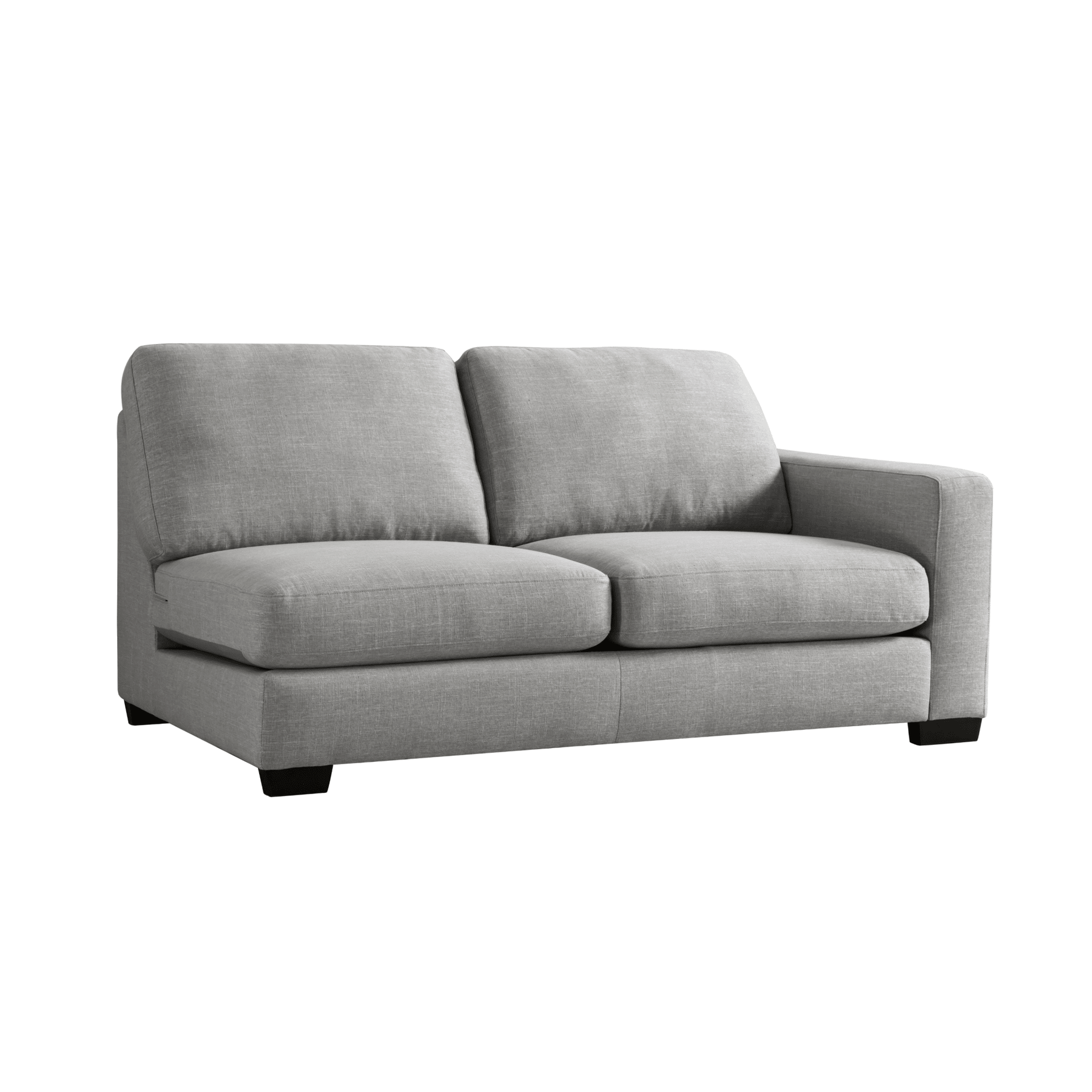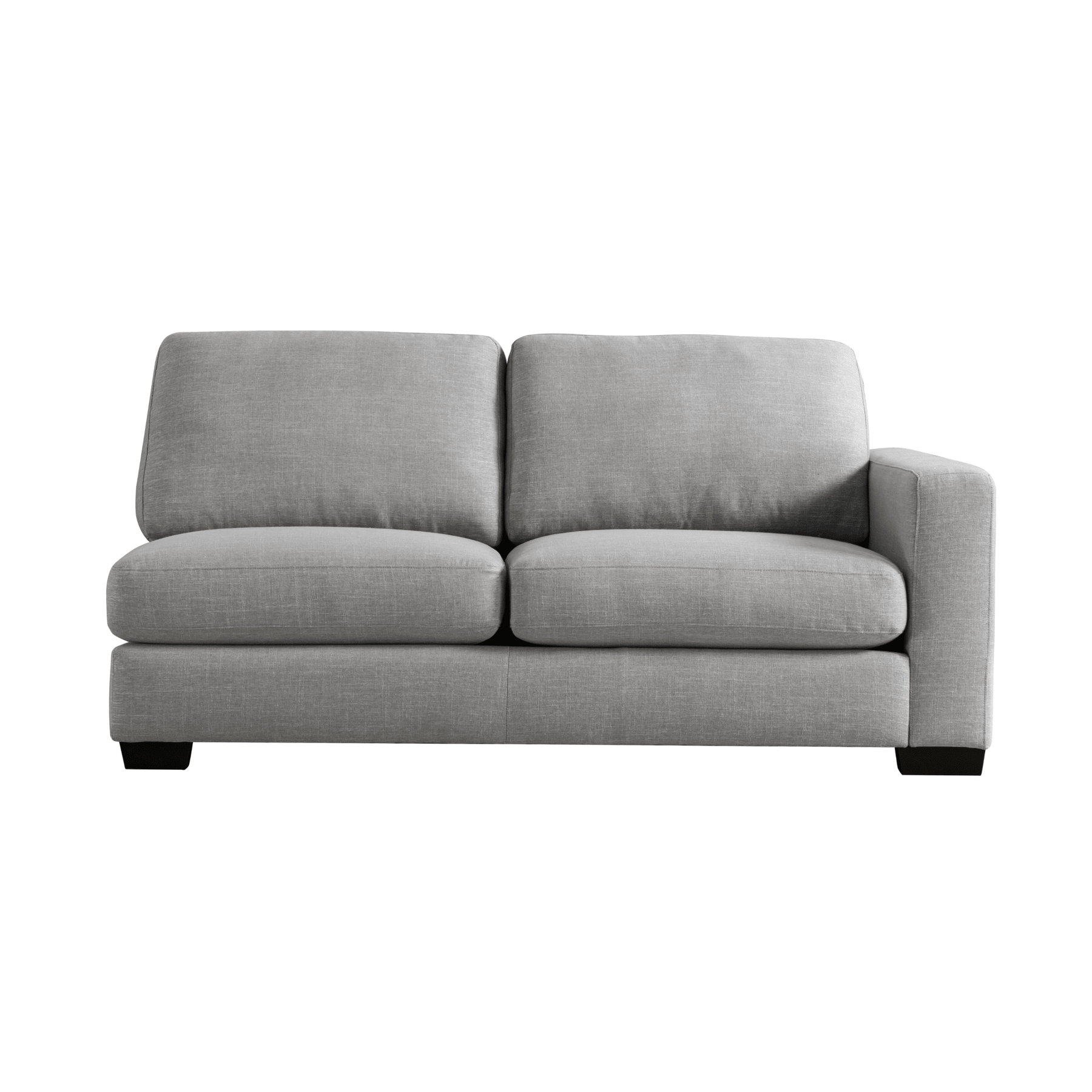 Get comfort in our trendy and spacious sectional, with its clean lines, sleek material and modern style. With plush grey fabric and charming cushions, this cozy and grand Sectional by Roots Furniture is definitely what you need in your home.