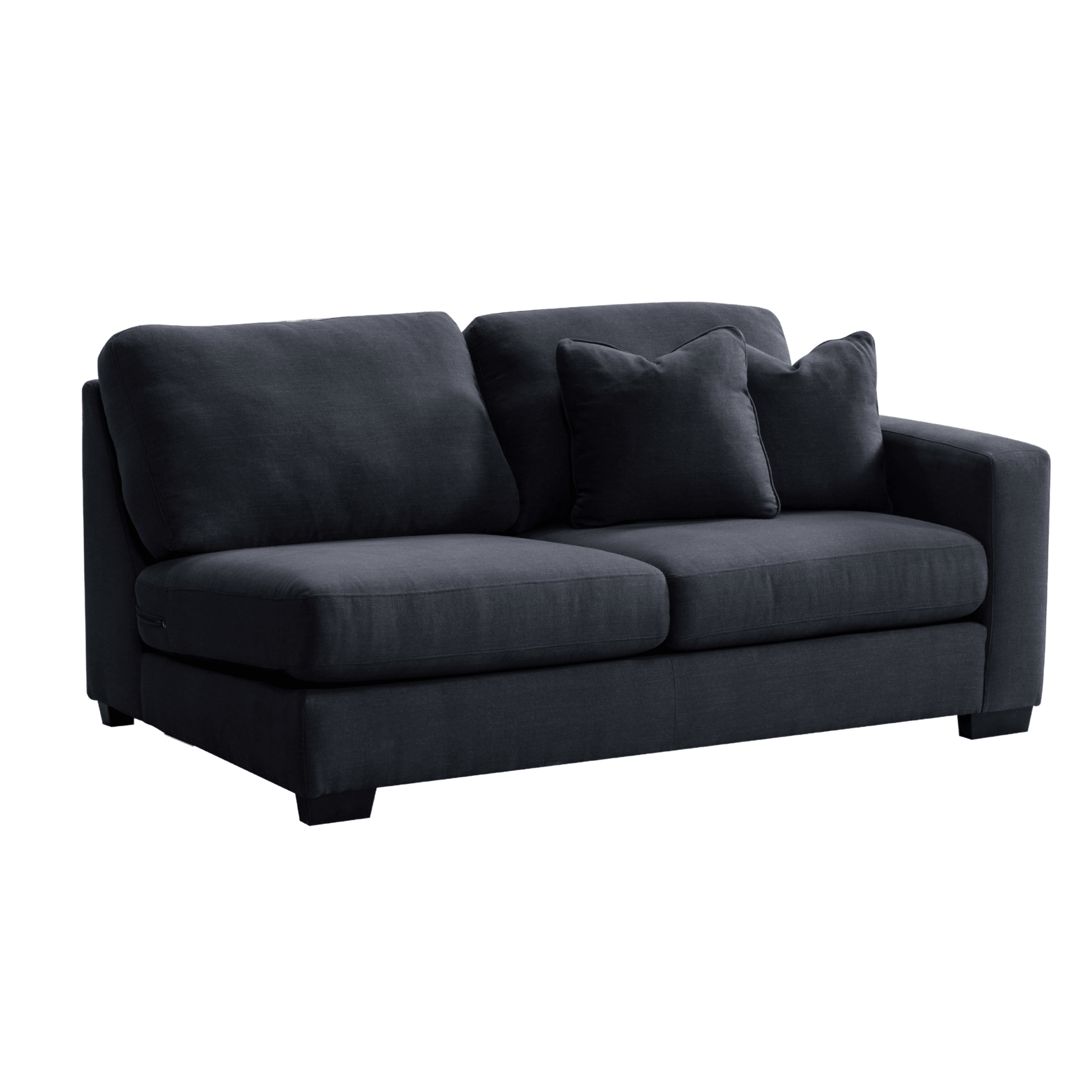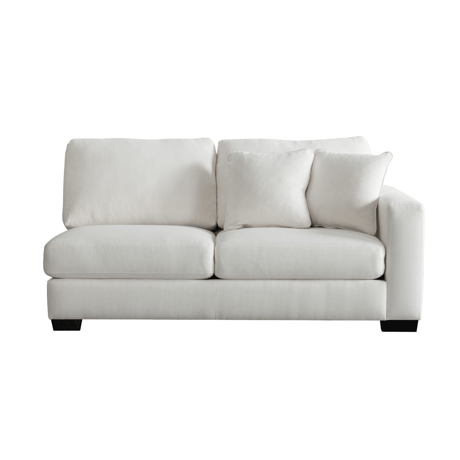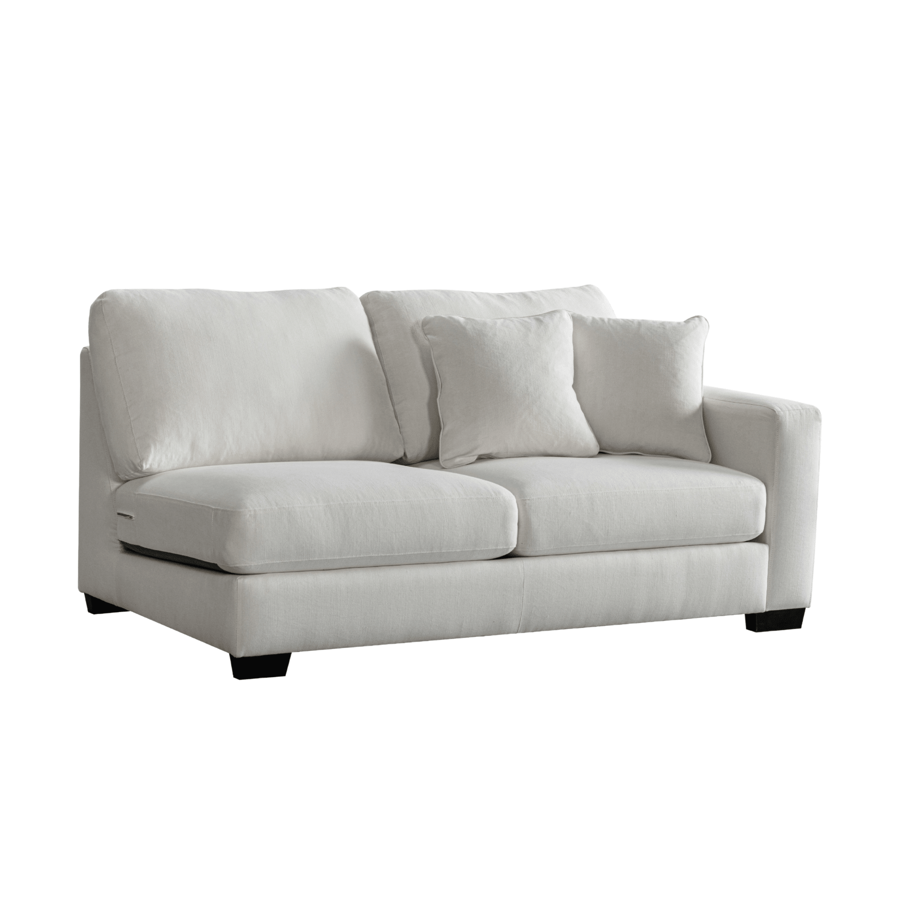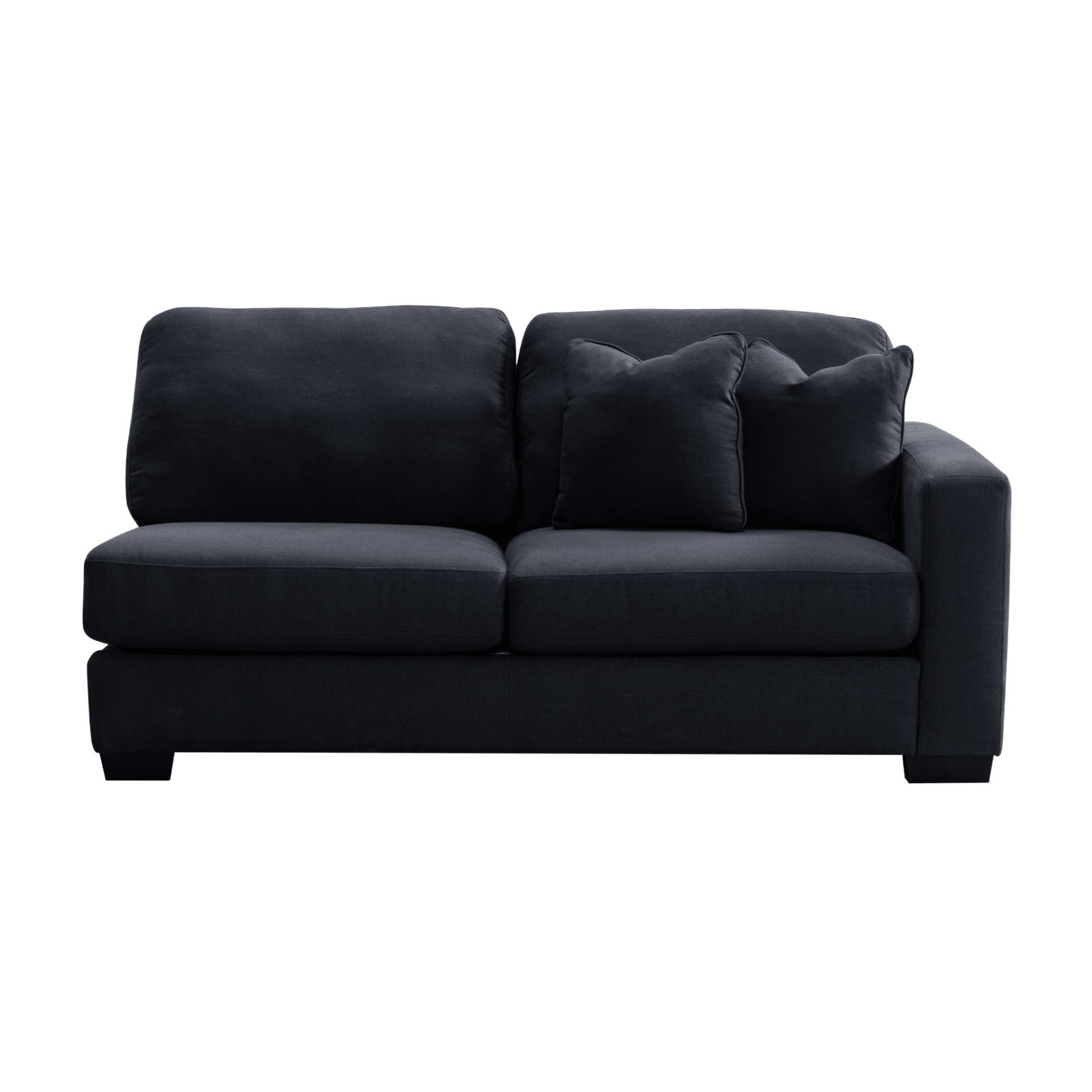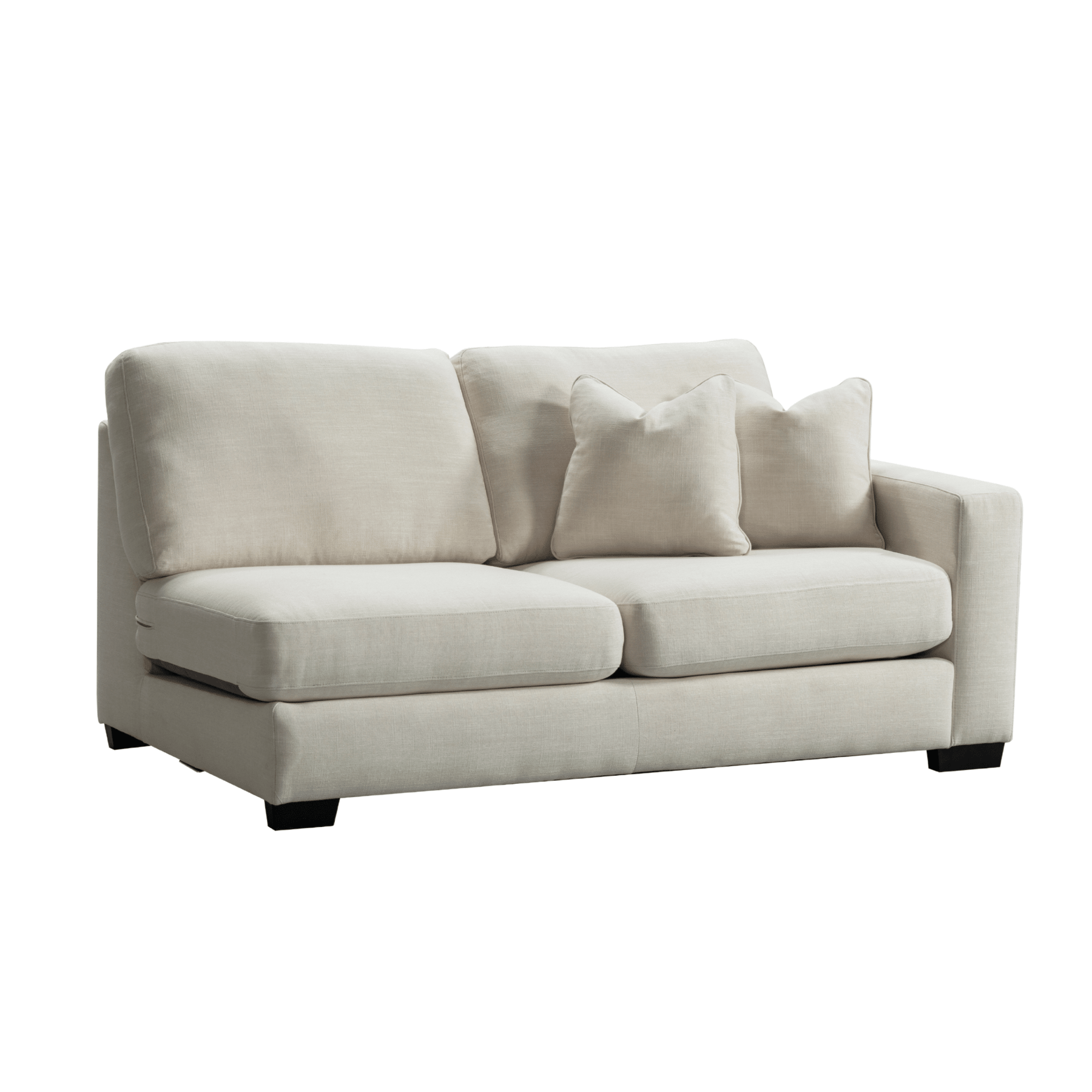 Get comfort in our trendy and spacious sectional, with its clean lines, sleek material and modern style. With plush grey fabric and charming cushions, this cozy and grand Sectional by Roots Furniture is definitely what you need in your home.