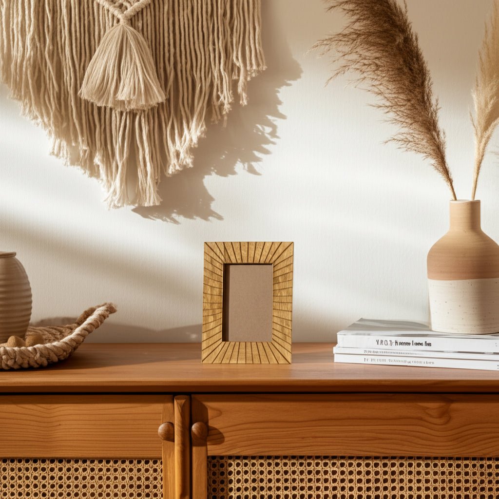 4x6 Wood Starburst Photo Frame, Natural - Al Rugaib Furniture