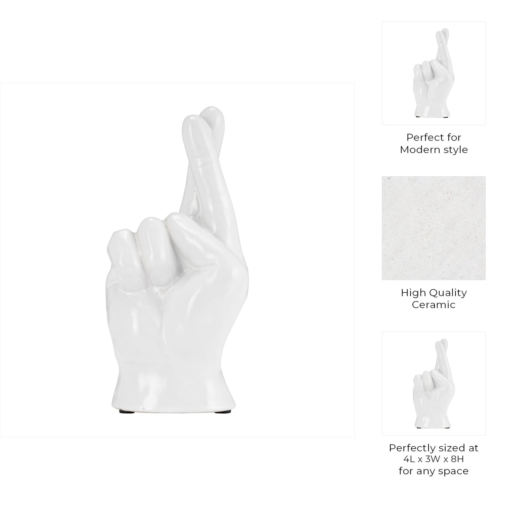6"H, CROSSING FINGERS, WHITE - Al Rugaib Furniture