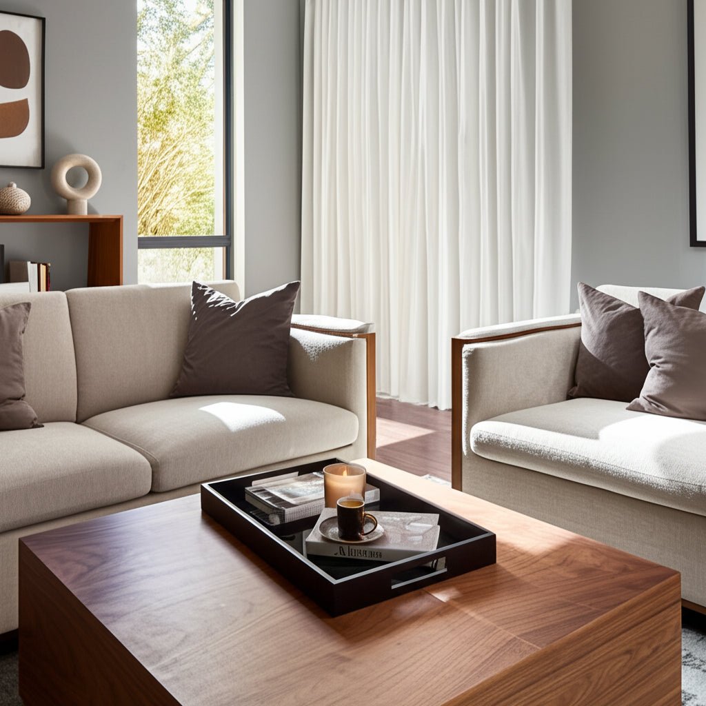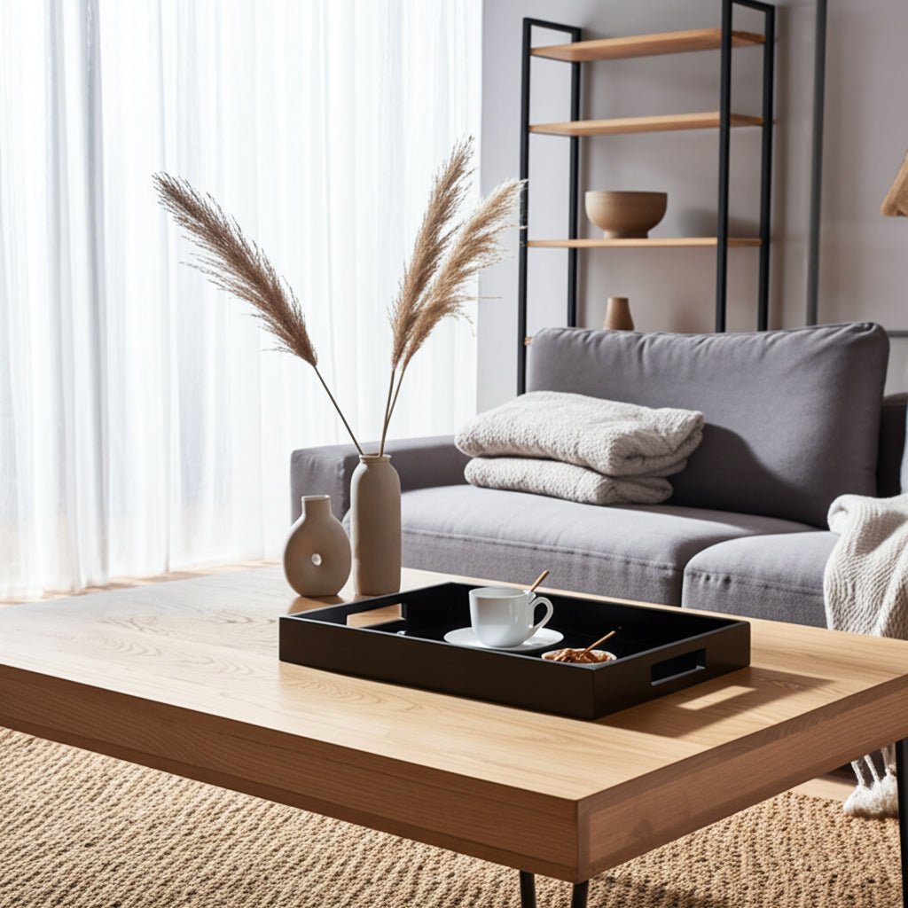 BLACK WOOD/GLASS TRAY - Al Rugaib Furniture