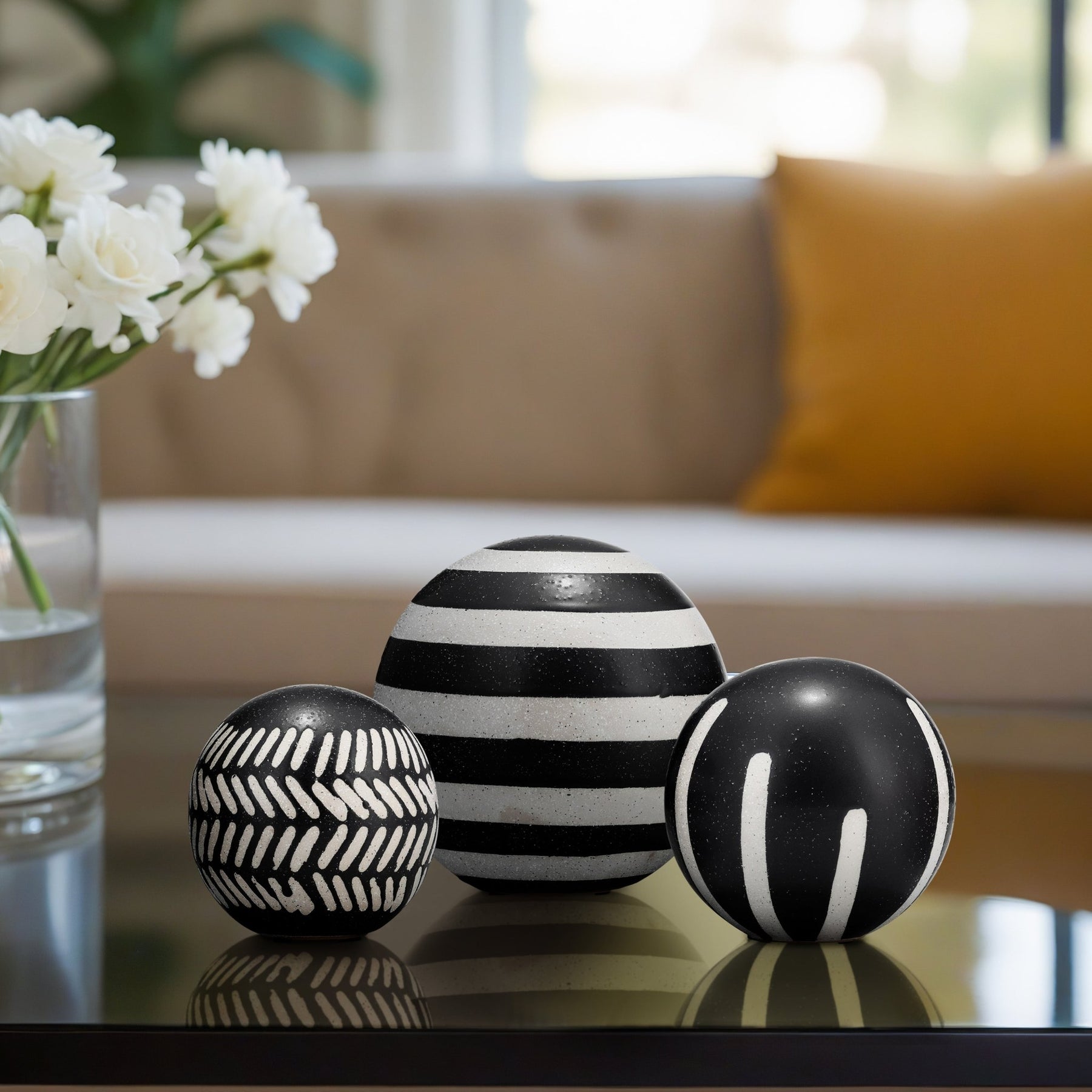 CER, S/3 4/5/6", TRIBAL ORBS, BLK/IVORY - Al Rugaib Furniture