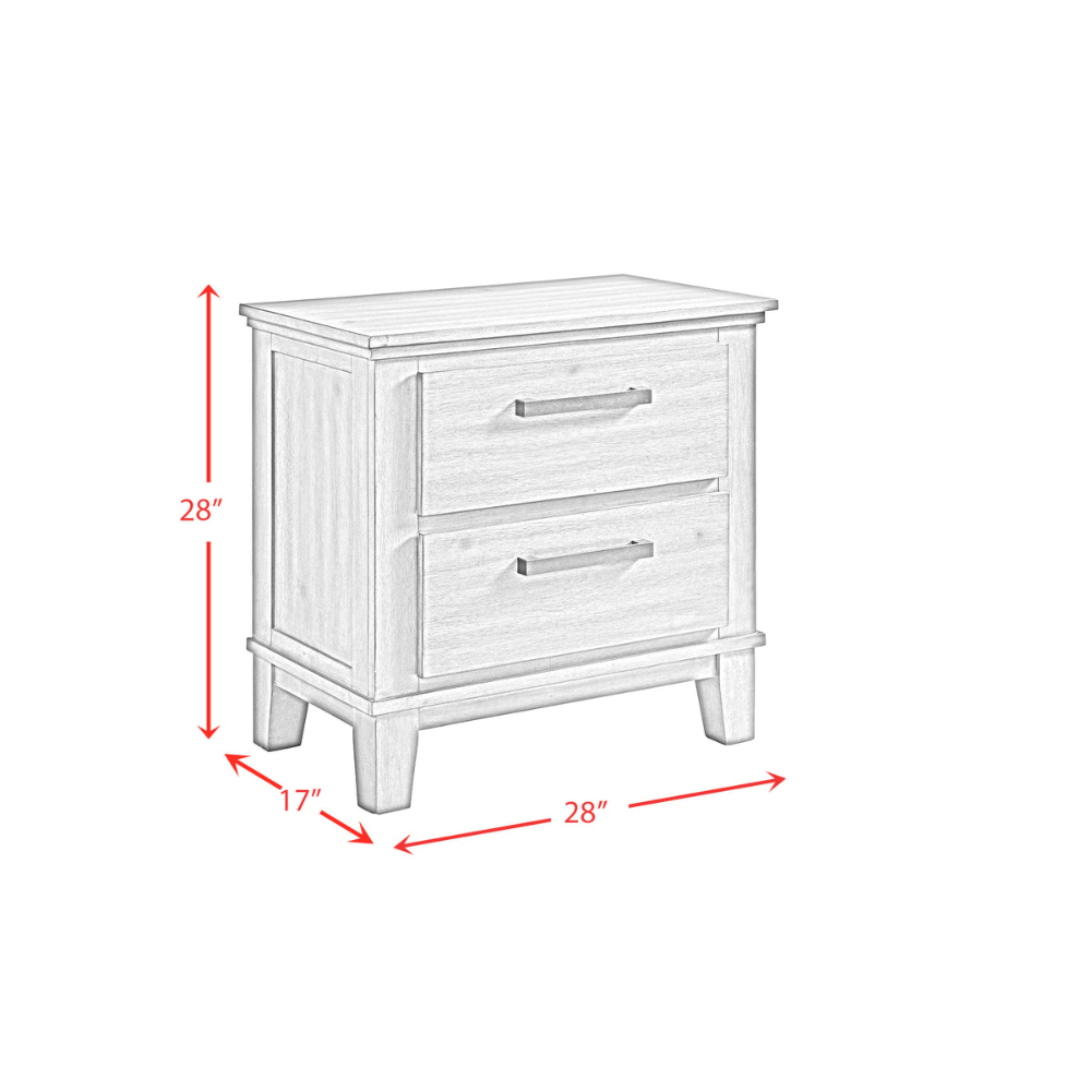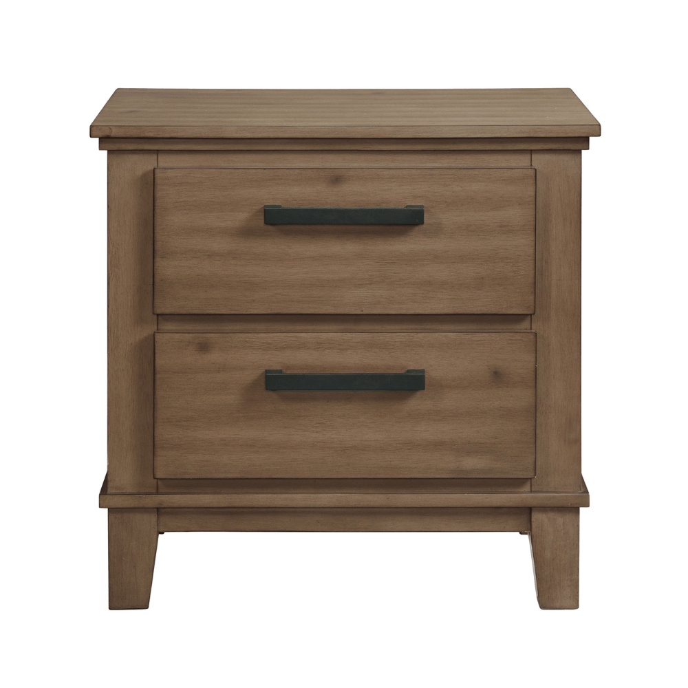 Jolene 2-Drawer Nightstand delivers storage and style. Constructed of solid and manufactured woods with natural wood grain detailing throughout. Accented by the black metal drawer pulls, the drawers have ball bearing glides for easy access to your clothing. Perfect addition to modern or contemporary styled homes.