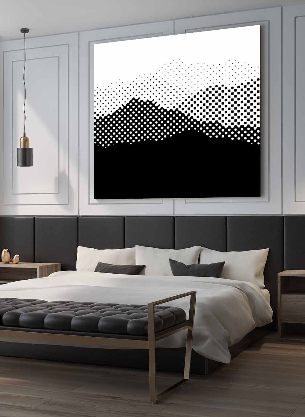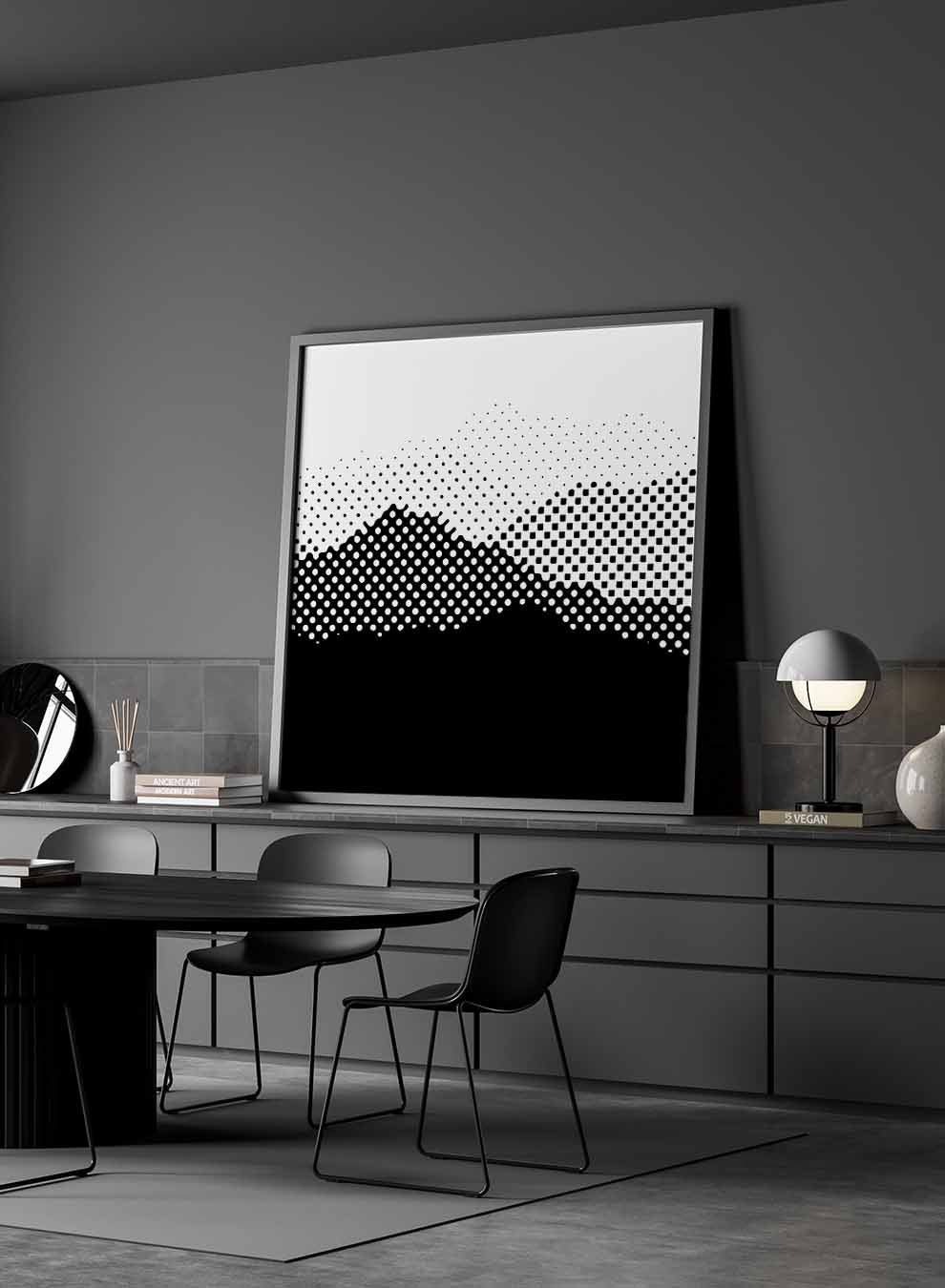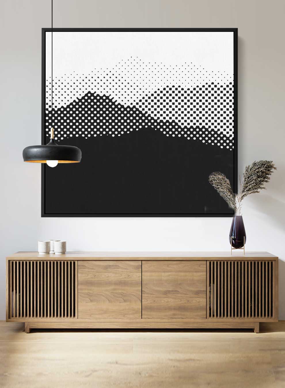 Square Canvas Wall Art Stretched Over Wooden Frame with Black Floating Frame and High Mountains Painting