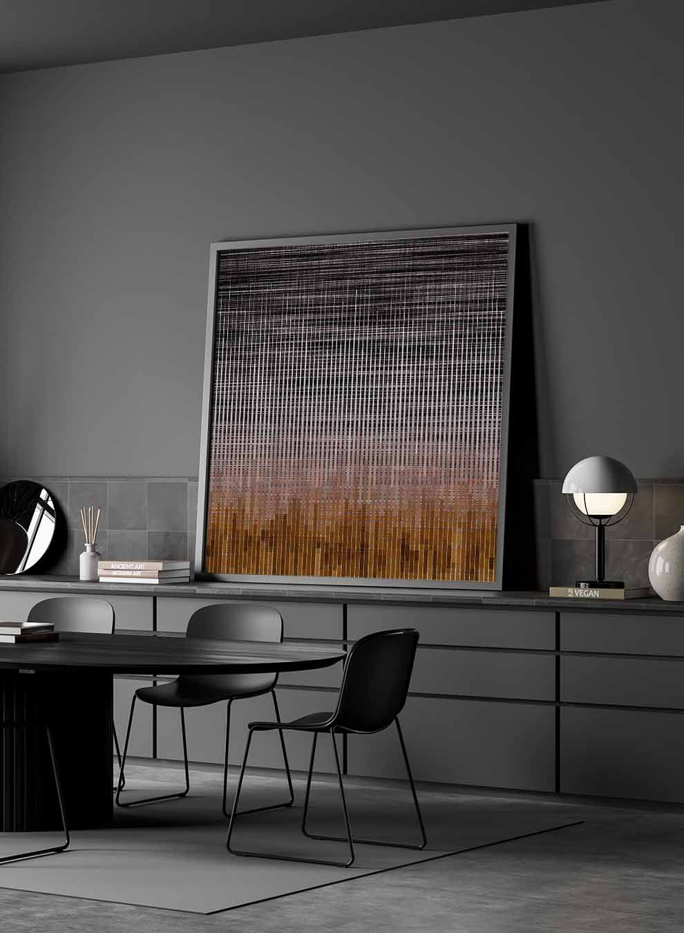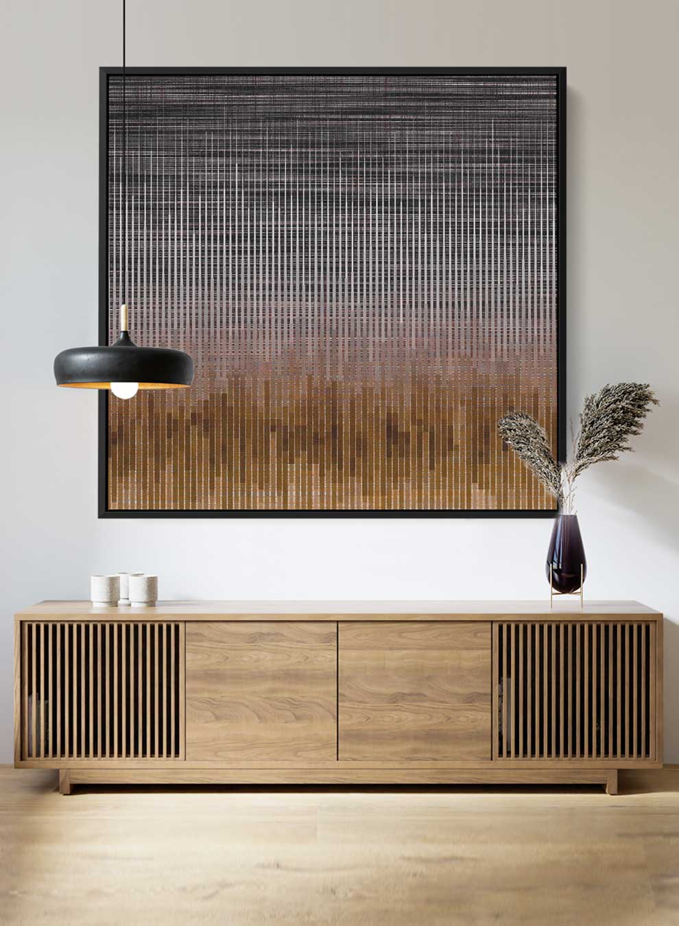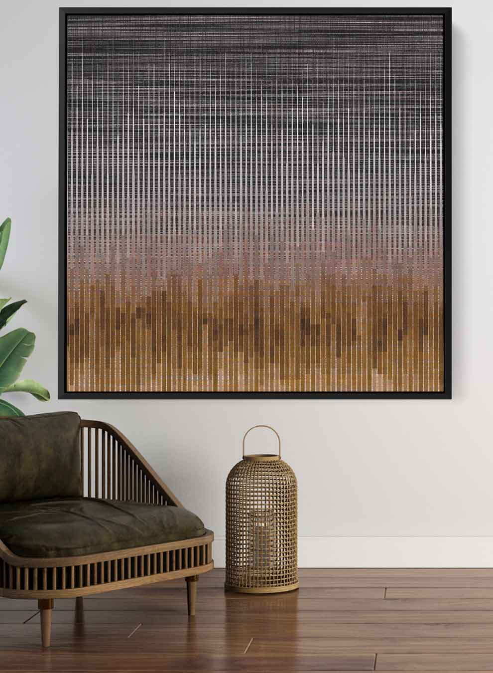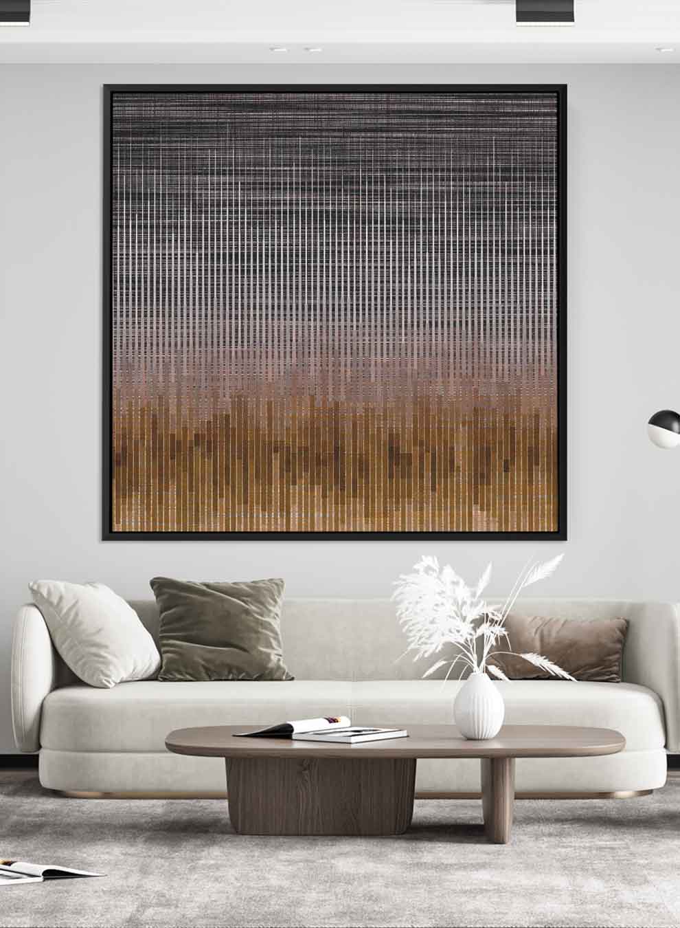 Square Canvas Wall Art Stretched Over Wooden Frame with Black Floating Frame and Maze Abstract Painting