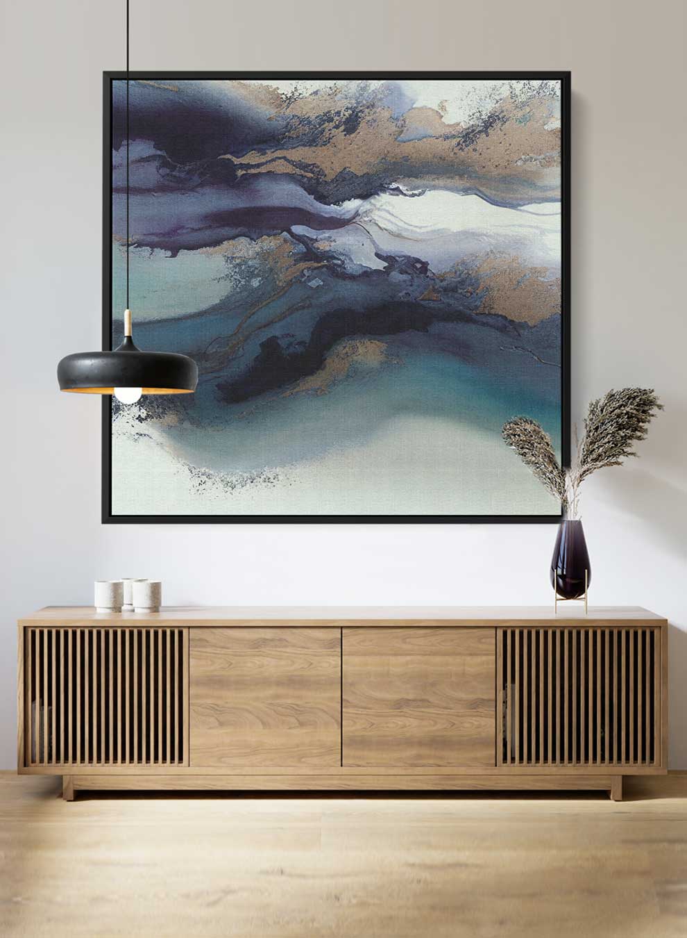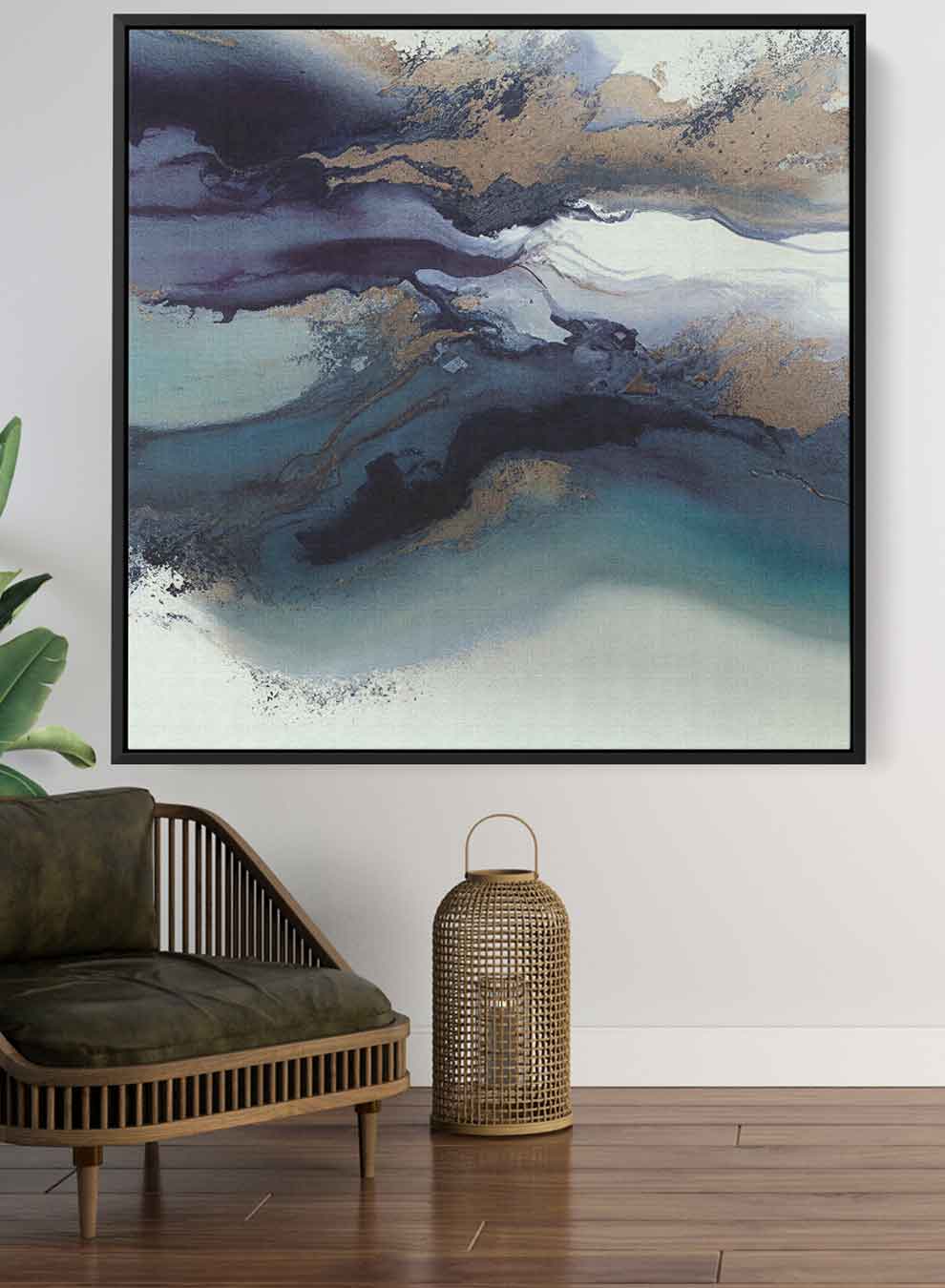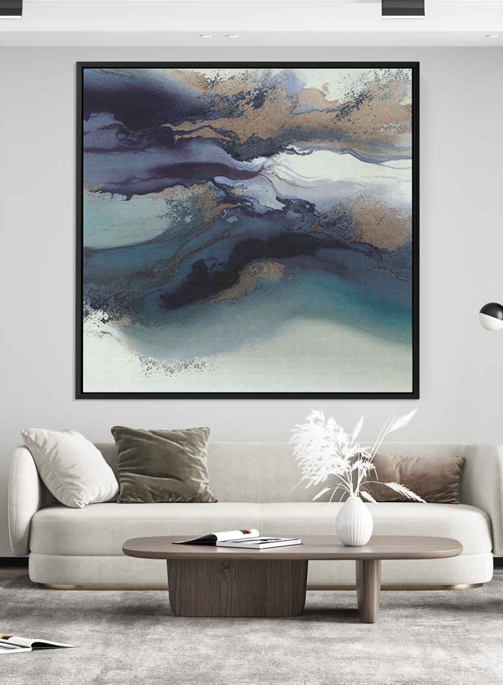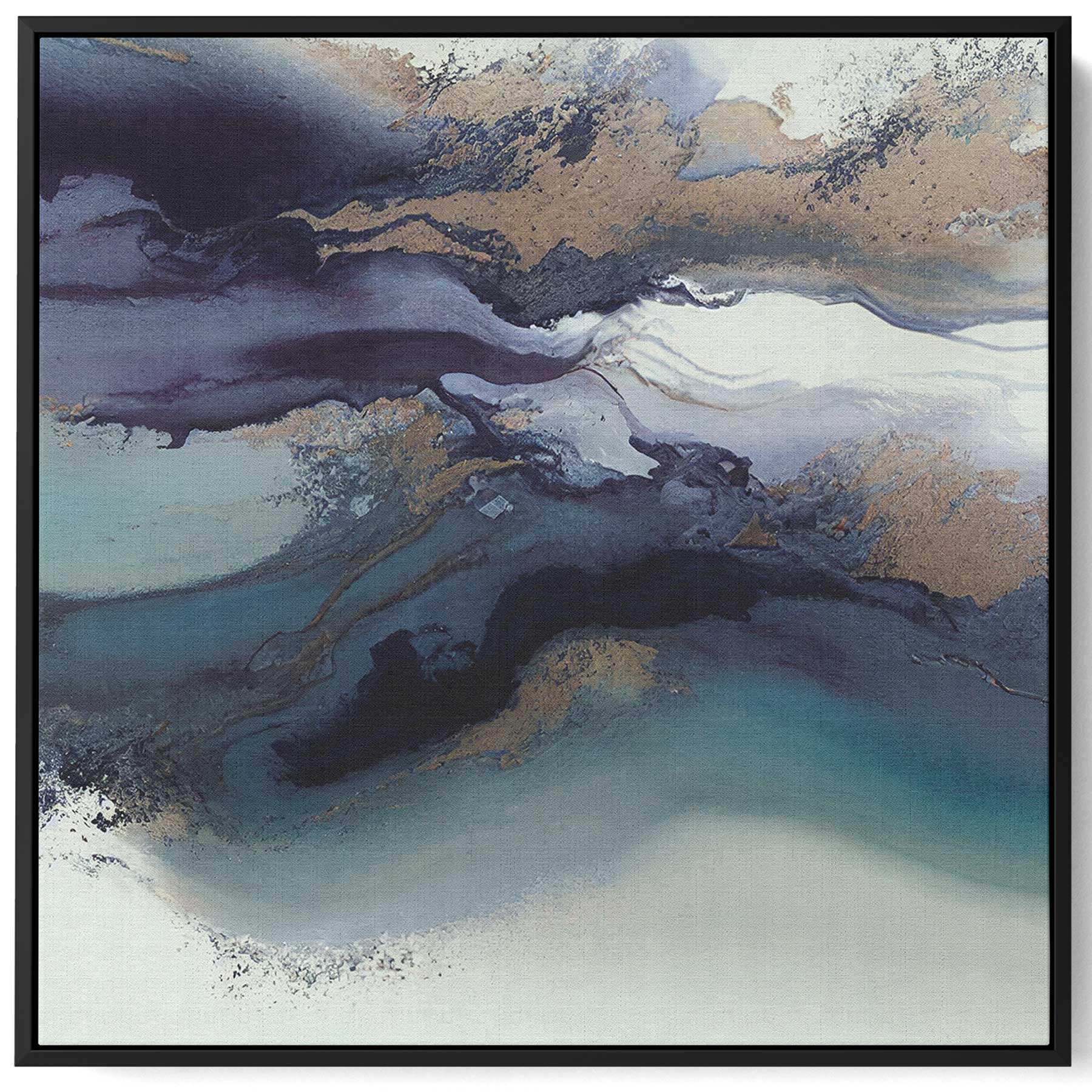 Square Canvas Wall Art Stretched Over Wooden Frame with Black Floating Frame and Mix Colors Abstract Painting
