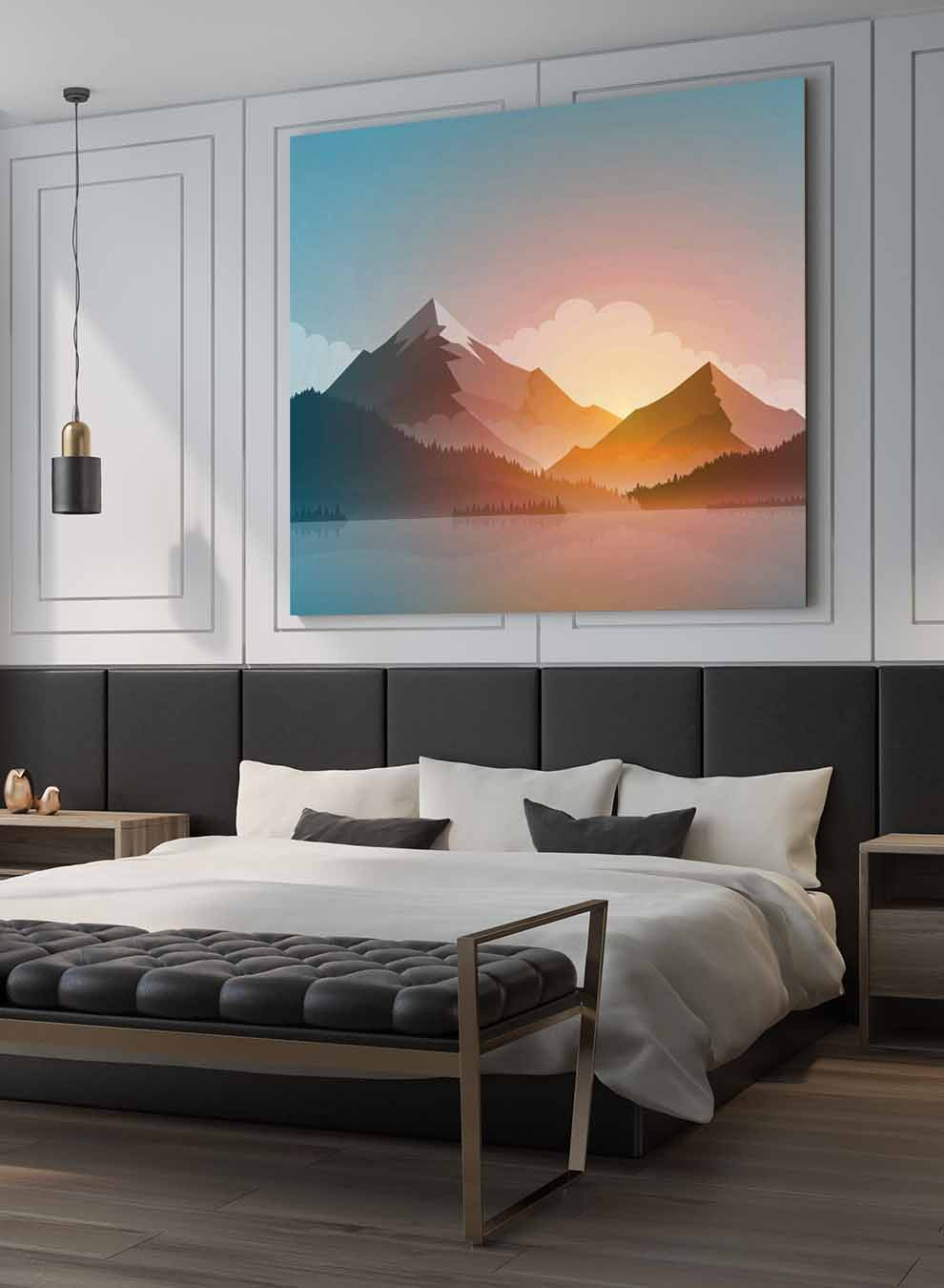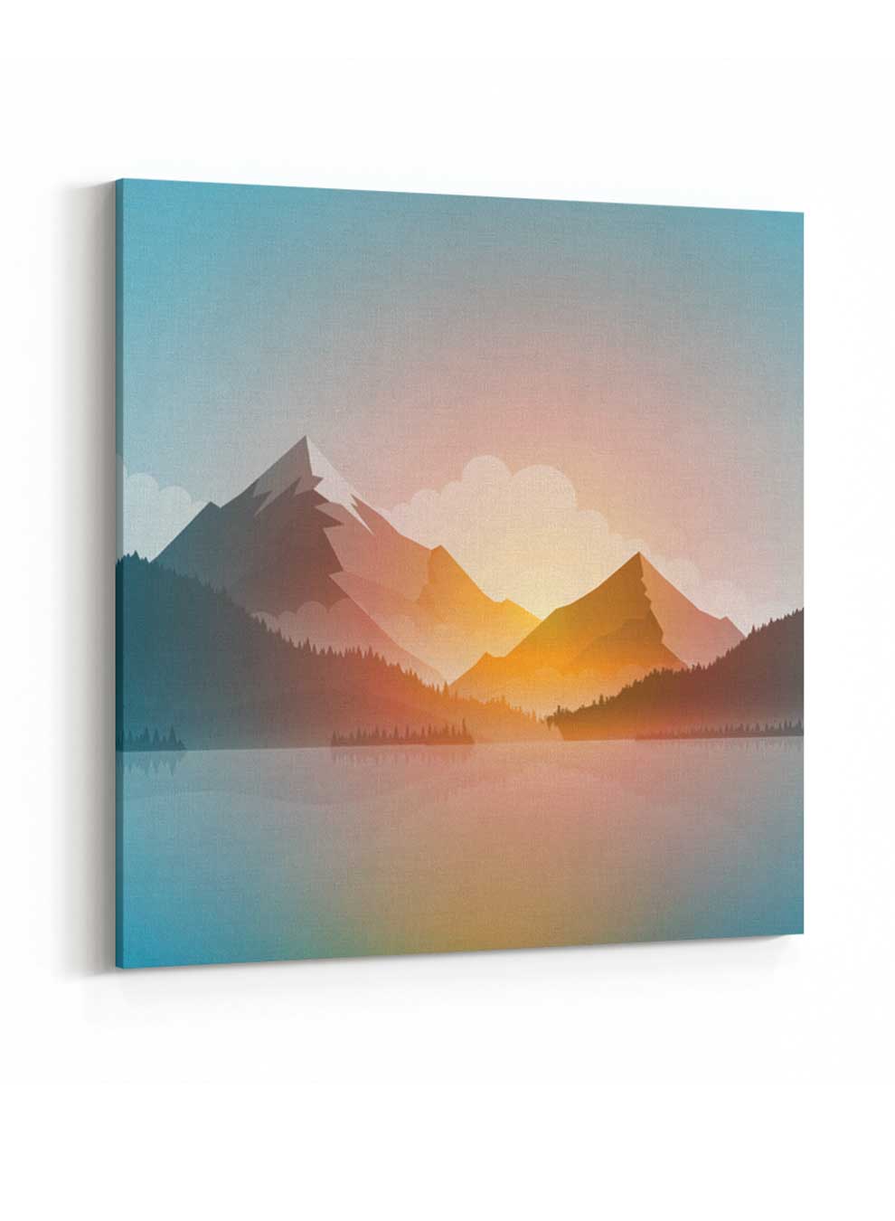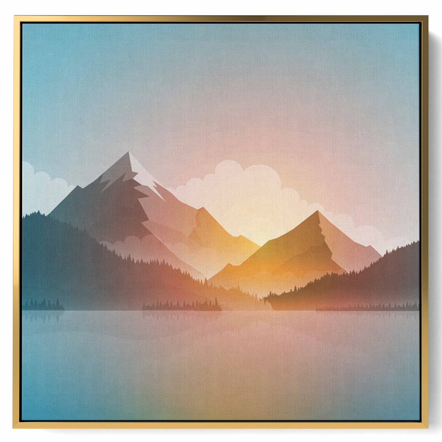 Square Canvas Wall Art Stretched Over Wooden Frame with Black Floating Frame and Repeated Pattern Painting
